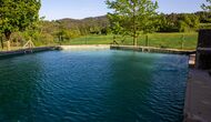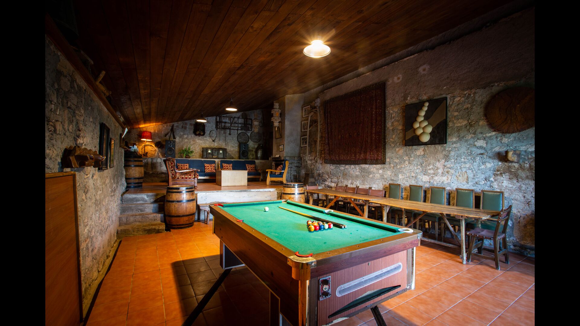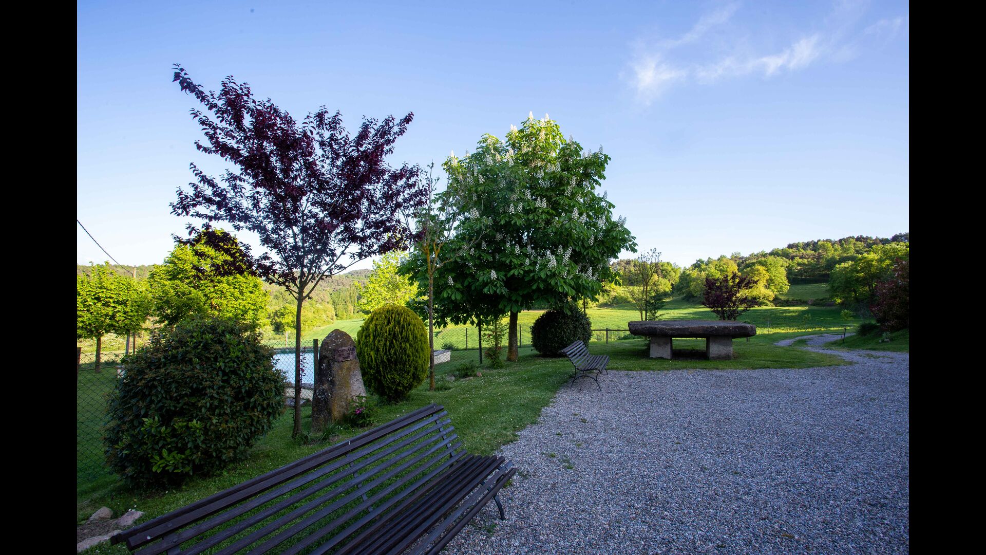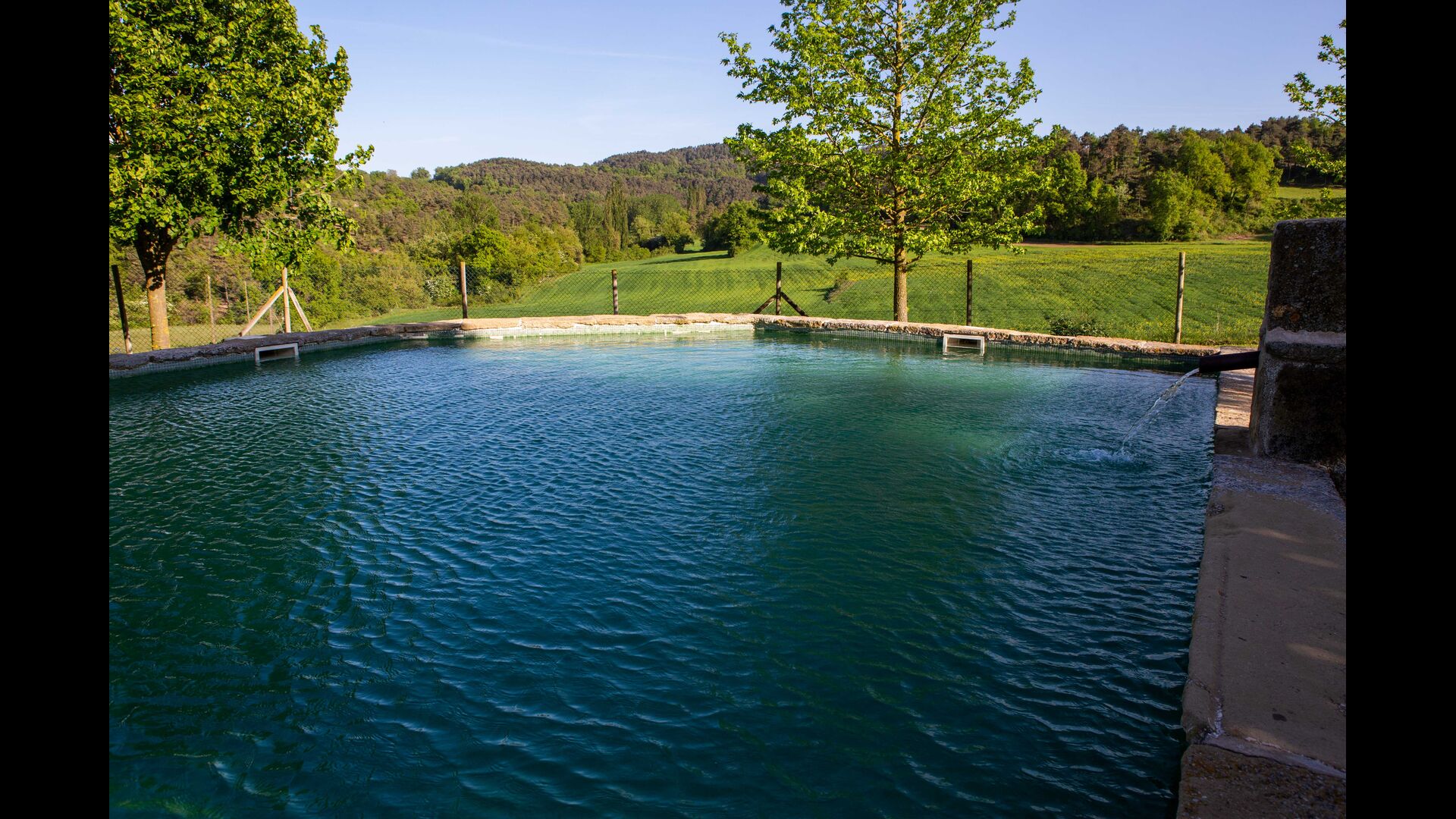 En el exterior, hay un patio con barbacoa, ideal para comer al aire libre. También hay una terraza en el nivel con el piso superior, si prefiere cenar con una vista. La piscina es muy especial. En lugar de construir una piscina tradicional, Joan y Alicia decidieron hacer una piscina, que en mayor medida coincide con la casa y la historia. Por ello, la piscina se ha realizado con rocas y con una pequeña fuente que circula por el agua. Es muy grande (9 x 8 metros) y funciona como una piscina habitual.