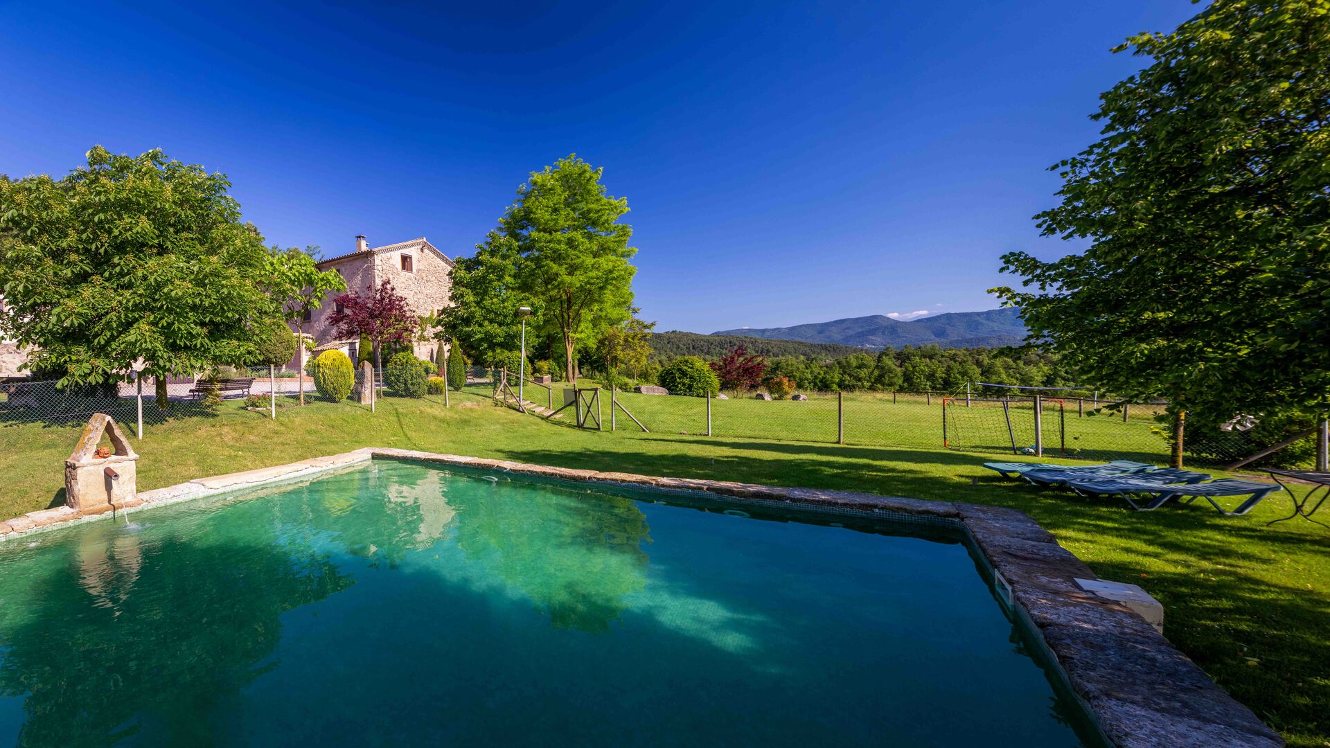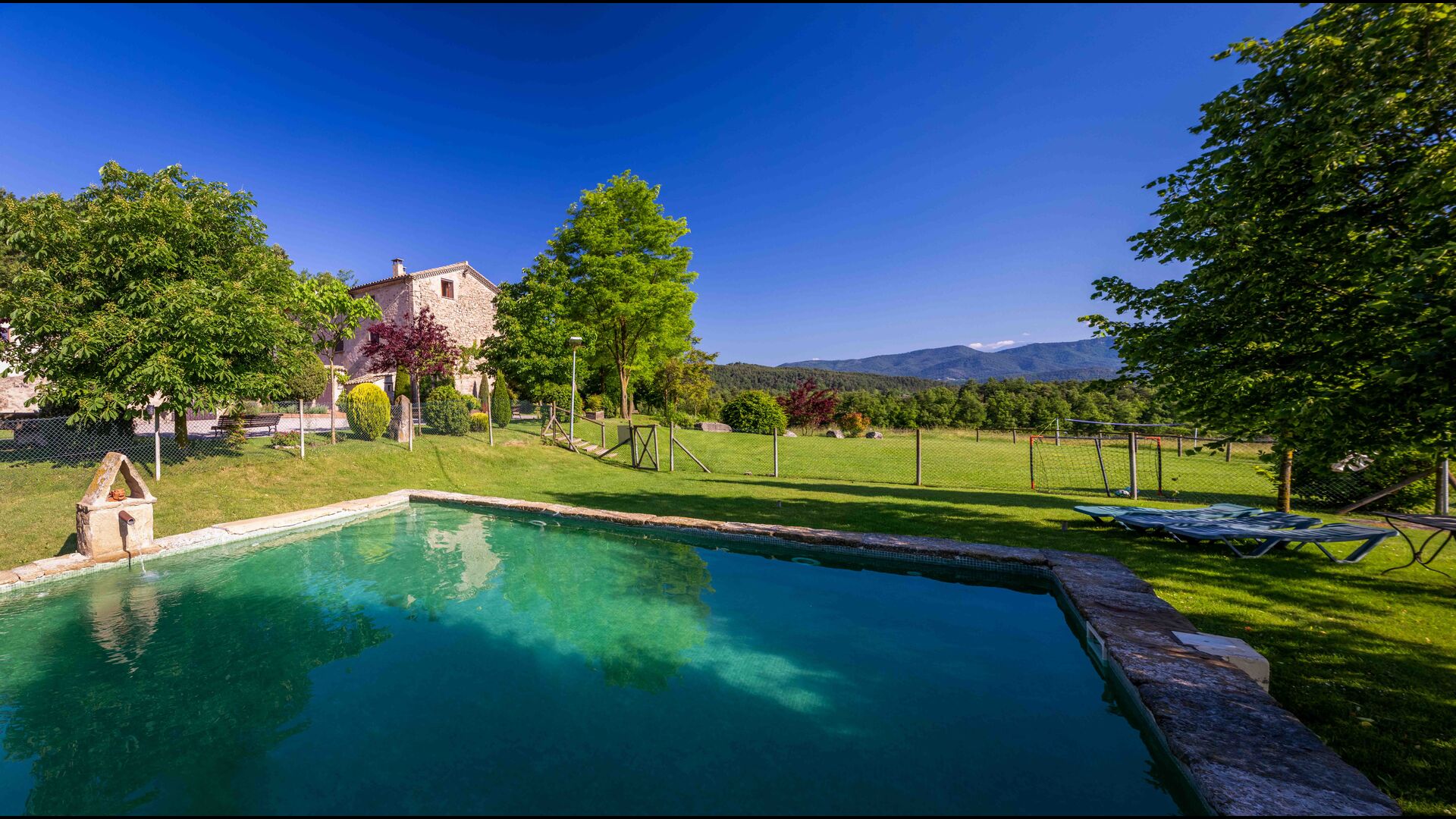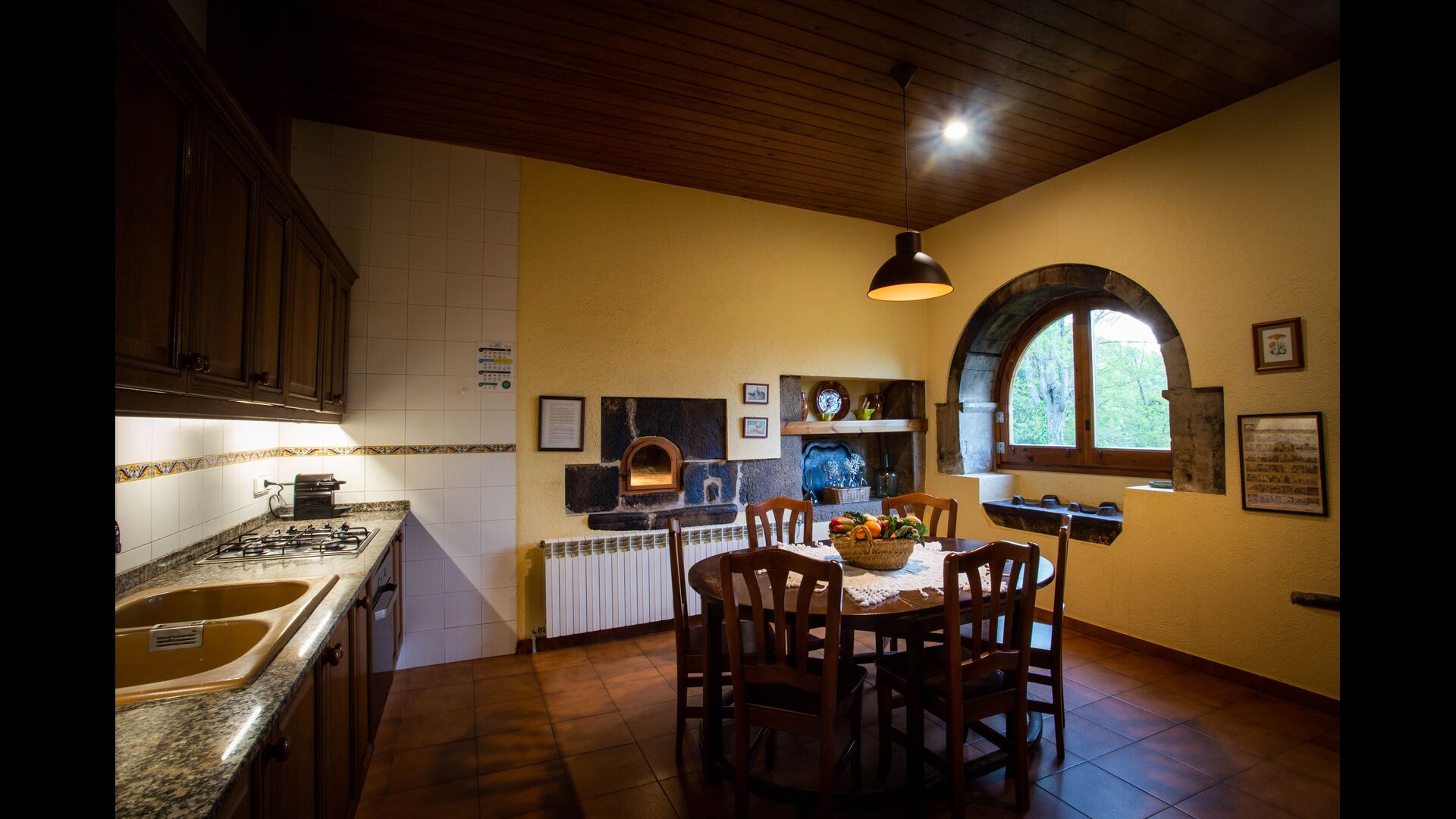 Casa Vinas grande está situada en un entorno tranquilo y verde en un valle en la región de Osona, entre los Pirineos y Barcelona. La casa muy auténtica de ocho dormitorios le proporciona una base privada. No hay vecinos cercanos y alrededor de la casa, hay varios lugares agradables al sol o en la sombra como prefiera para relajarse. La casa tiene dos pisos. En la planta baja, encontrará una cocina totalmente equipada con lavavajillas y microondas, una agradable sala de estar con TV y chimenea y una sala de actividades con ping-pong. Hay cuatro habitaciones que comparten dos baños. Hay dos habitaciones dobles y dos triples y dos camas supletorias posibles. En la planta superior, hay otra cocina totalmente equipada, otra sala de estar y cuatro habitaciones dobles que comparten 2 baños y con dos camas supletorias.