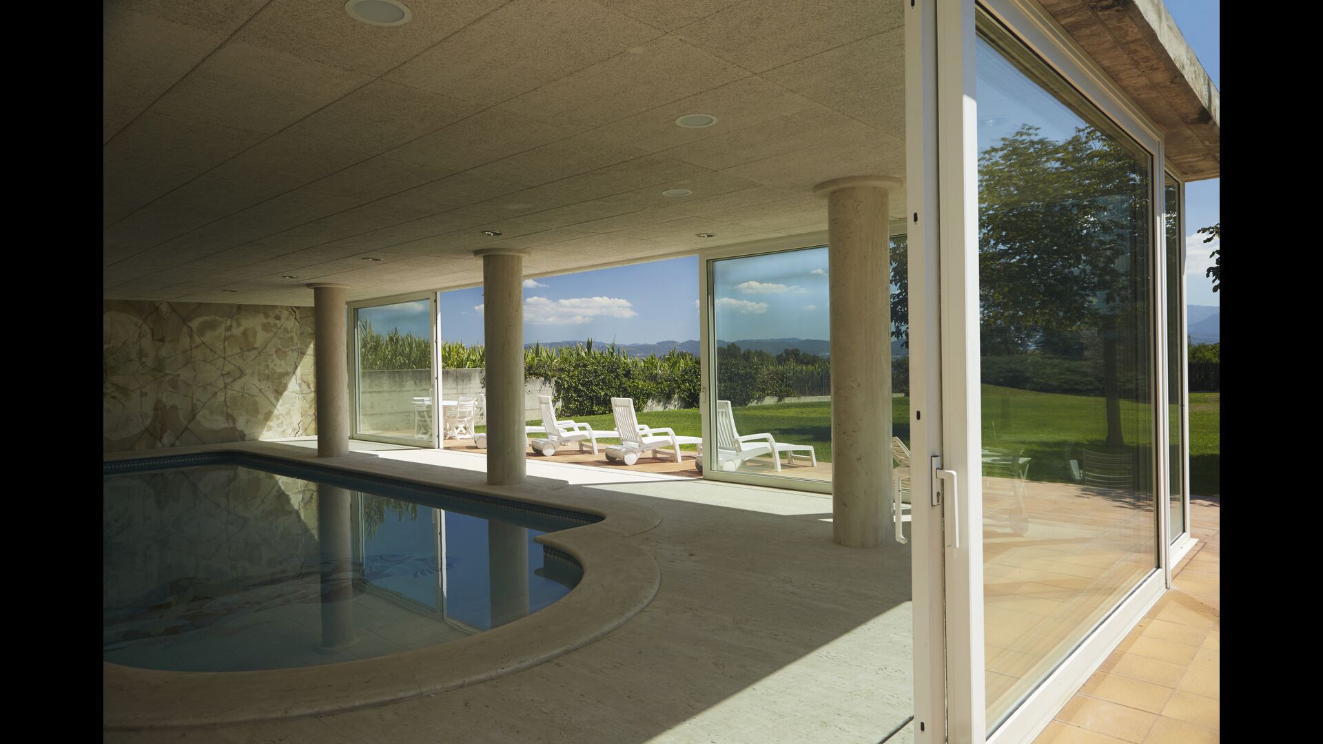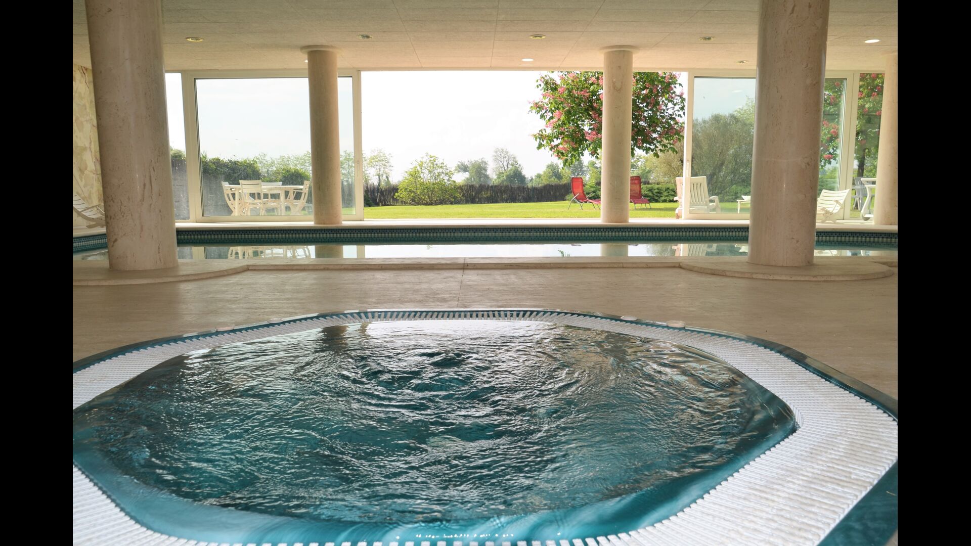 En los meses calientes de Júnio a Septiembre, la piscina no está calentada, porque así podeís disfrutar tener las puertas abiertas y utilizarla como piscina exterior. El Spa todavia puede ser utilizada y calentada.