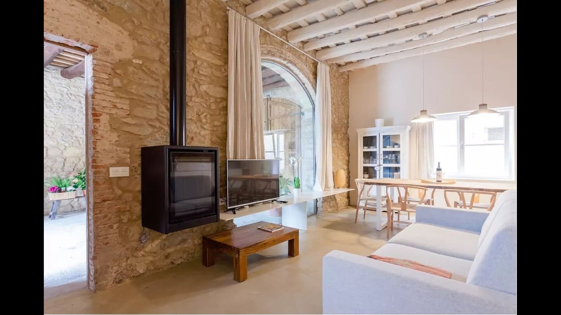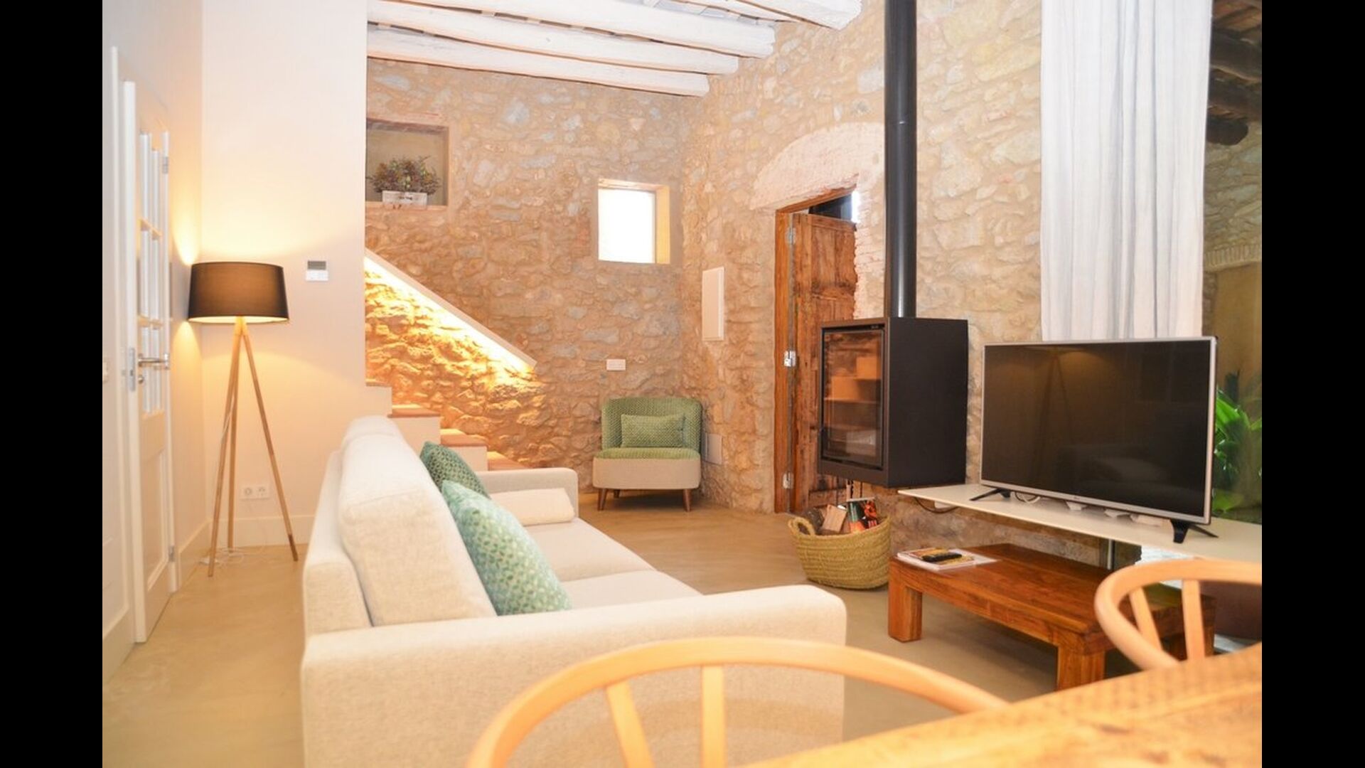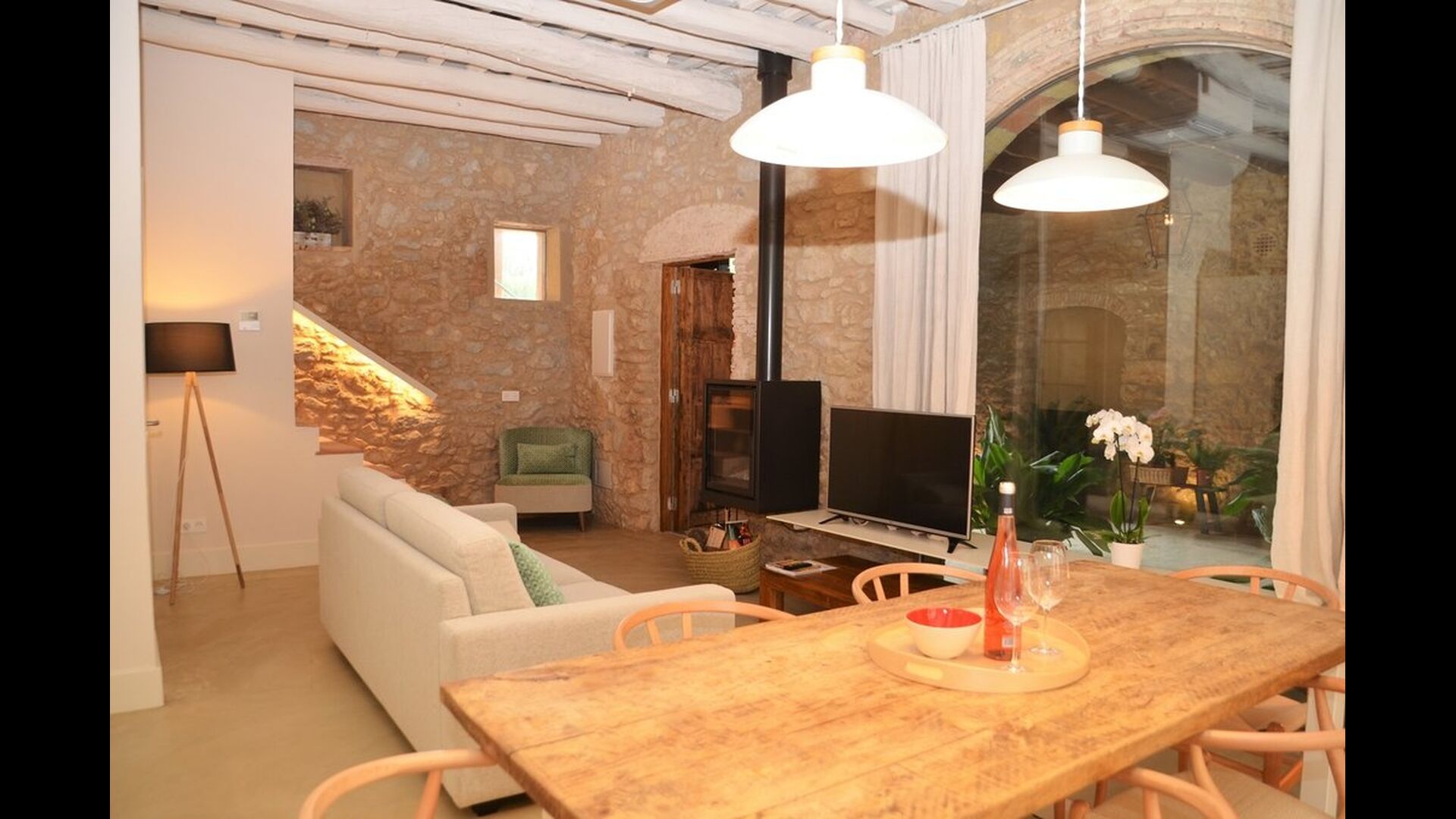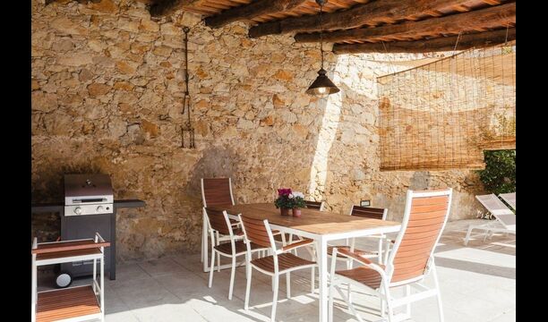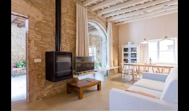 La casa de vacaciones ha combinado lo auténtico con el estilo moderno, y el resultado es absolutamente excelente. La casa, que es originaria de la década de 1780, combina las tradicionales paredes de piedra catalanas y las mesas antiguas con nuevos muebles y equipos de diseño y todo tipo de otras instalaciones modernas, para que obtenga una experiencia real y auténtica con todas las comodidades de hoy.
