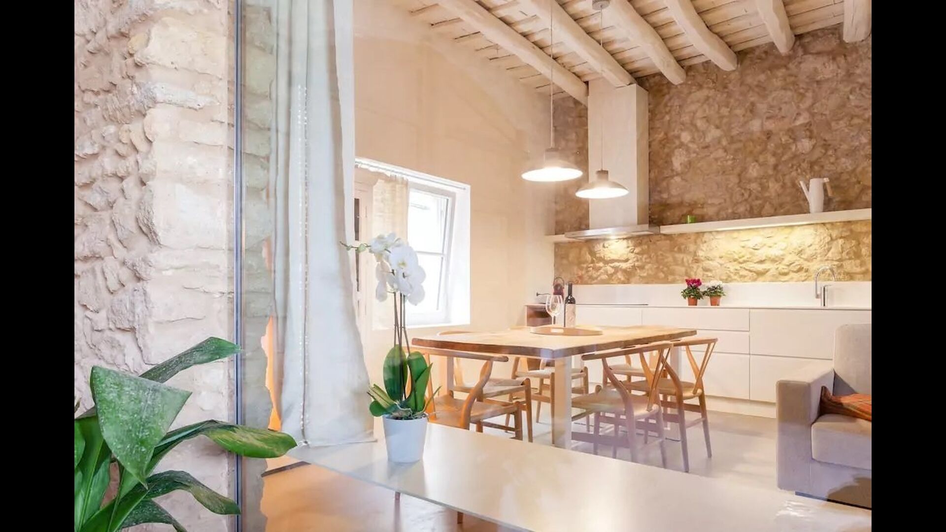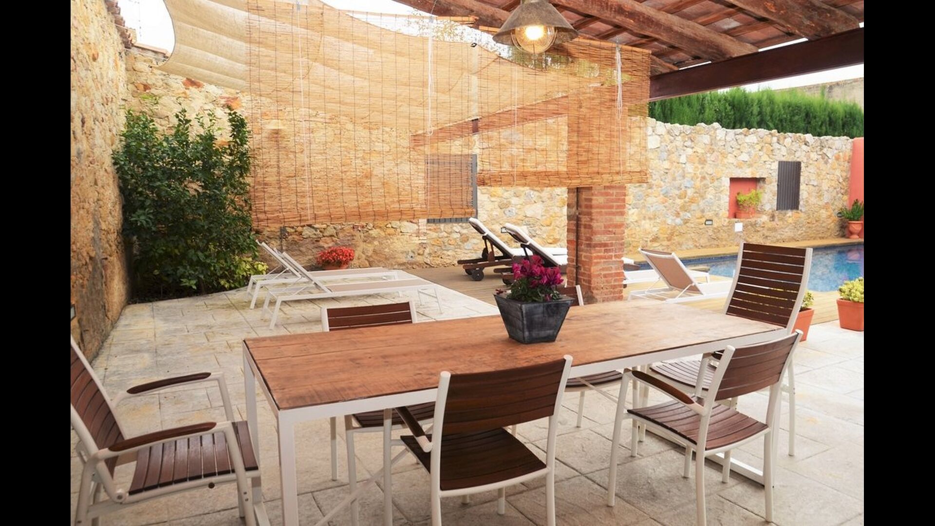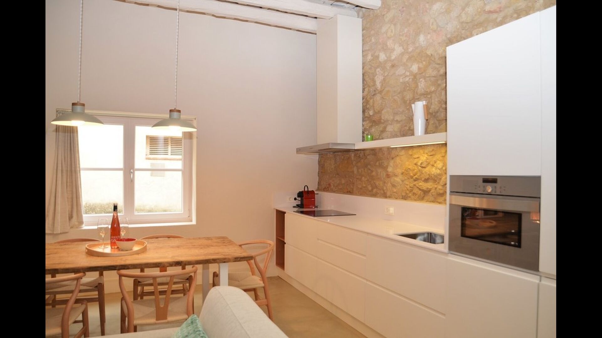 La casa de vacaciones ha combinado lo auténtico con el estilo moderno, y el resultado es absolutamente excelente. La casa, que es originaria de la década de 1780, combina las tradicionales paredes de piedra catalanas y las mesas antiguas con nuevos muebles y equipos de diseño y todo tipo de otras instalaciones modernas, para que obtenga una experiencia real y auténtica con todas las comodidades de hoy.
