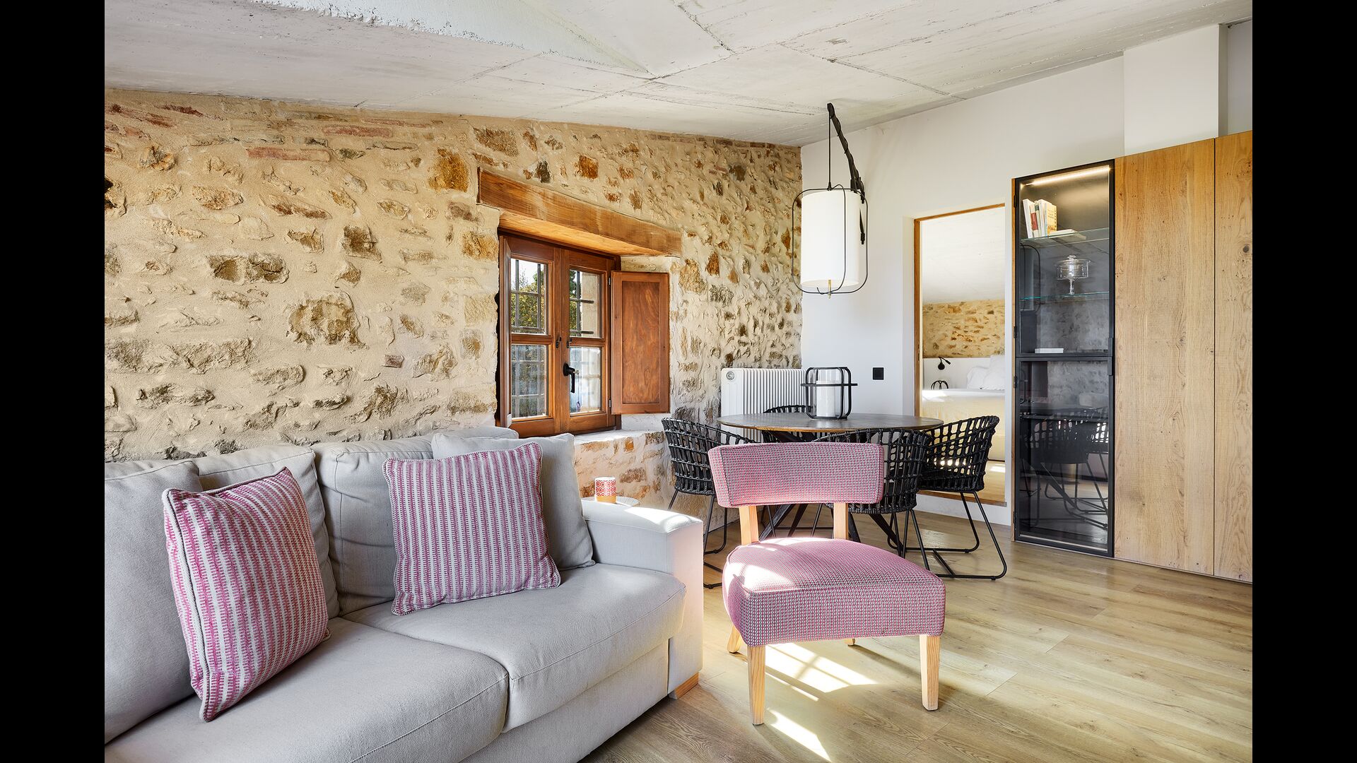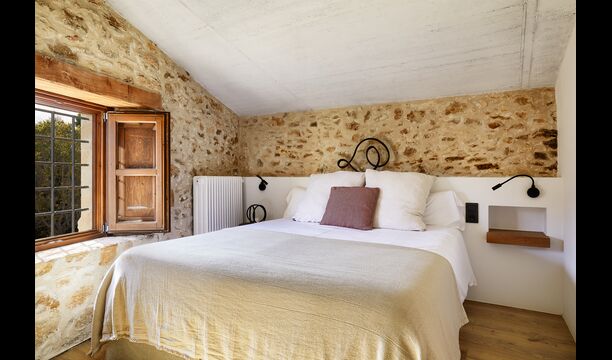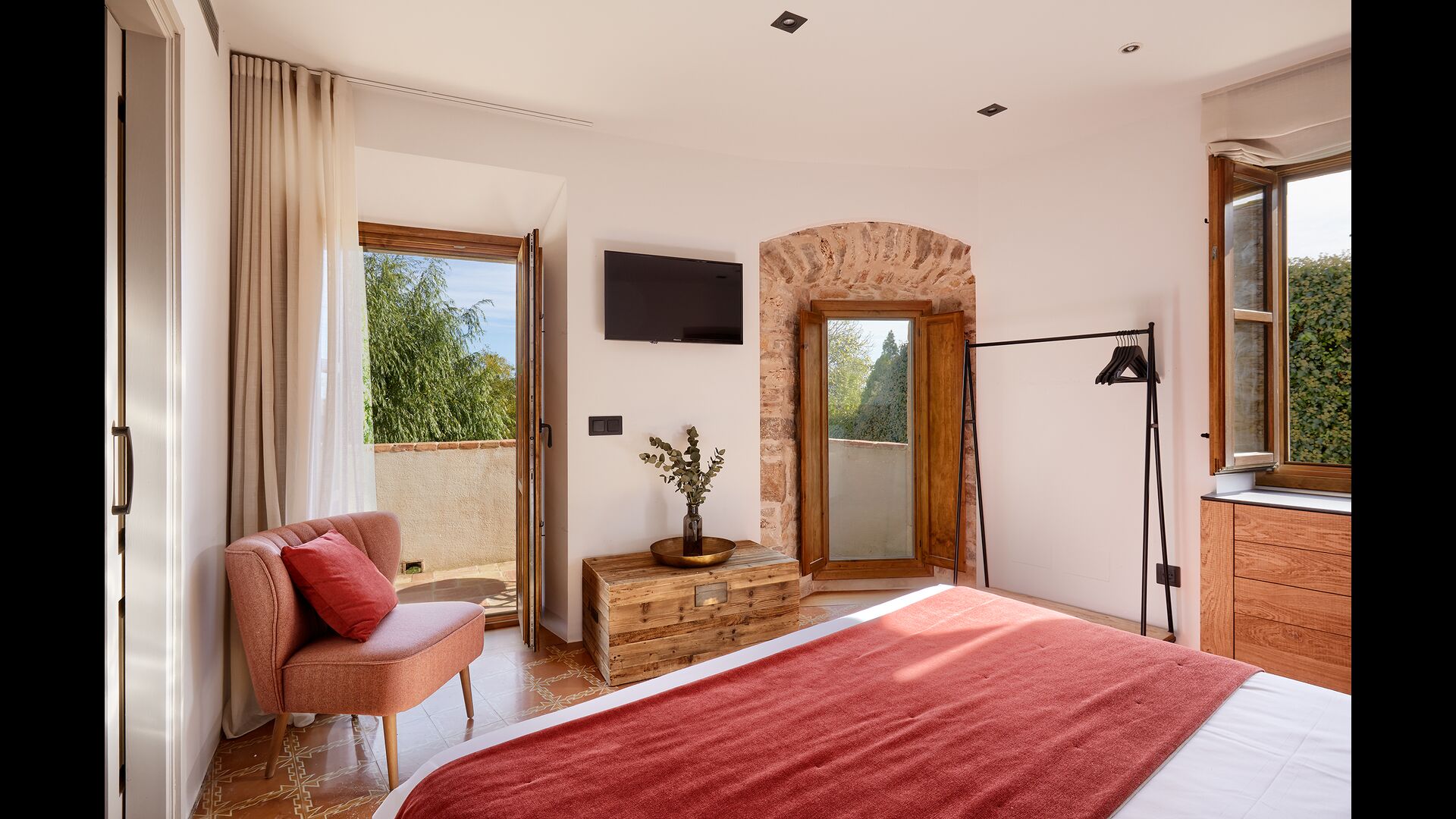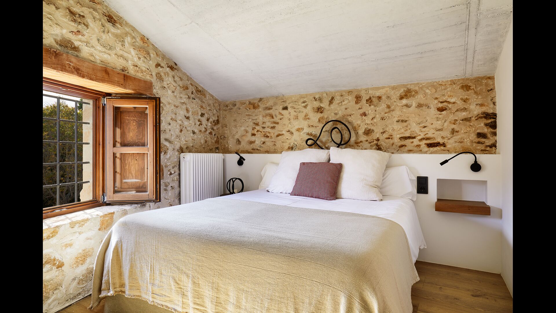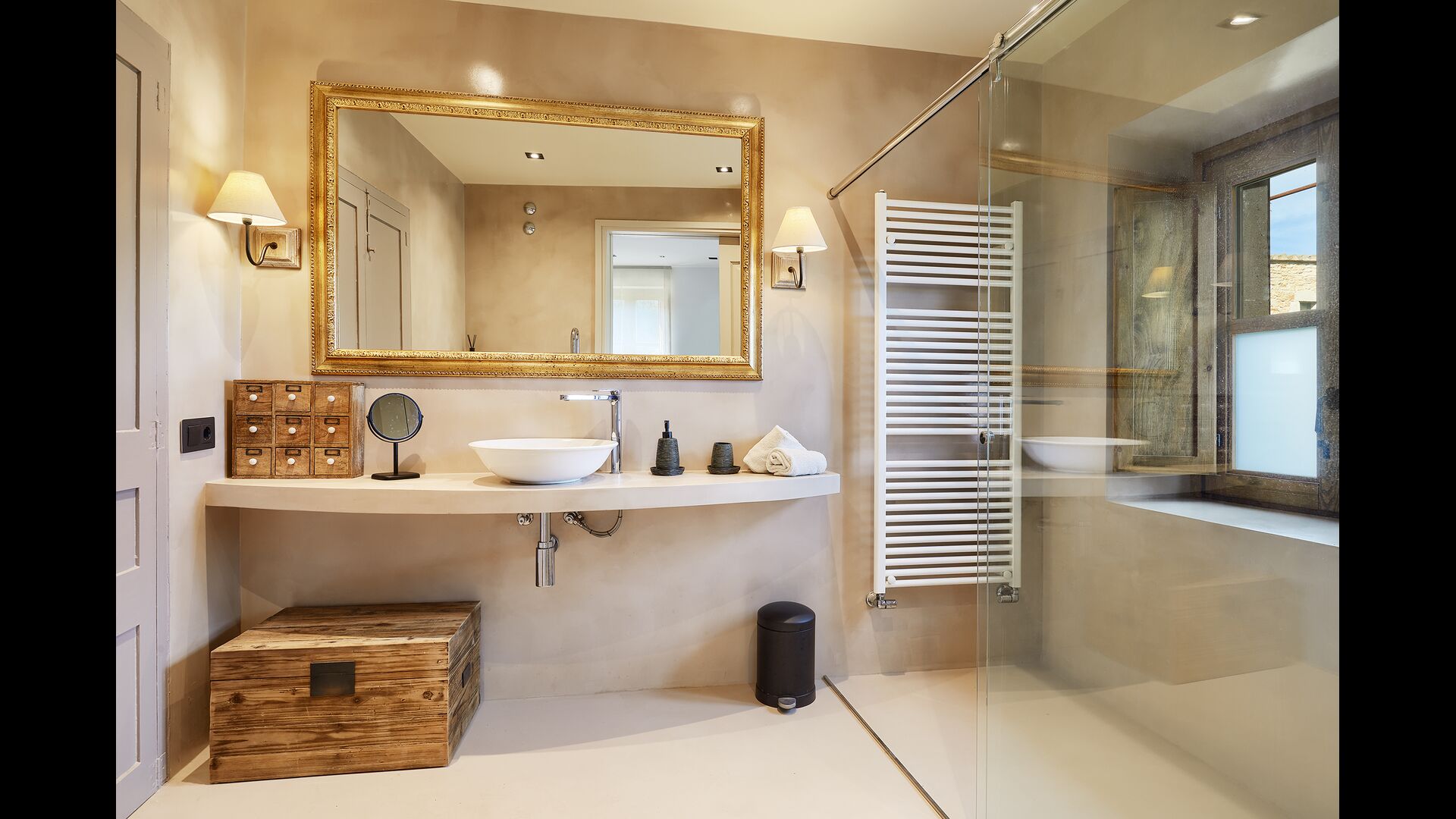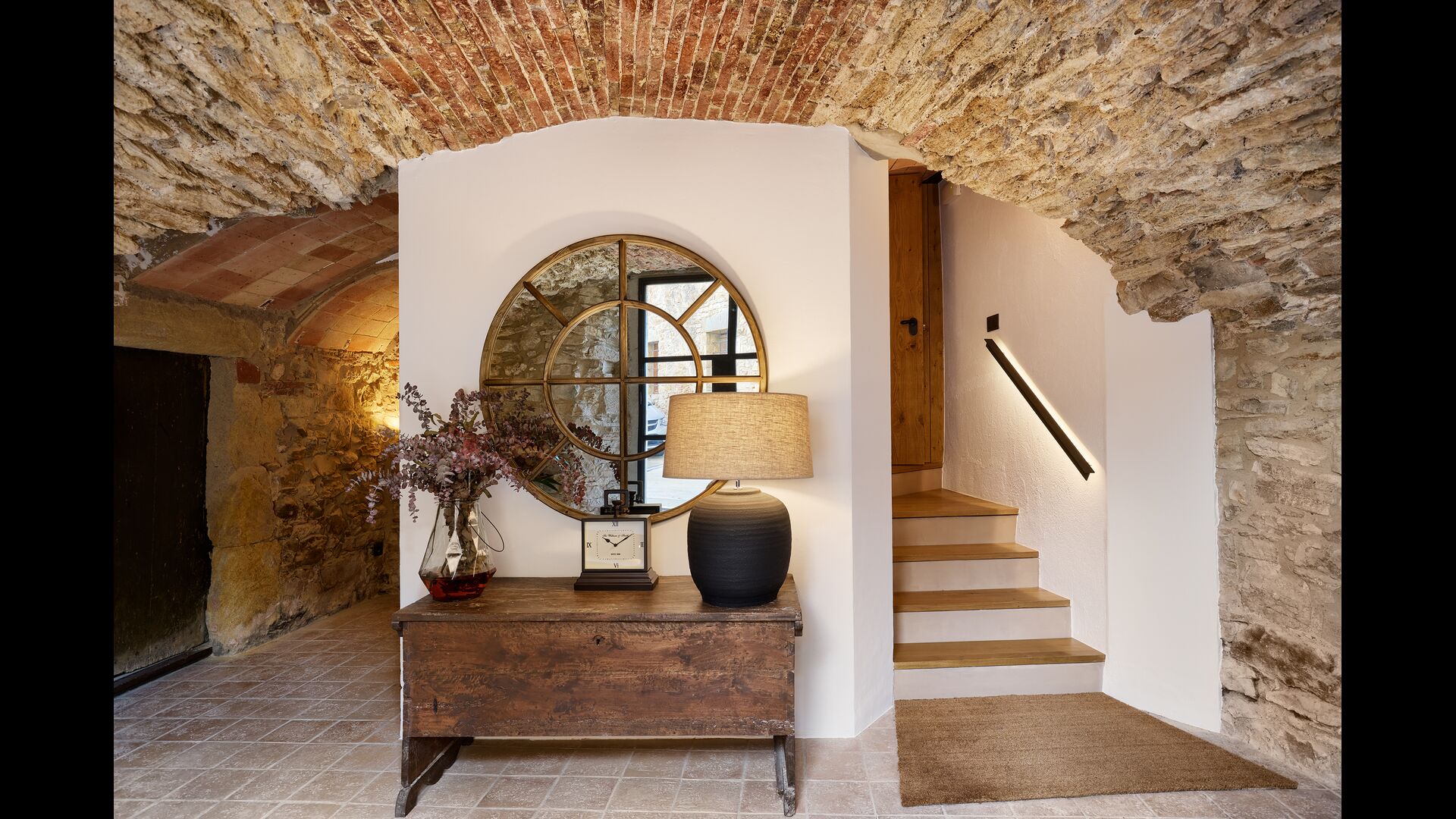 Si entra, se encuentra con una casa de muy alta calidad, y no se trata solo del material. También hay un buen ambiente en la casa. La casa dispone de tres plantas, a la entrada encontrará un recibidor con techos de "Volta catalana" tradicionales de las casas de campo del S.XVI, subiendo las escaleras o por el ascensor, en la primera planta está la gran cocina moderna y de diseño, equipada con doble lavavajillas, doble nevera, gran isla para cocinar, barra de desayunos con preciosas vistas al pueblo. La cocina se encuentra abierta al impresionante salón y comedor, donde una gran mesa os permitirá disfrutar de grandes comidas juntos. El salón tiene una gran televisión, además de la chimenea a gas y que todavía conserva la estructura del antiguo horno de pan y el techo de cañizo restaurado. En esta planta hay cuatro habitaciones bellamente decoradas. Cada una con cama de matrimonio y baño privado, totalmente equipado con ducha. Dos de las habitaciones cuentan con salida a una pequña terraza con vistas al jardín comunitario.