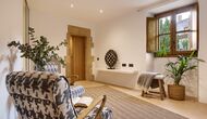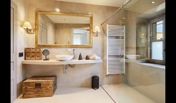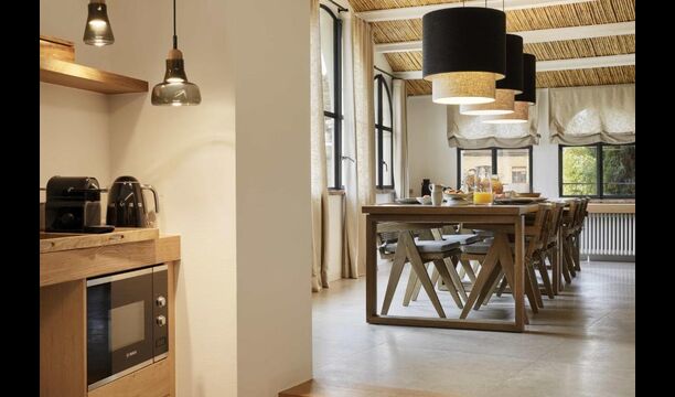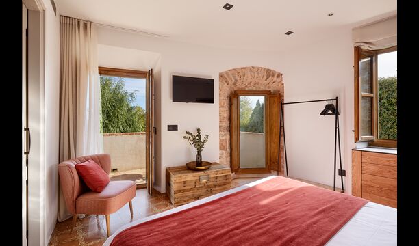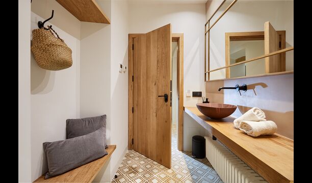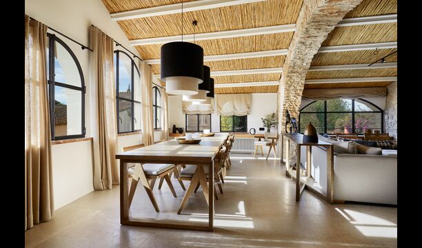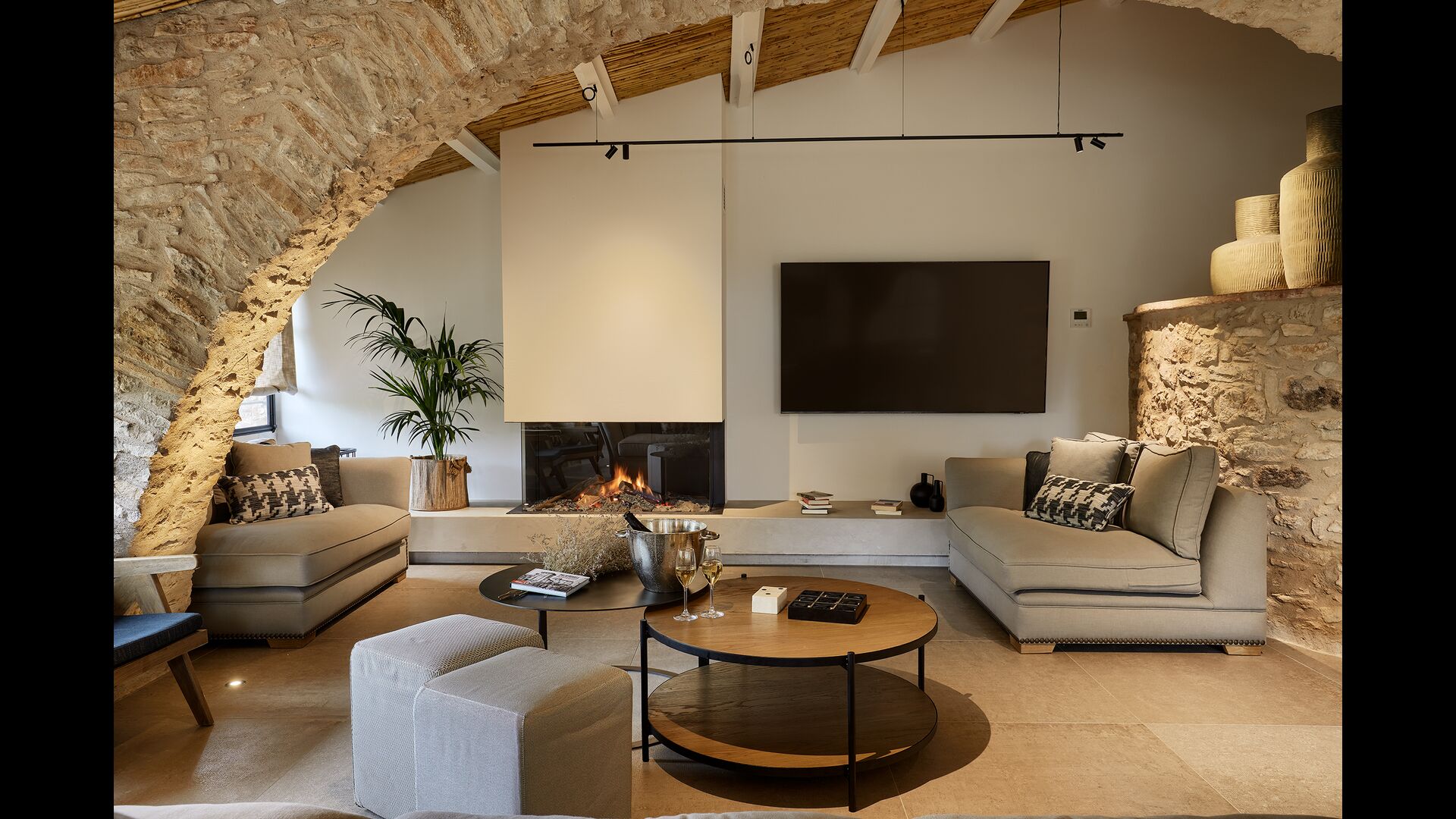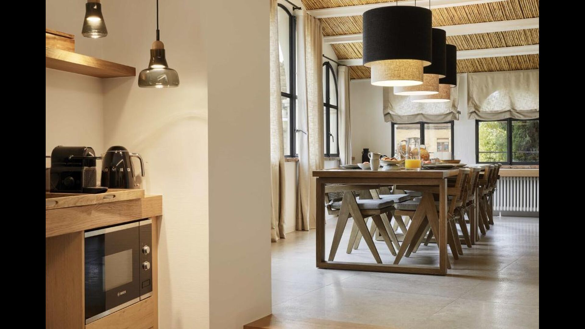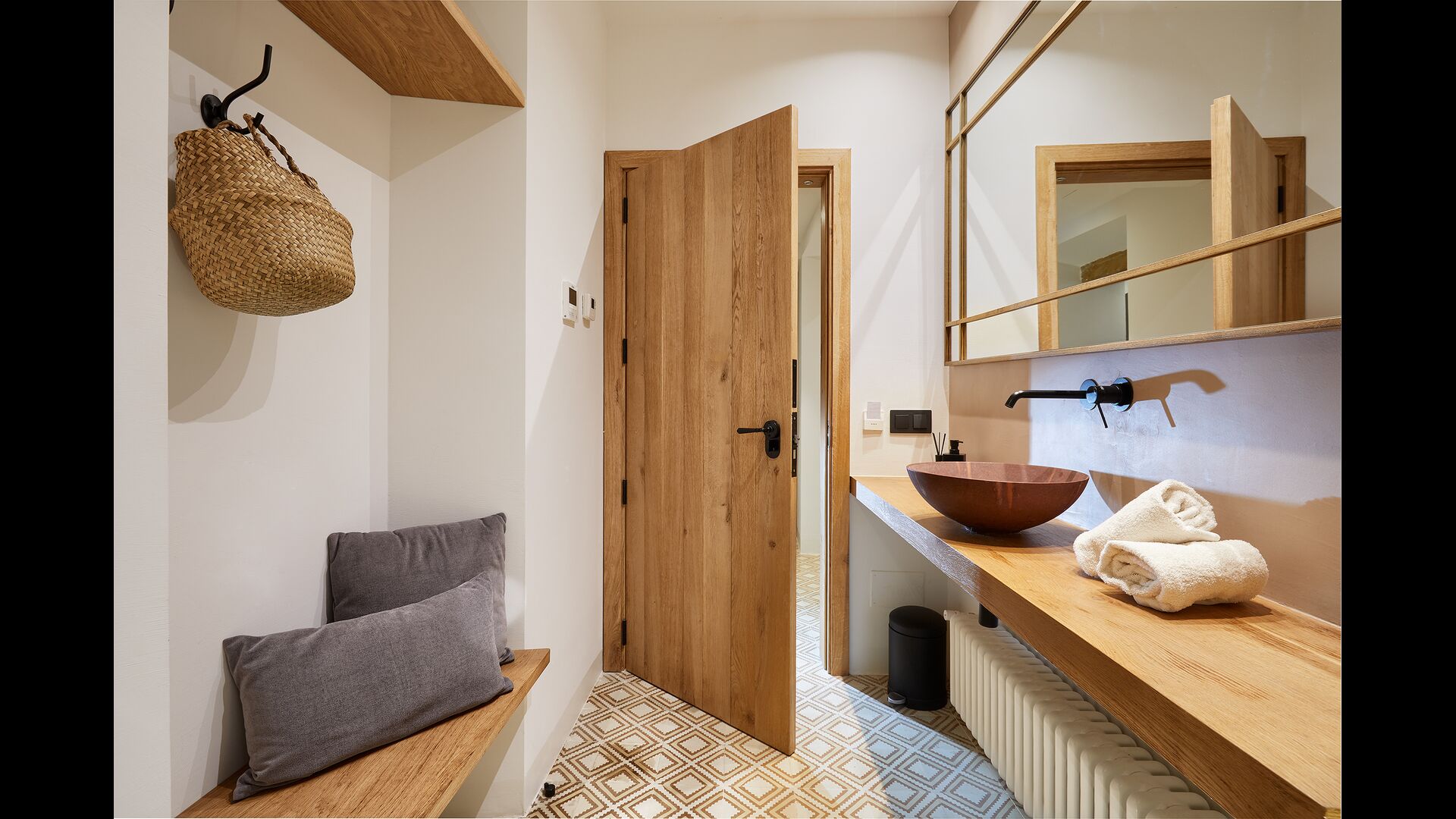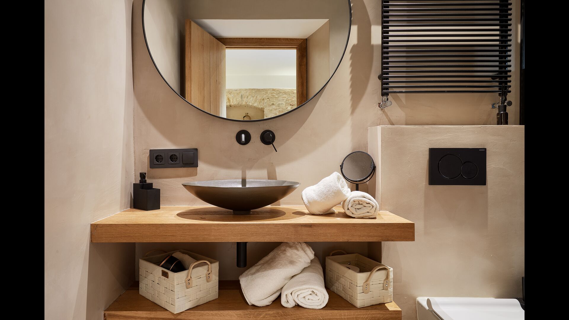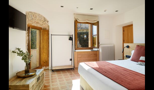 Si entra, se encuentra con una casa de muy alta calidad, y no se trata solo del material. También hay un buen ambiente en la casa. La casa dispone de tres plantas, a la entrada encontrará un recibidor con techos de "Volta catalana" tradicionales de las casas de campo del S.XVI, subiendo las escaleras o por el ascensor, en la primera planta está la gran cocina moderna y de diseño, equipada con doble lavavajillas, doble nevera, gran isla para cocinar, barra de desayunos con preciosas vistas al pueblo. La cocina se encuentra abierta al impresionante salón y comedor, donde una gran mesa os permitirá disfrutar de grandes comidas juntos. El salón tiene una gran televisión, además de la chimenea a gas y que todavía conserva la estructura del antiguo horno de pan y el techo de cañizo restaurado. En esta planta hay cuatro habitaciones bellamente decoradas. Cada una con cama de matrimonio y baño privado, totalmente equipado con ducha. Dos de las habitaciones cuentan con salida a una pequña terraza con vistas al jardín comunitario.