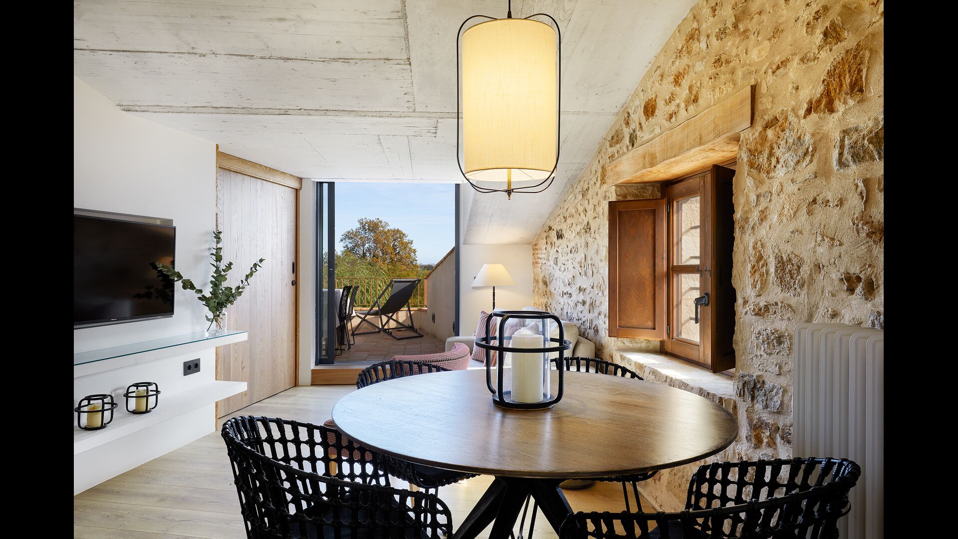 En la segunda planta, se encuentran dos habitaciones dobles más con baño. También hay un salón-comedor donde poder relajarse y leer un libro. Además de una acogedora terraza donde disfrutar de las vistas al campo y al cielo estrellado en las bonitas noches de verano.