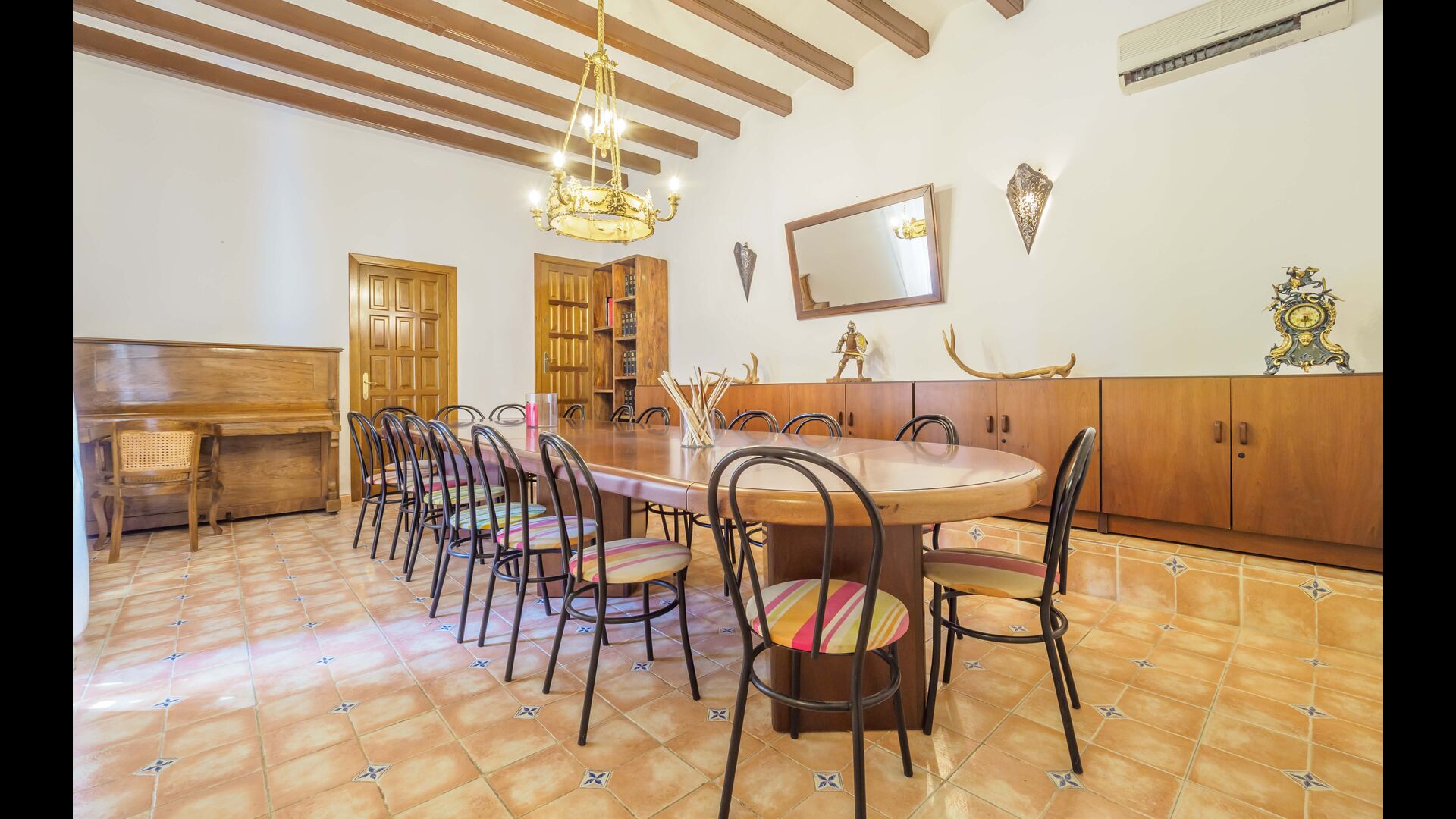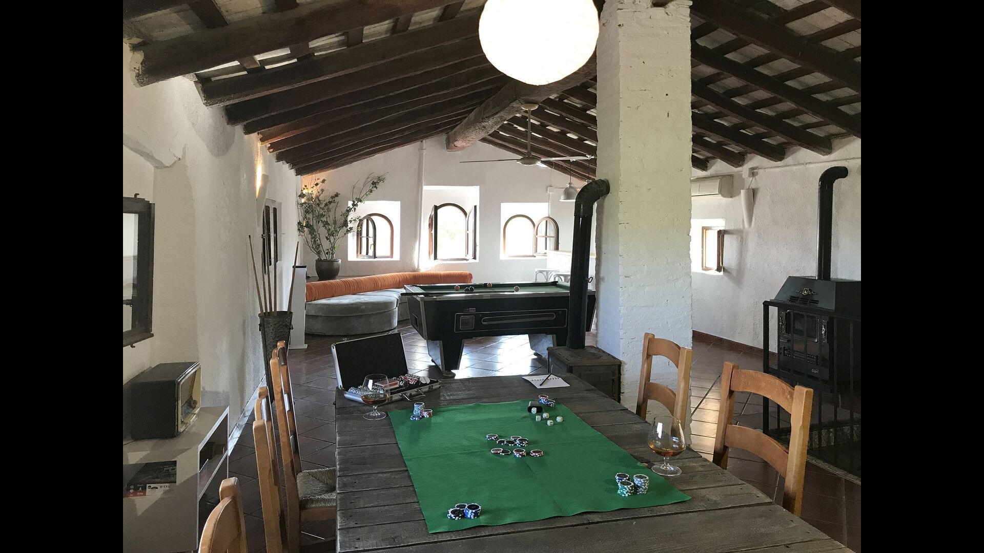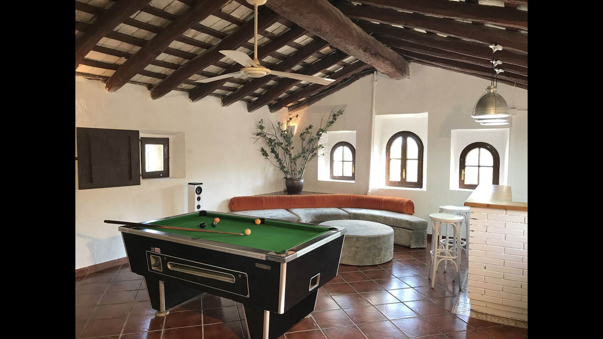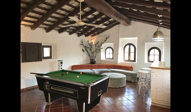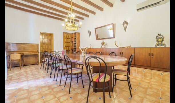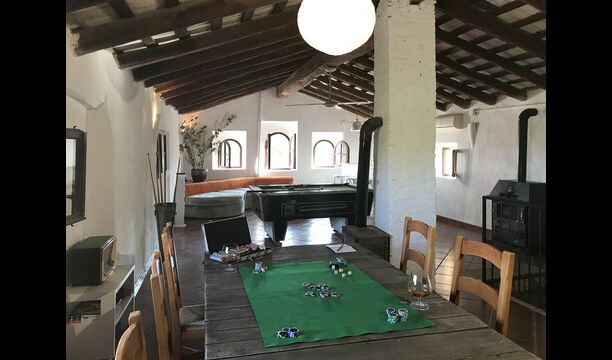 Esta casa tiene una superficie útil de 980m2 y 5.400m2 de exterior. Las estancias están distribuidas en 4 niveles: Dispone de cocina completa con mesa desayuno, un comedor principal independiente, salón con chimenea original de la casa, salón de lectura y buhardilla para uso recreativo que cuenta con un billar, una diana y juegos de mesa.