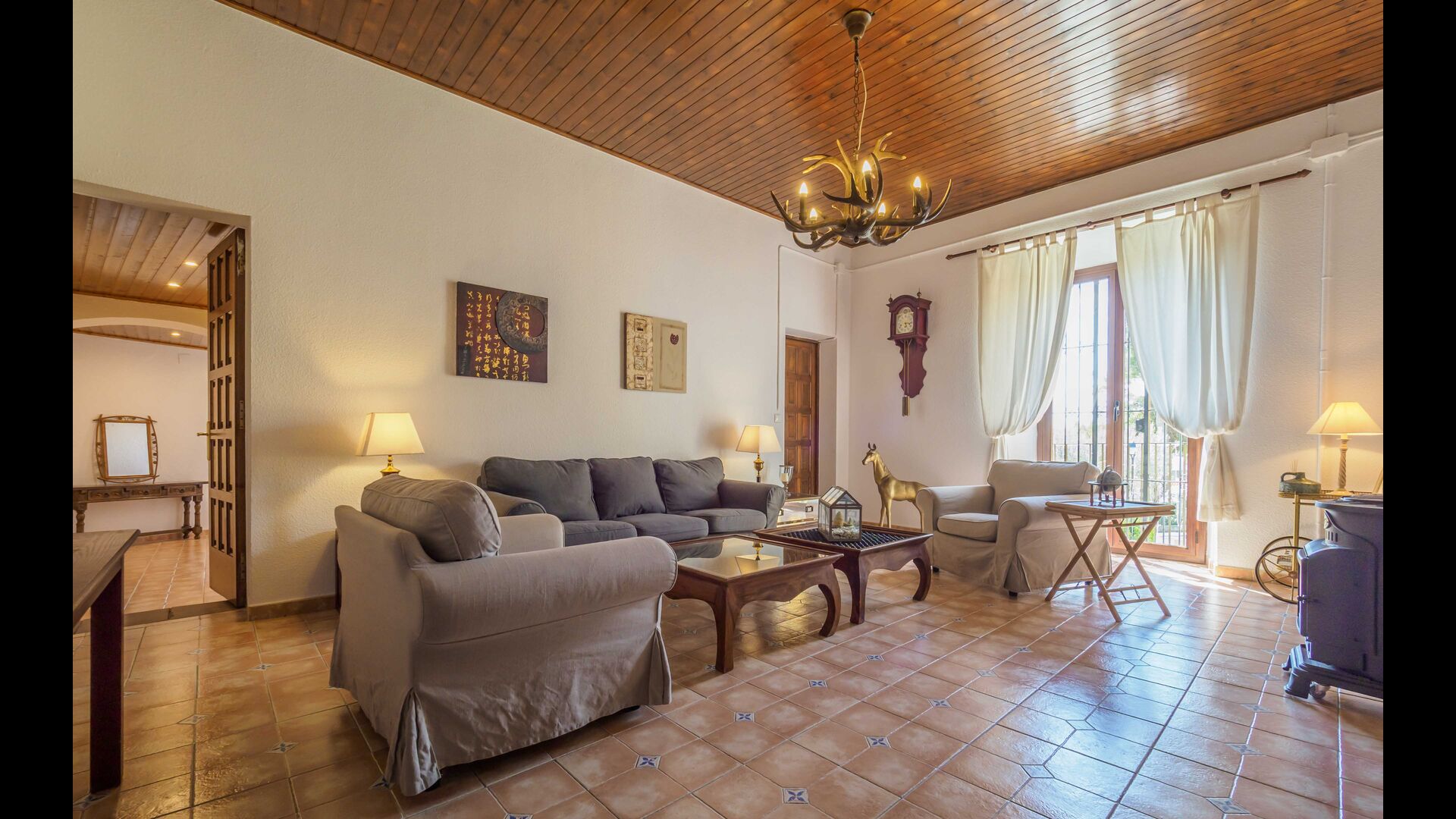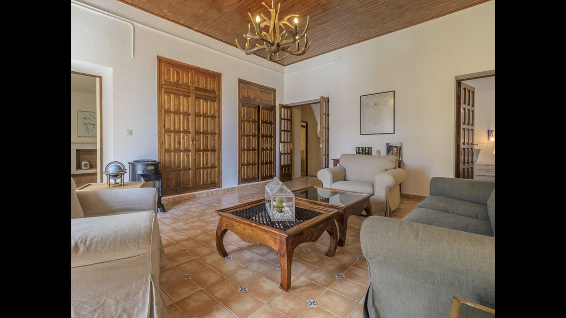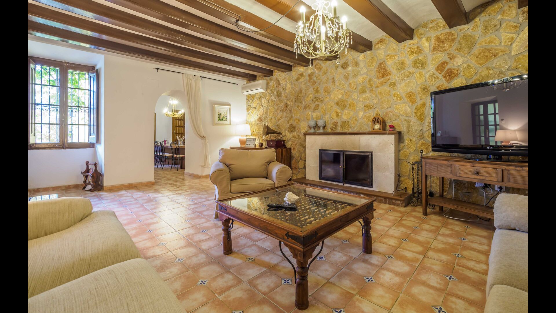 Esta casa tiene una superficie útil de 980m2 y 5.400m2 de exterior. Las estancias están distribuidas en 4 niveles: Dispone de cocina completa con mesa desayuno, un comedor principal independiente, salón con chimenea original de la casa, salón de lectura y buhardilla para uso recreativo que cuenta con un billar, una diana y juegos de mesa.