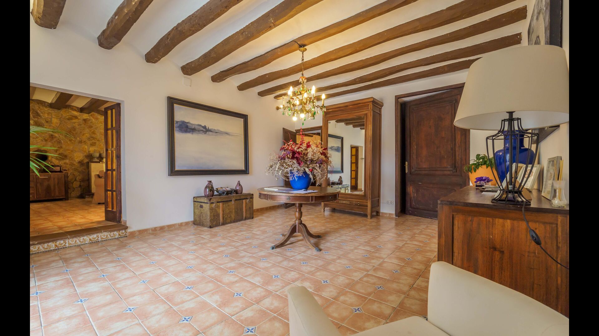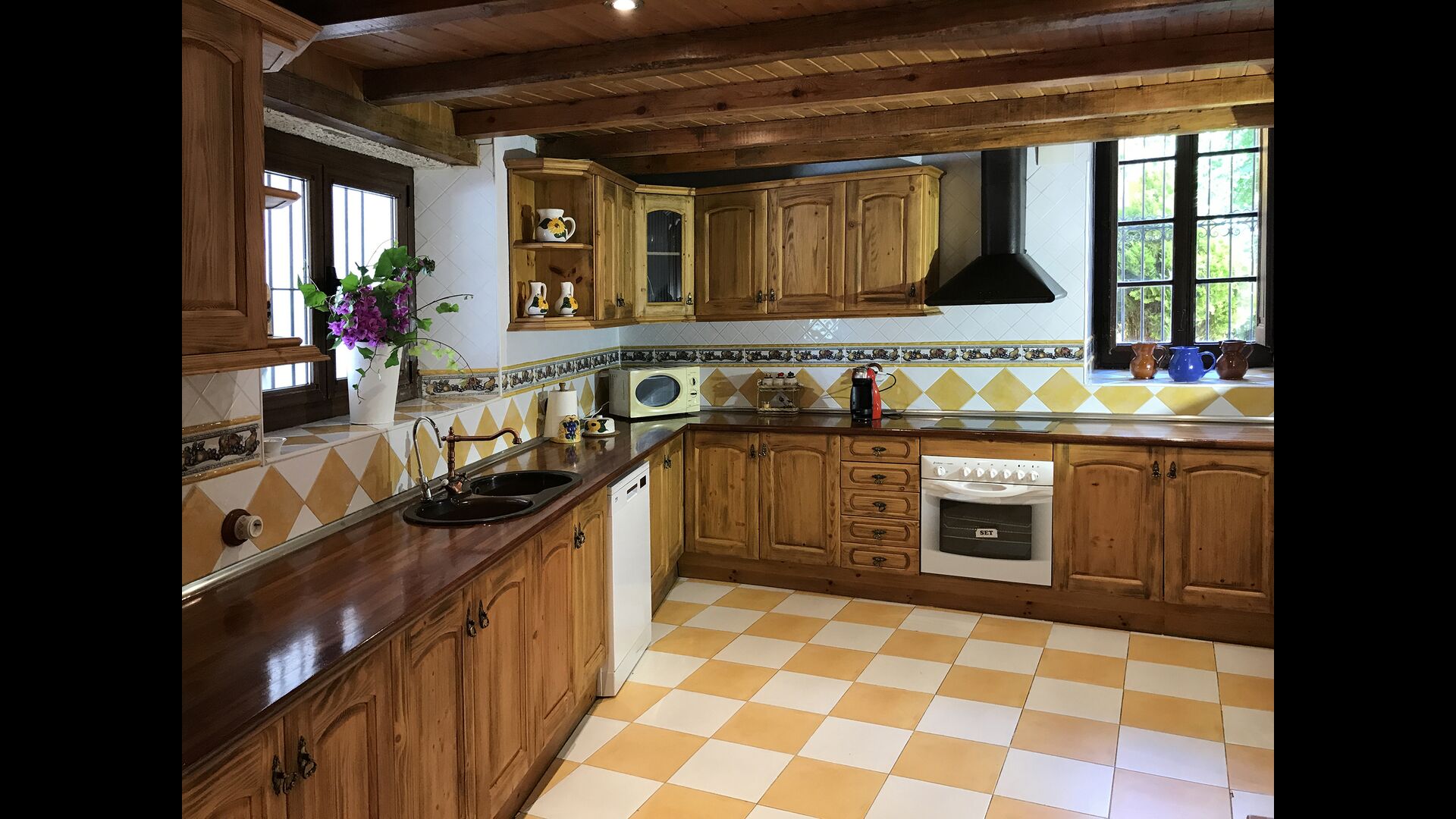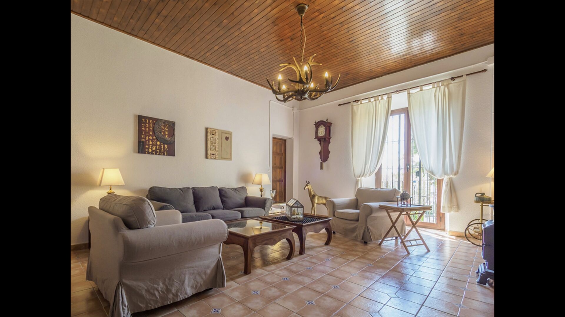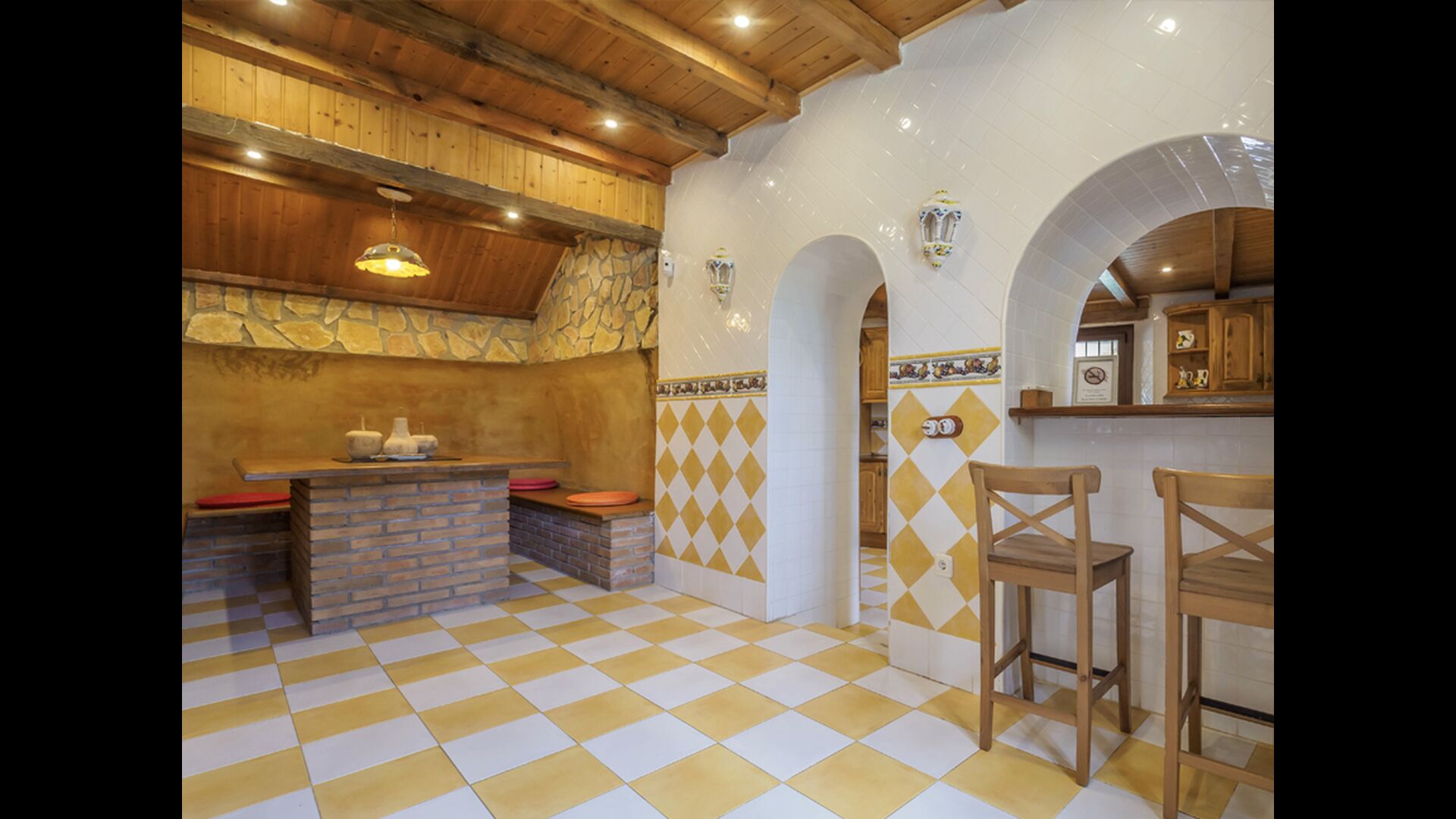 Esta casa tiene una superficie útil de 980m2 y 5.400m2 de exterior. Las estancias están distribuidas en 4 niveles: Dispone de cocina completa con mesa desayuno, un comedor principal independiente, salón con chimenea original de la casa, salón de lectura y buhardilla para uso recreativo que cuenta con un billar, una diana y juegos de mesa.