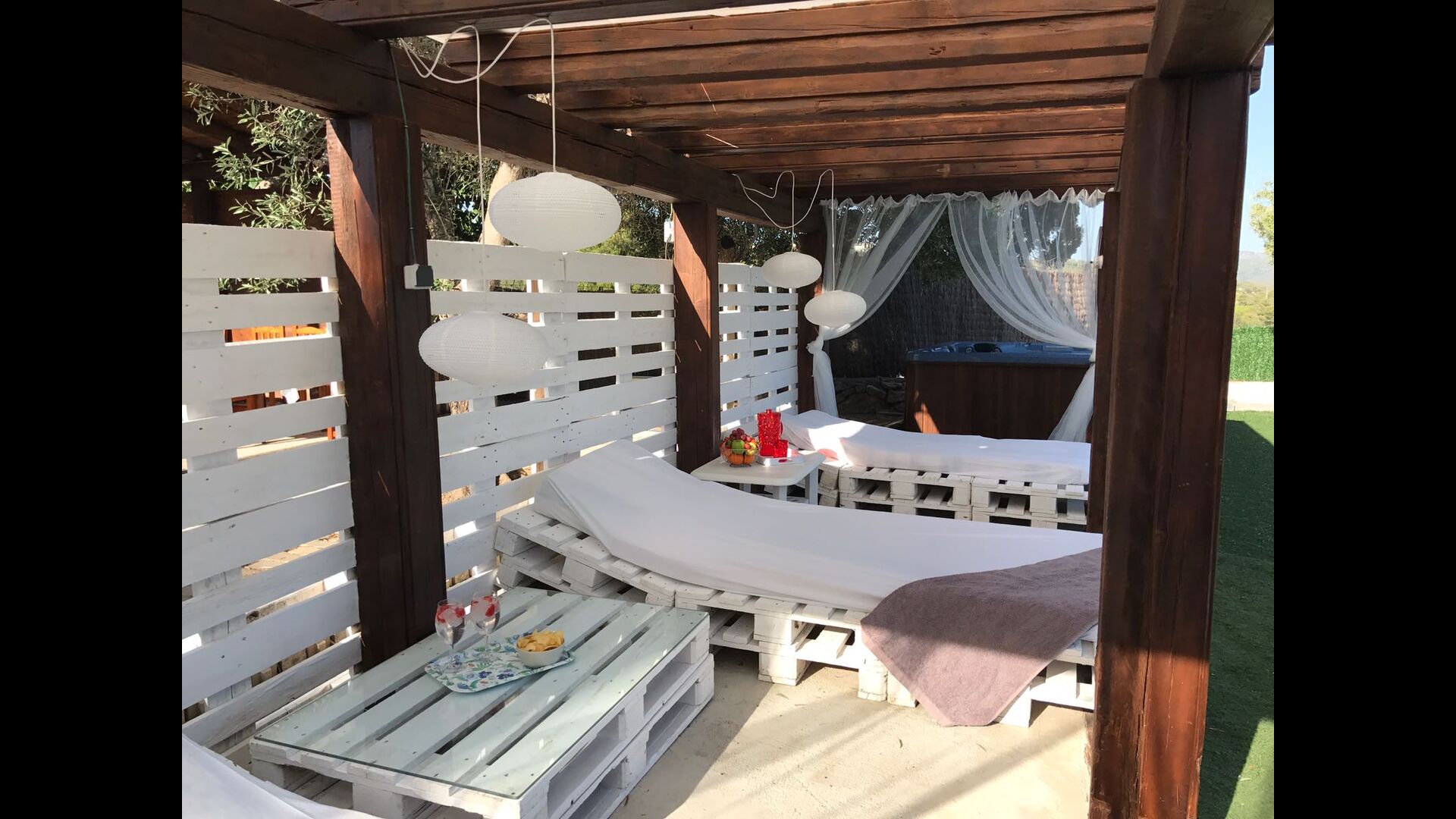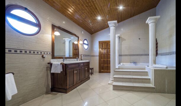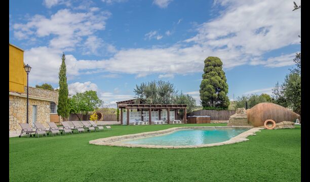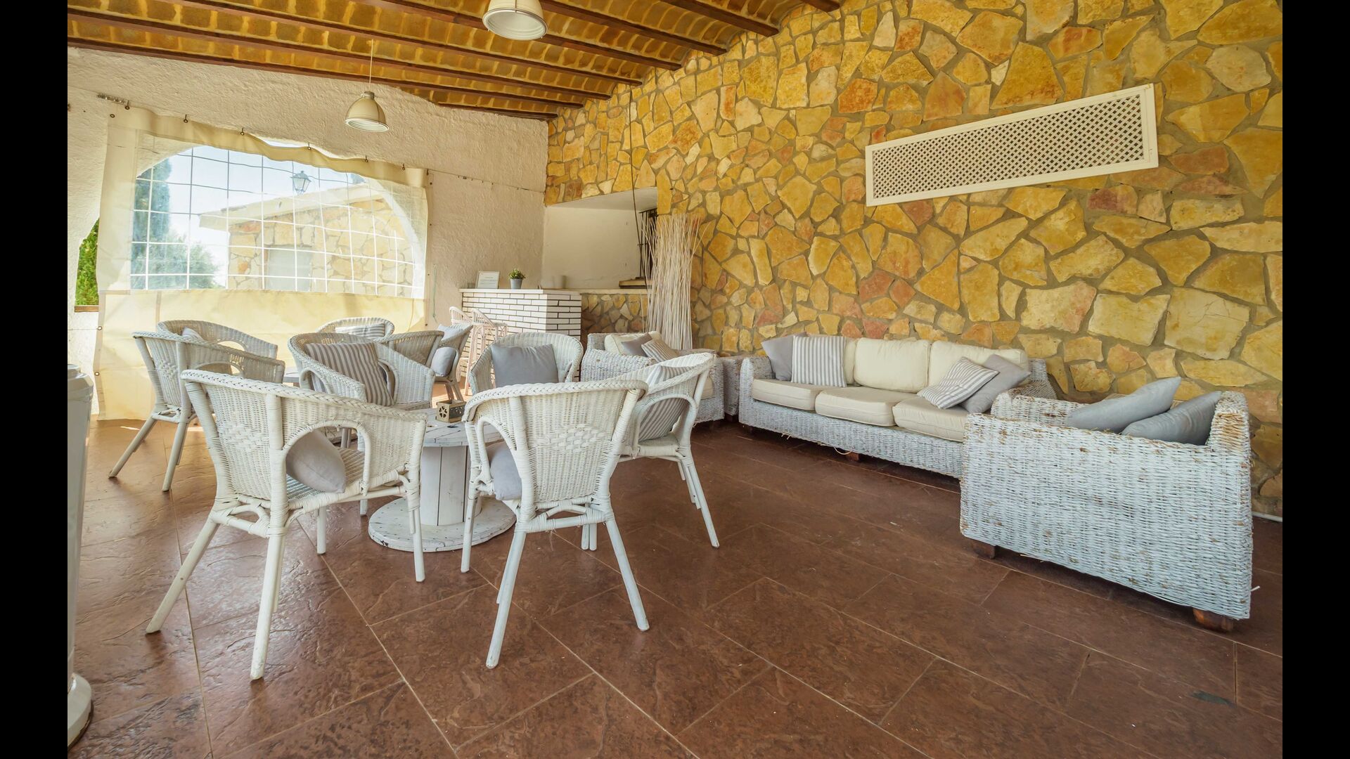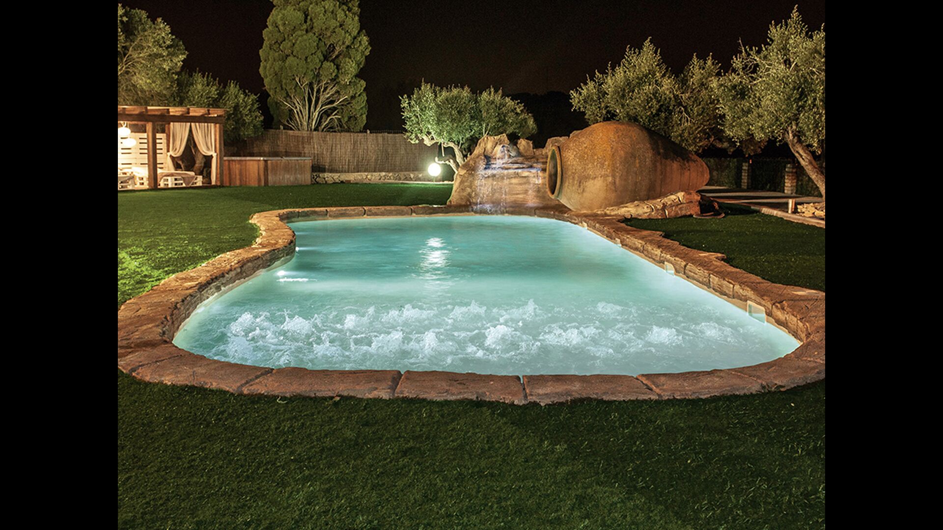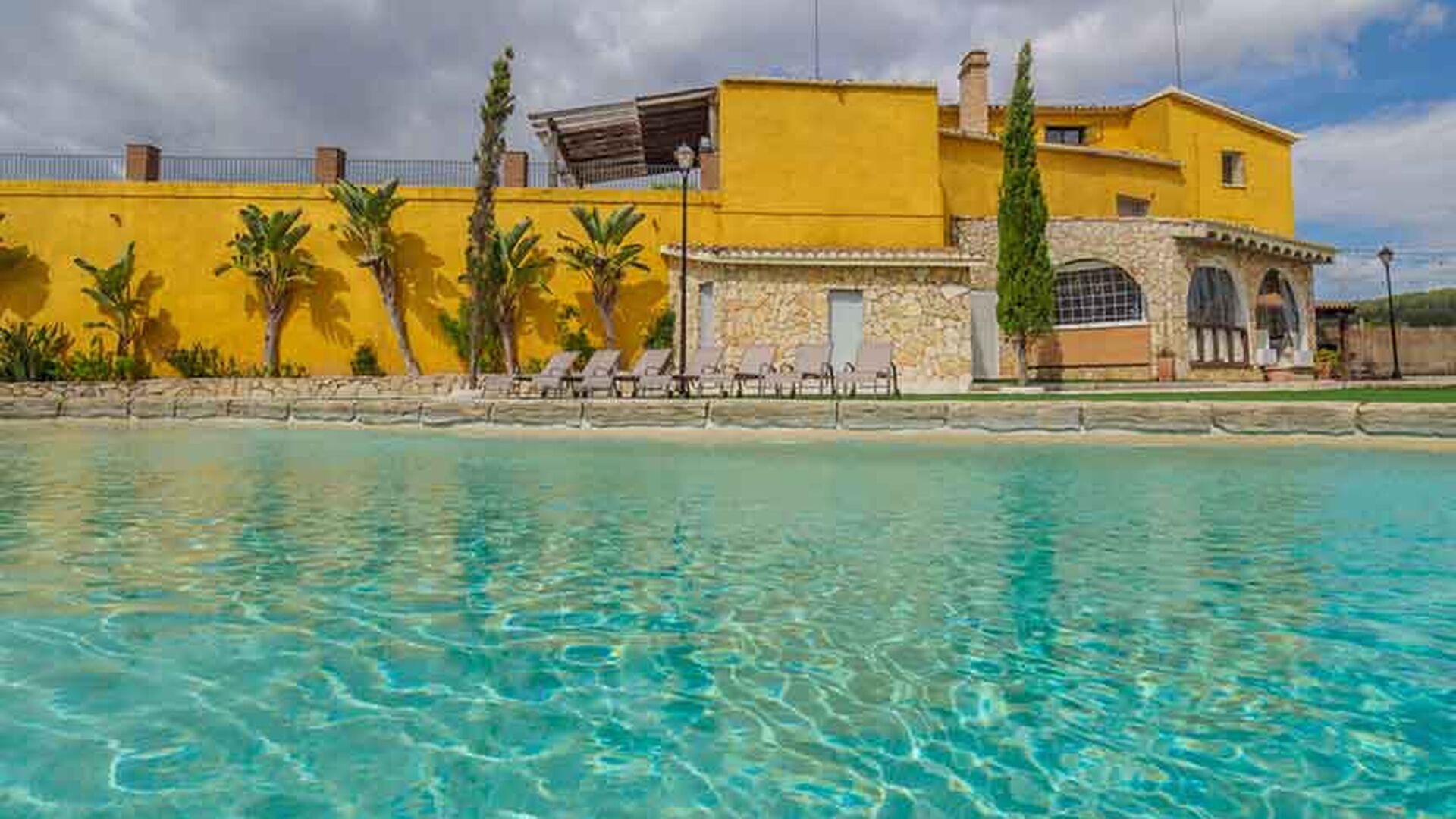 En las zonas exteriores encontrará una diversidad de espacios destacando una gran piscina tipo playa con hidromasaje con una cascada de agua, zona de hamacas chill-out y jacuzzi. Además, dispone de un comedor exterior, una barbacoa y un amplio porche con sillones.