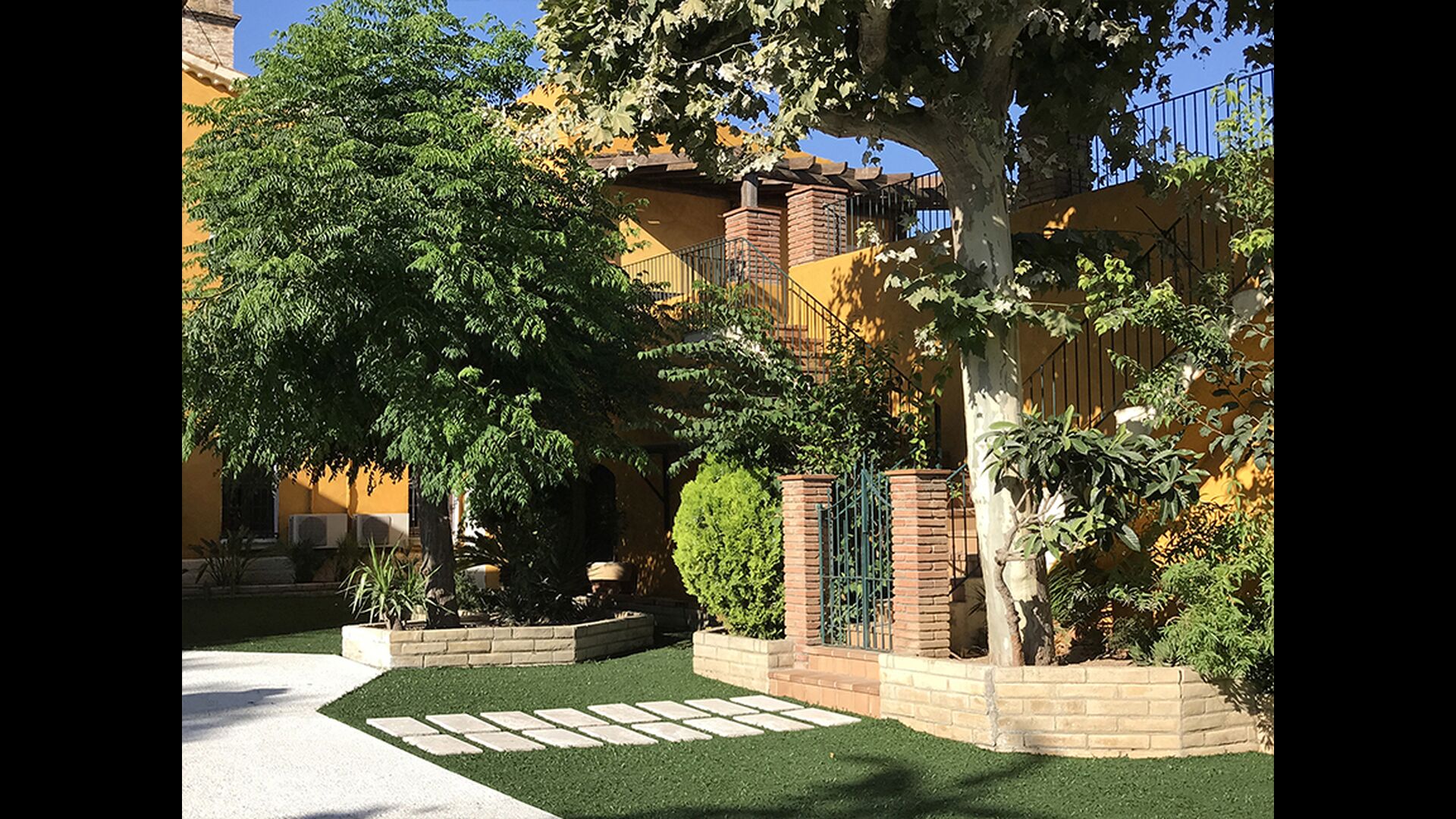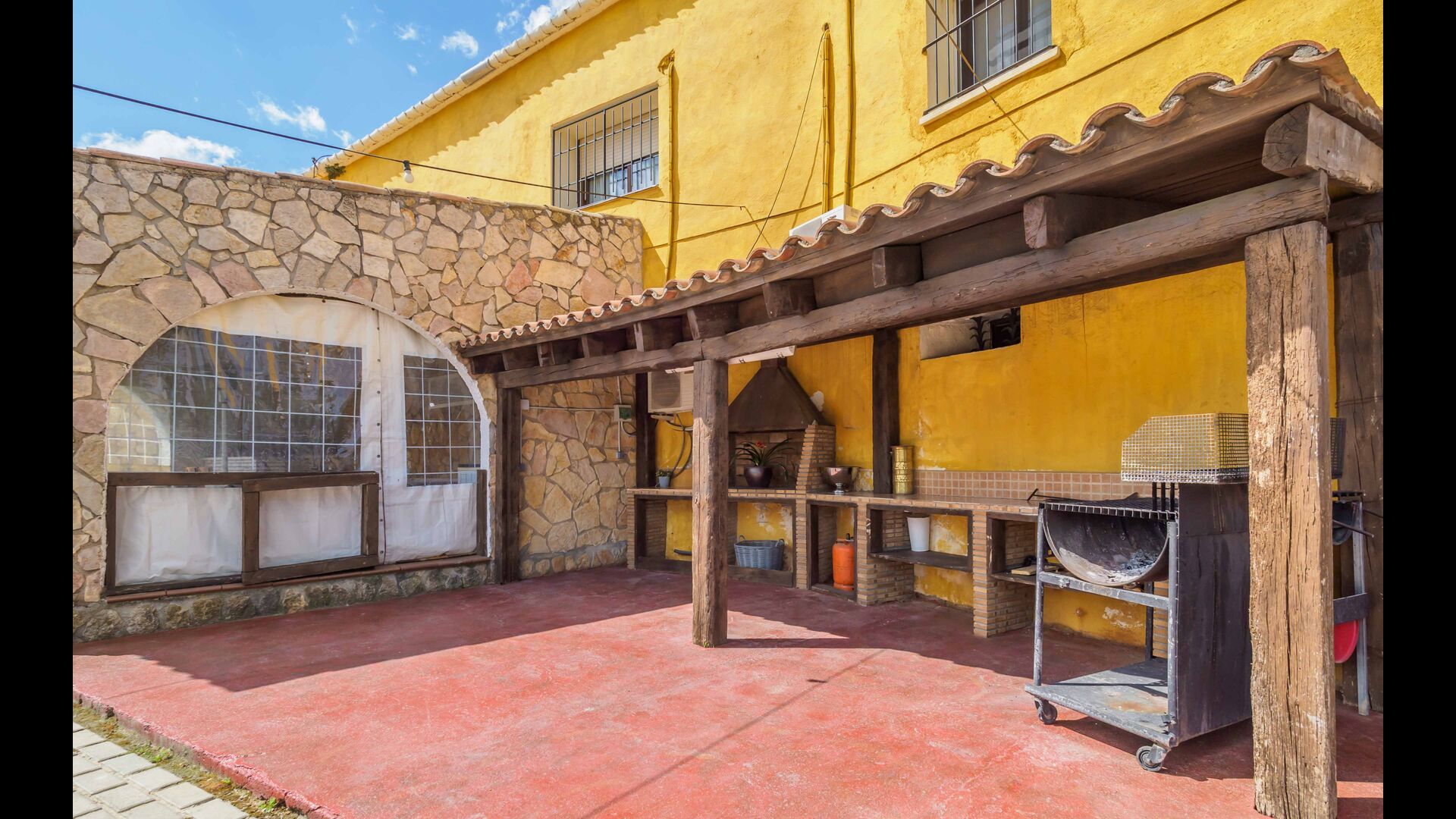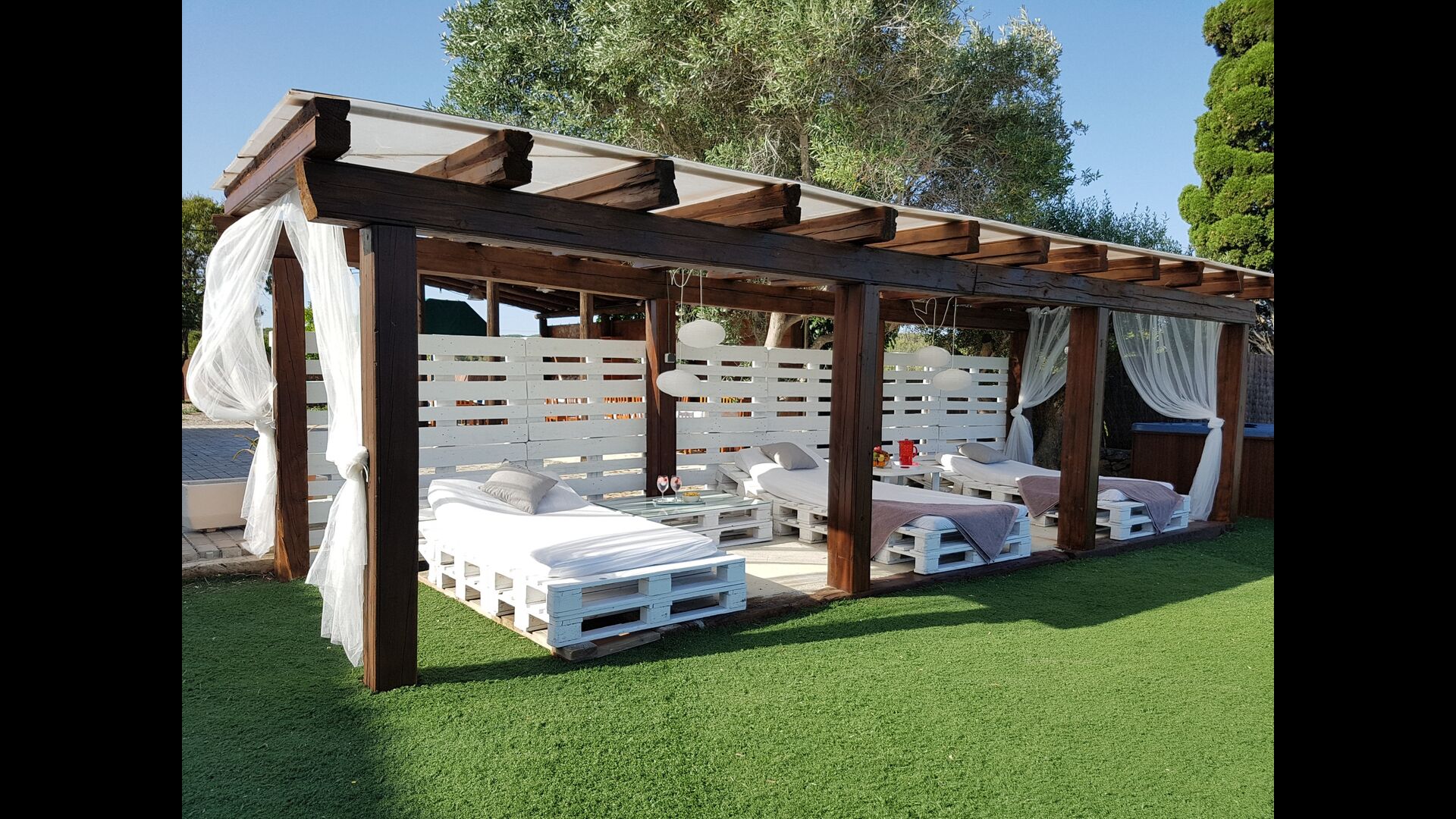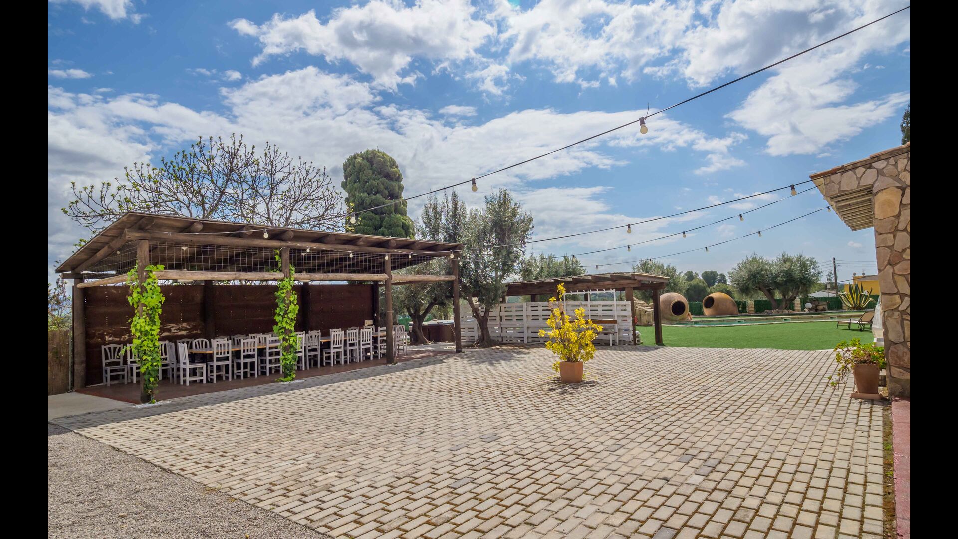 En las zonas exteriores encontrará una diversidad de espacios destacando una gran piscina tipo playa con hidromasaje con una cascada de agua, zona de hamacas chill-out y jacuzzi. Además, dispone de un comedor exterior, una barbacoa y un amplio porche con sillones.