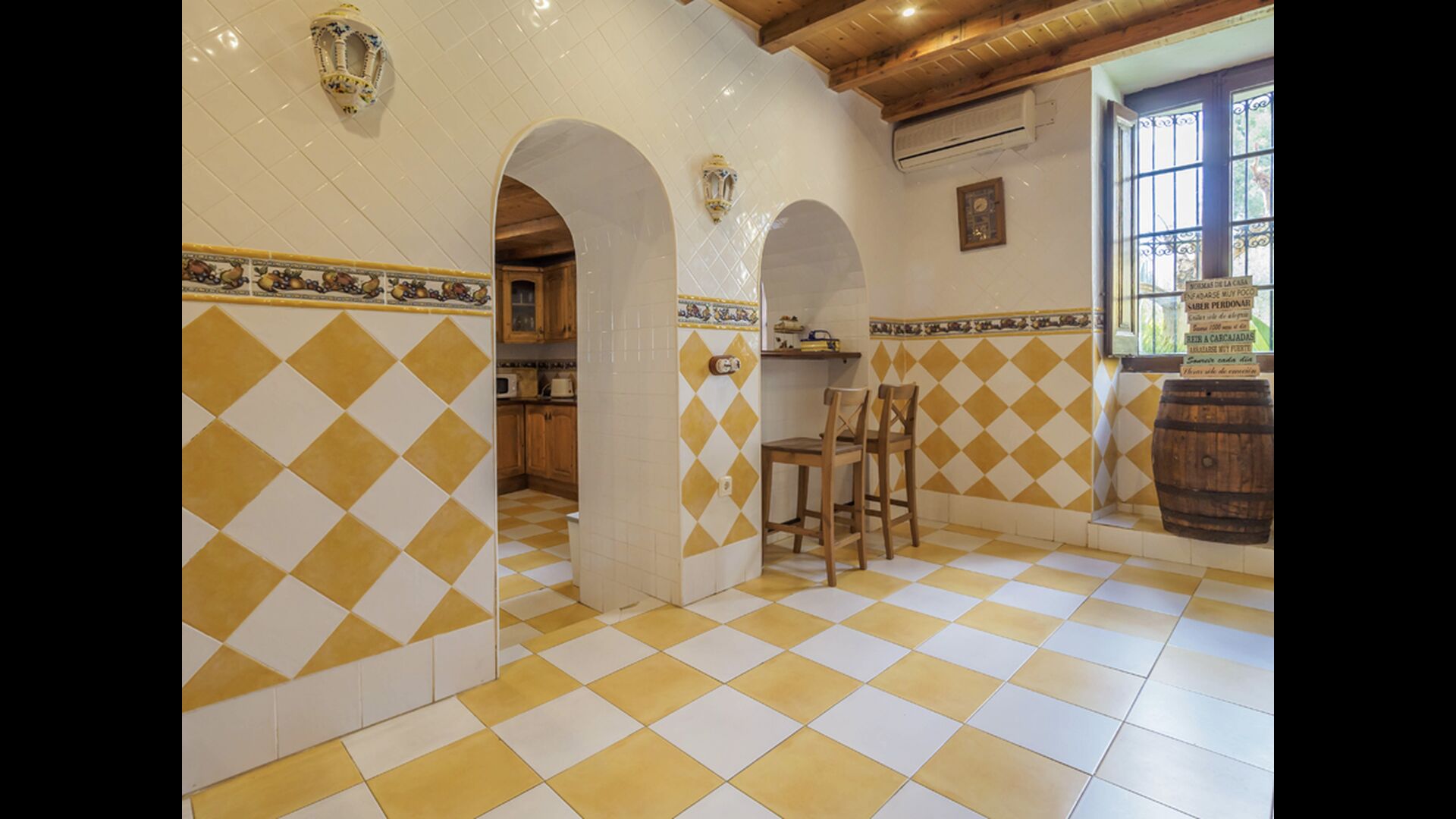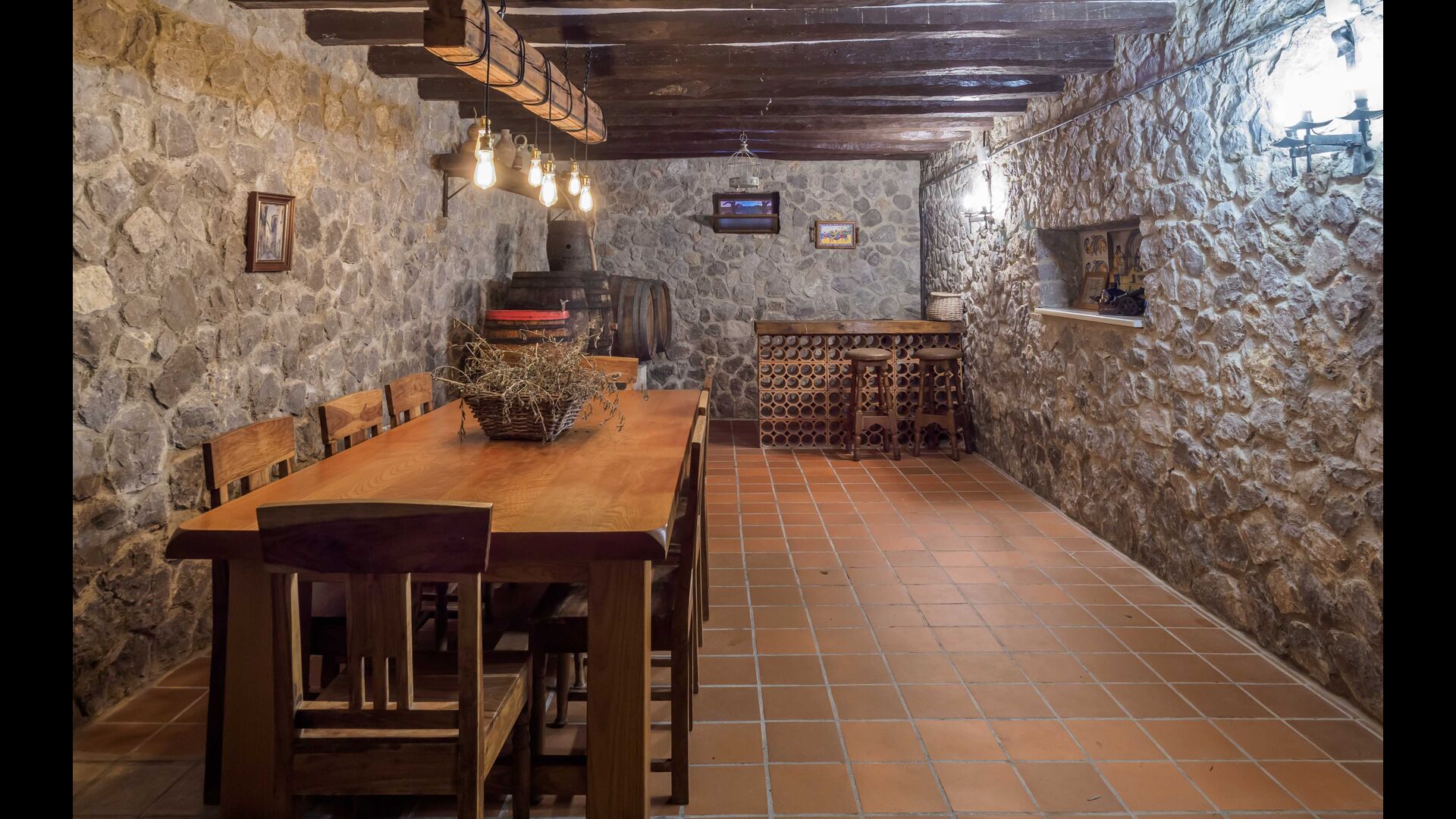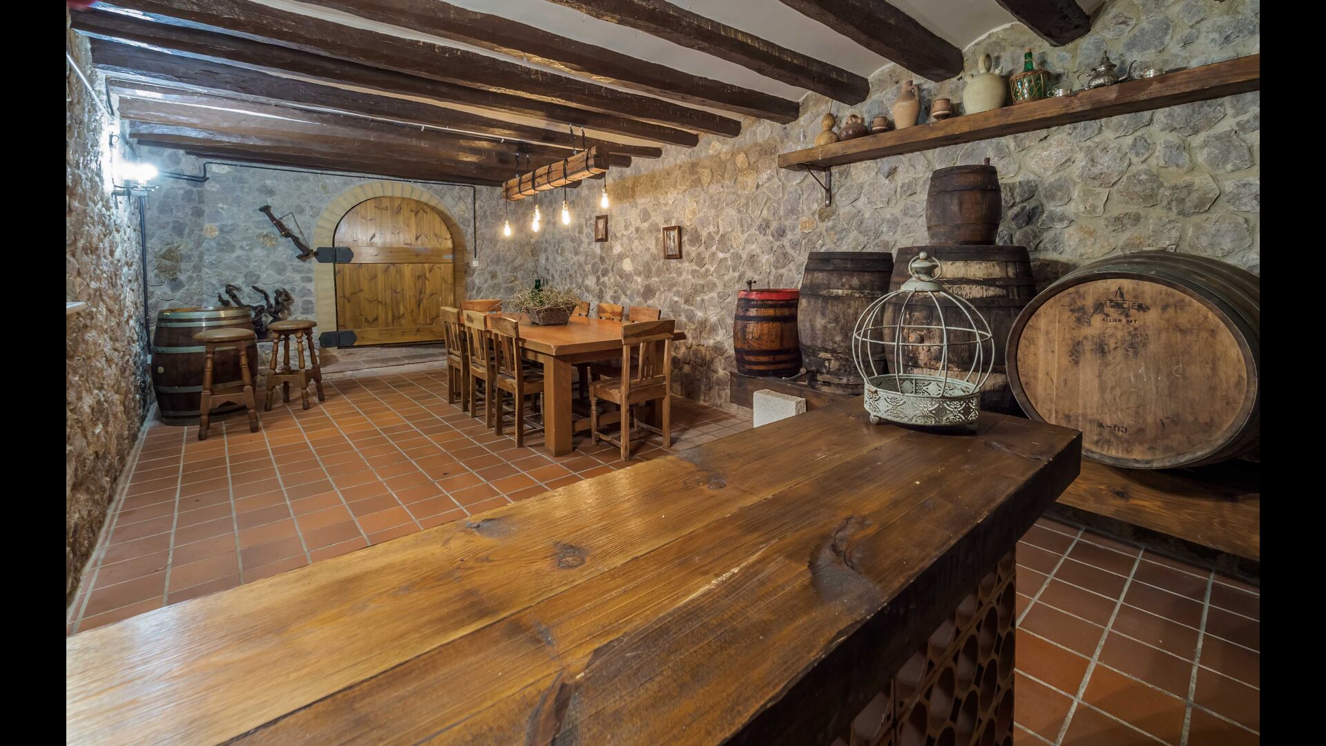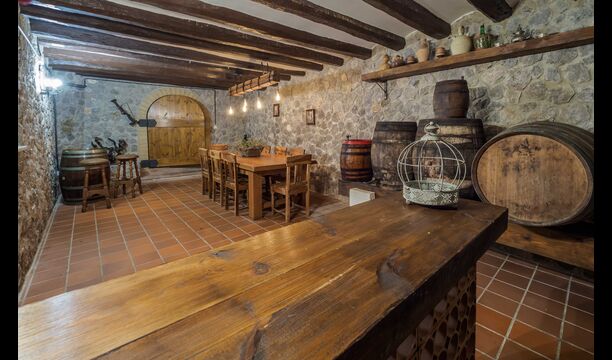En la planta baja, encontramos la bodega con una sala de degustaciones ambientada de forma tradicional con una sala de envejecimiento del vino.