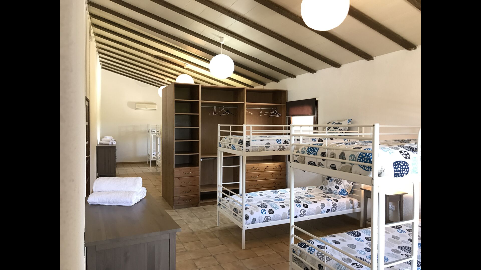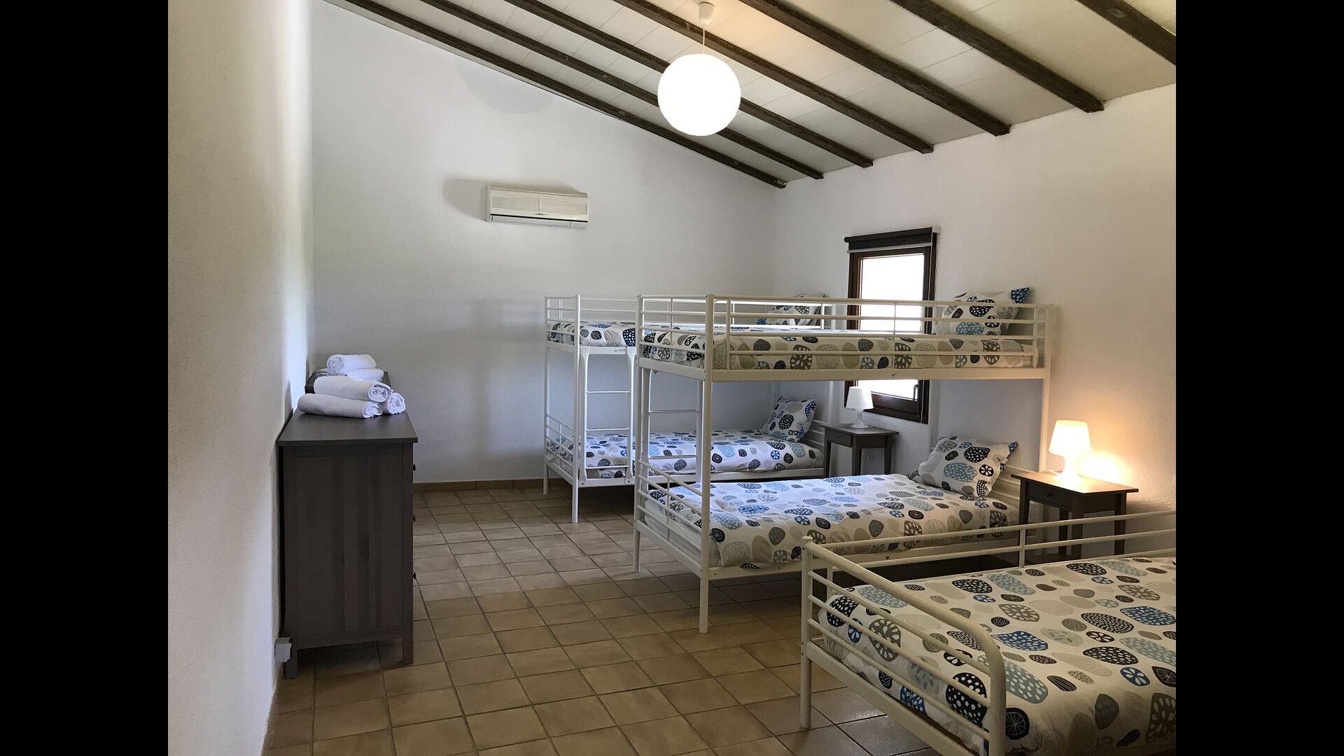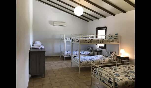 Tiene una capacidad para 24 personas: una suite presidencial, 8 habitaciones dobles y una buhardilla con literas con capacidad para 10 personas. Cuenta con 5 baños completos y 2 aseos.