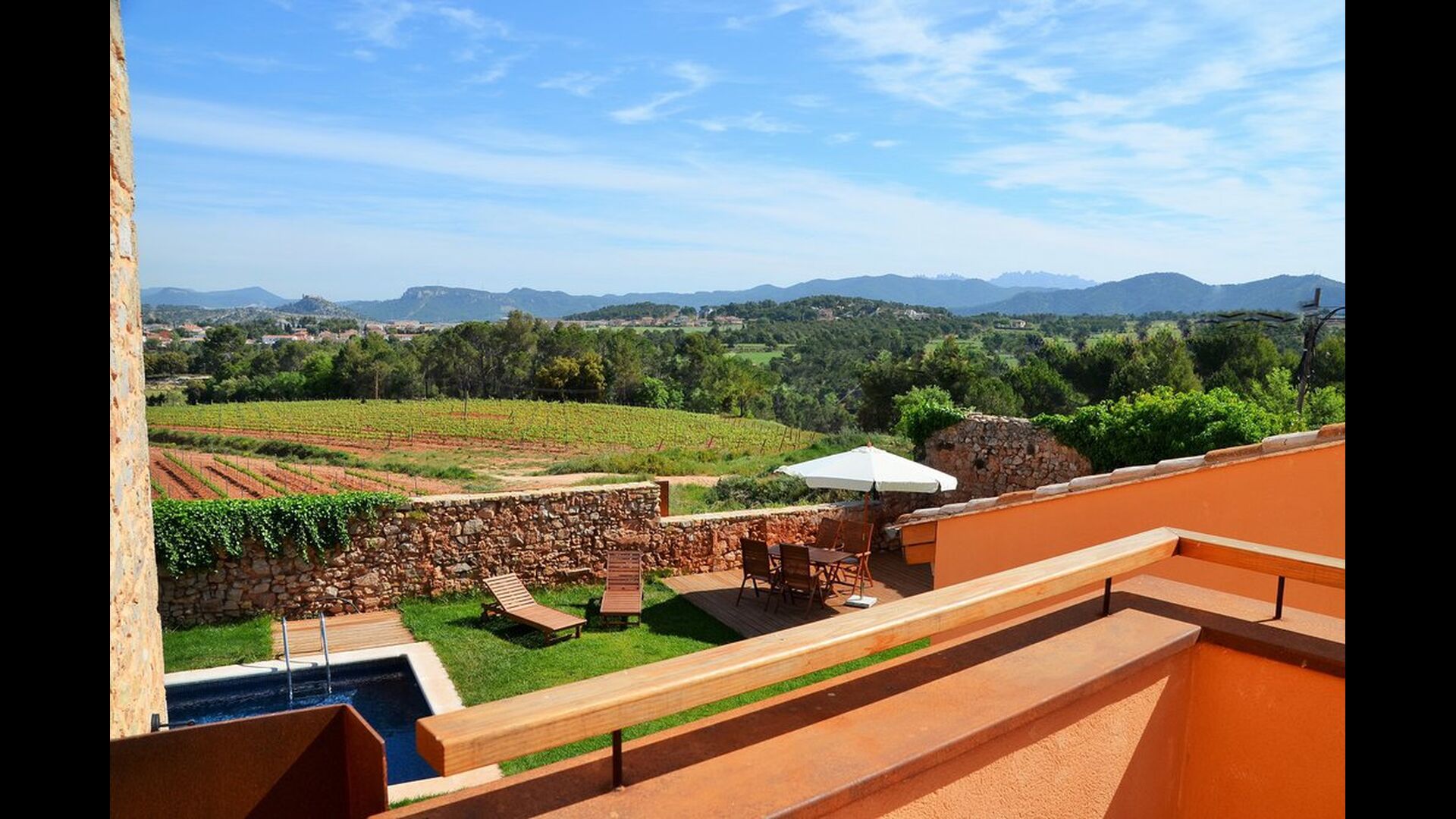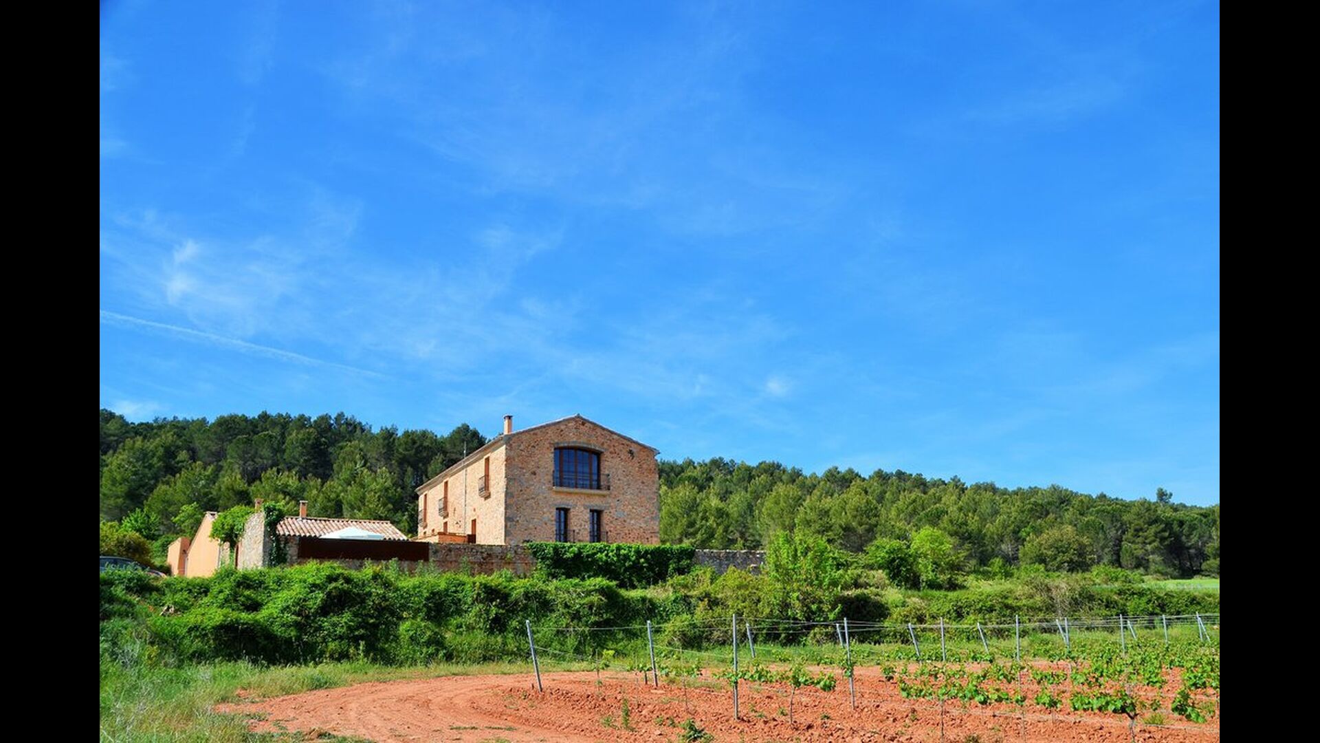 Arriving in Casa Granmont you immediately feel arrived in Catalonia. Leave the main road and follow the small gravel road passing a few houses and a stream and then, driving between the wine yards, you see the house coming closer, slightly above the landscape in the distance.
