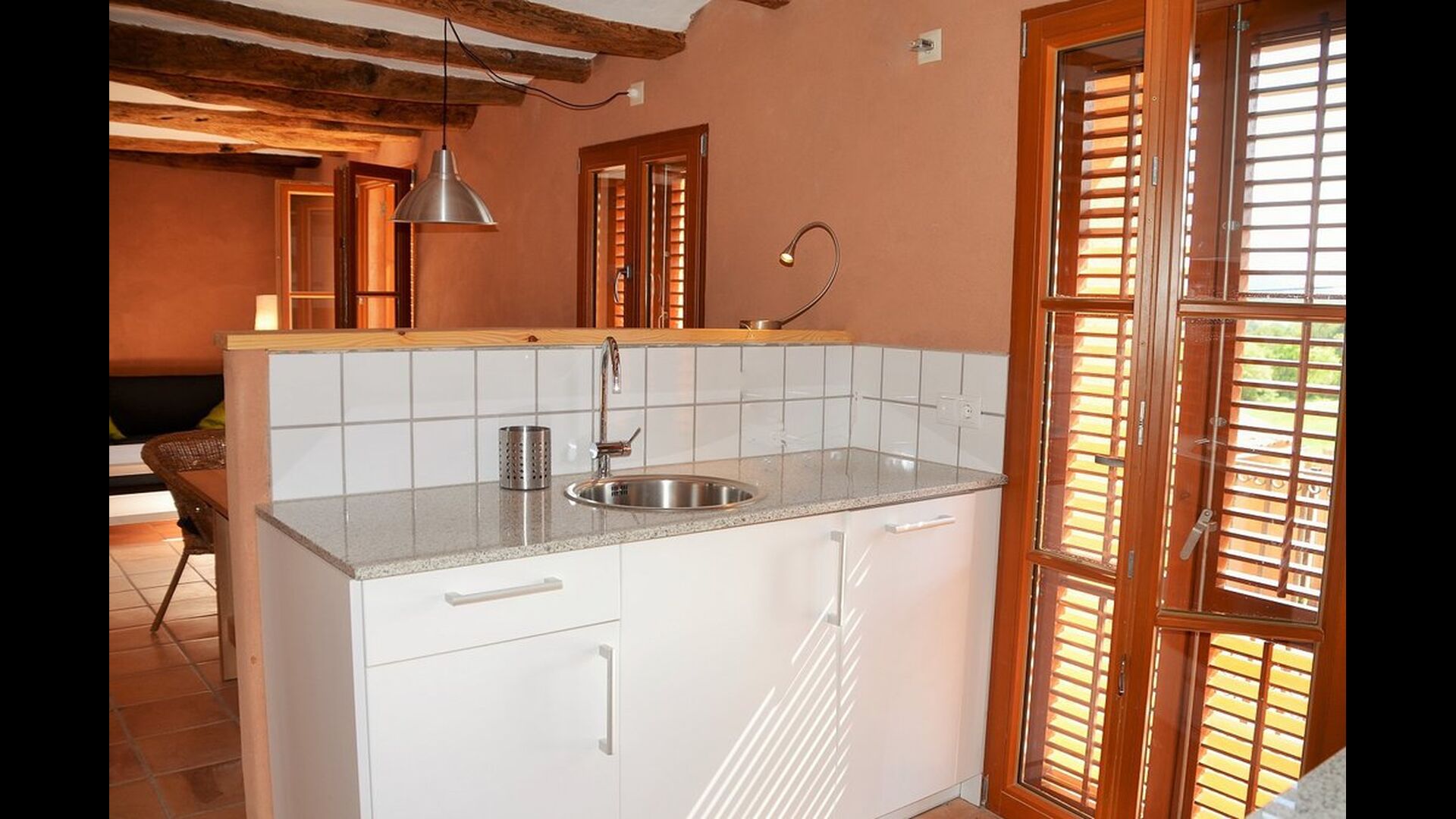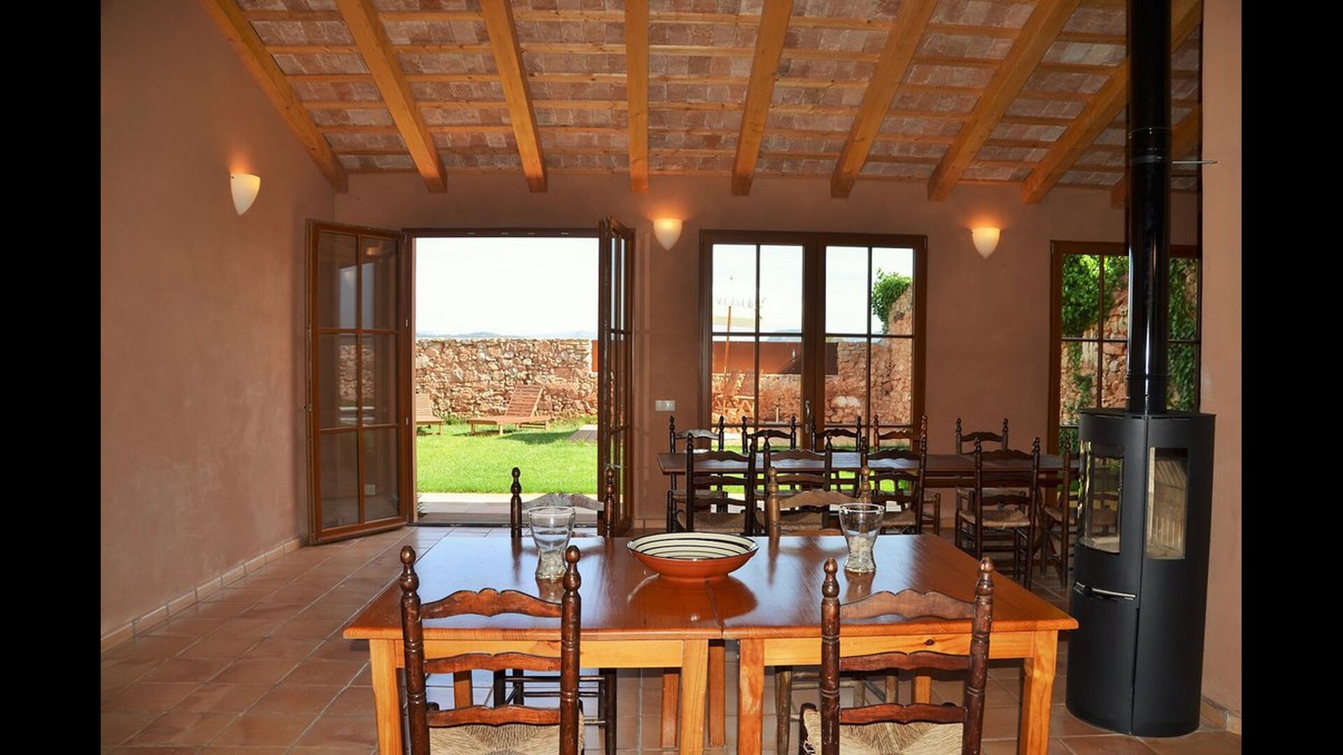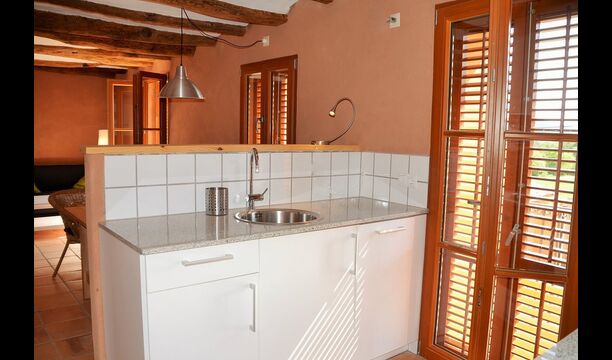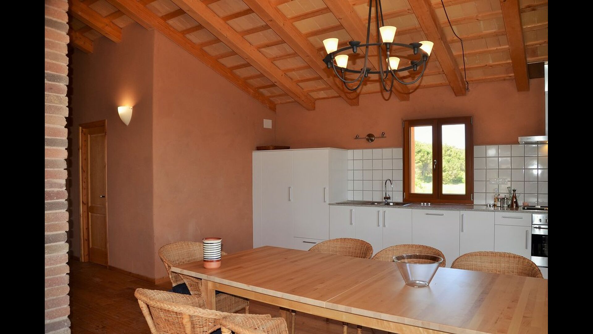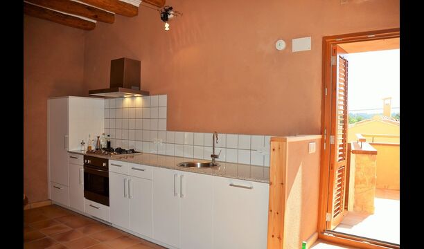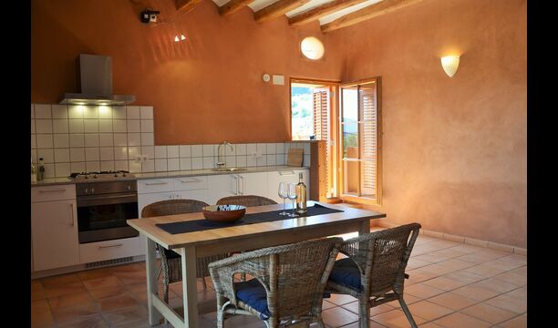 The natural centre for your holiday is the big common room for cooking and eating next to the swimming pool, with a big dining table, kitchen and direct access to the swimming pool and the outdoor terrace.
