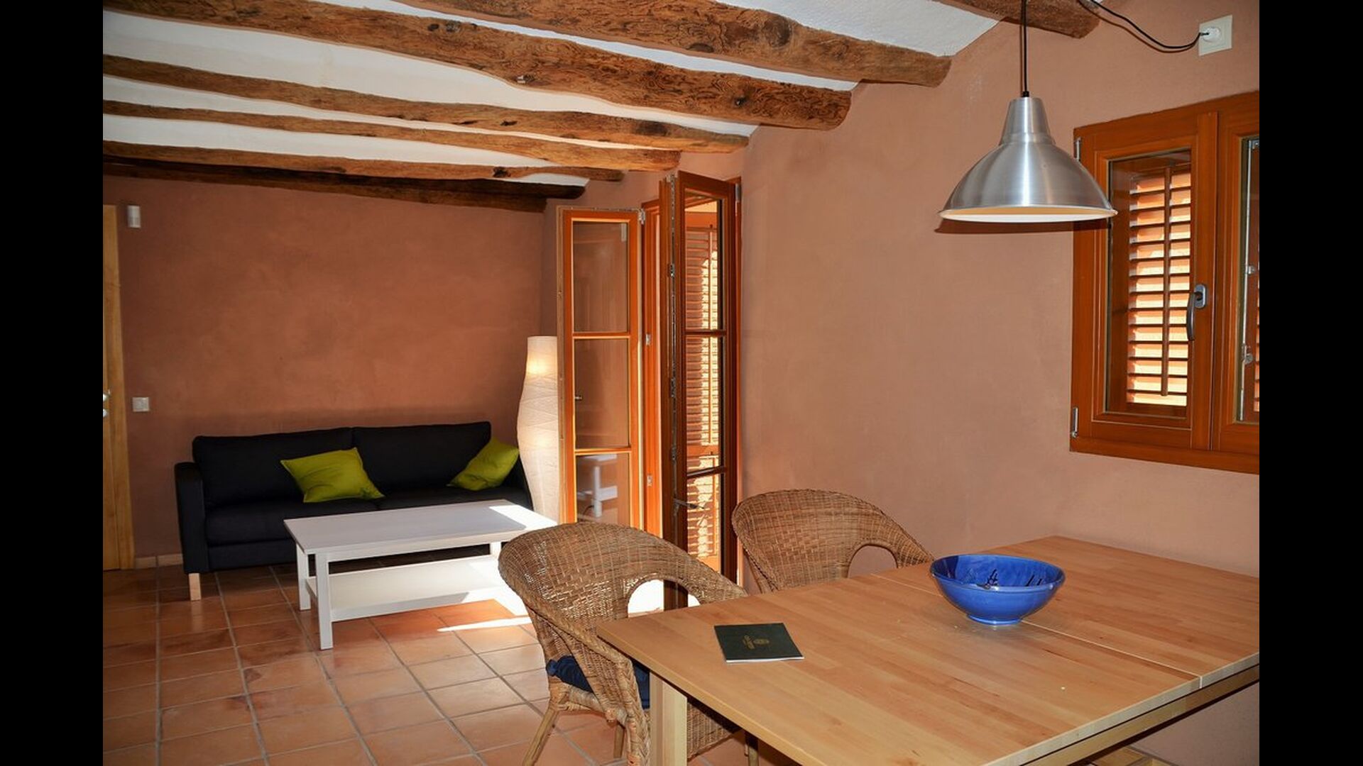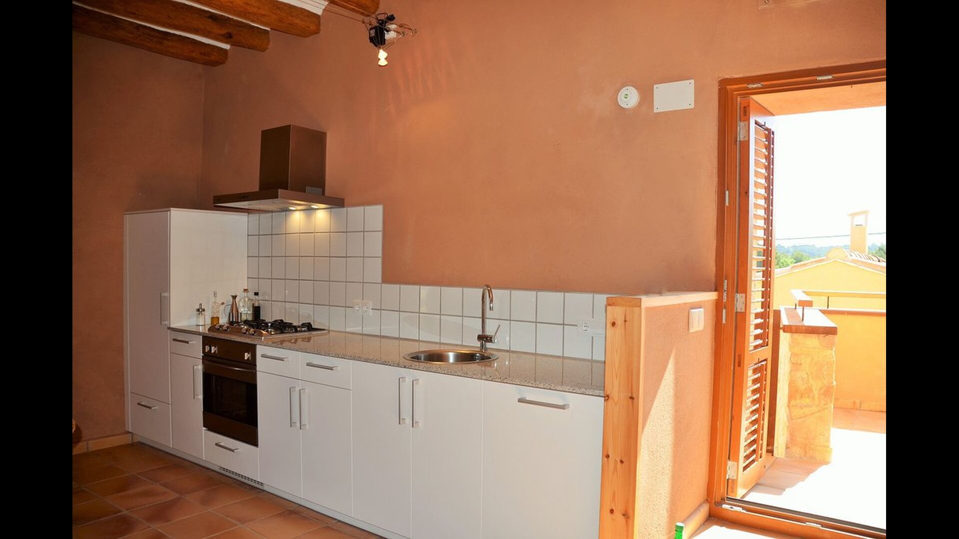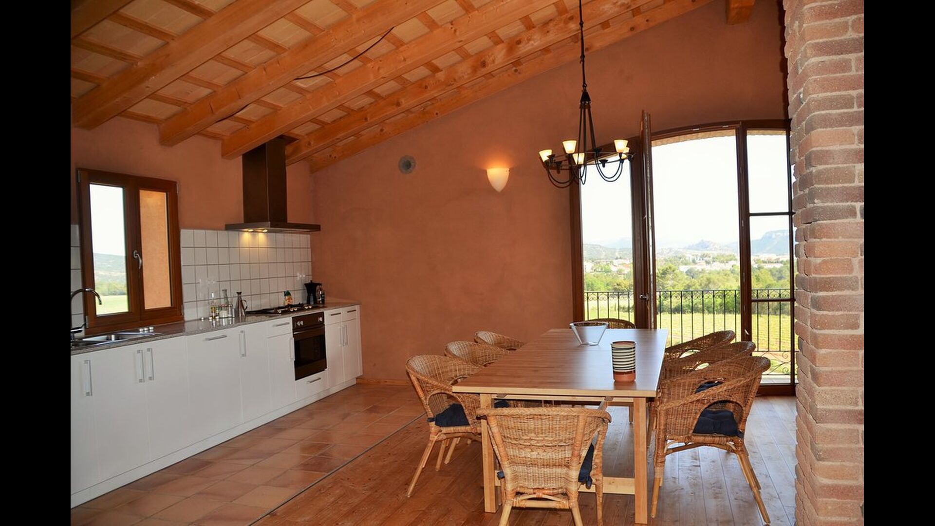 The natural centre for your holiday is the big common room for cooking and eating next to the swimming pool, with a big dining table, kitchen and direct access to the swimming pool and the outdoor terrace.
