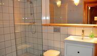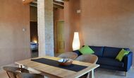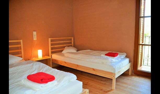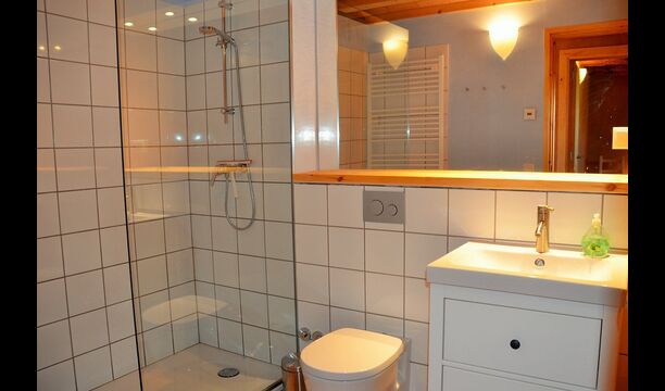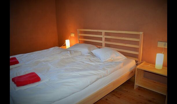 This apartment is on the first floor and is called "Romanie". There are two bedrooms: one of them has a double bed and the other one has two single beds, making the apartment perfect for a family. The rooms are designed in a Nordic style and each have a balcony. There is also a fully equipped and modern bathroom with shower. Furthermore, the apartment has a large common room with a kitchen, dining rooms, sitting area and access to a nice terrace on the first floor, where you have a nice view over the valley.