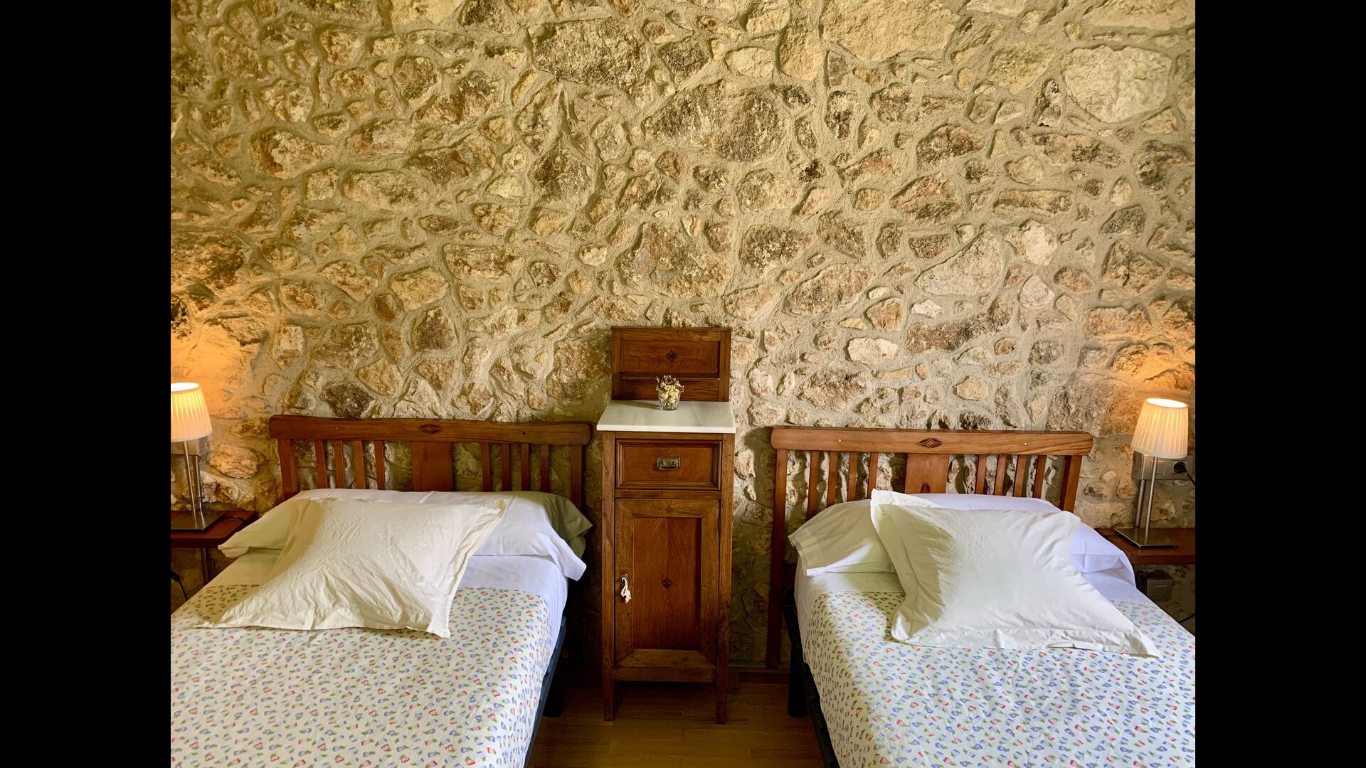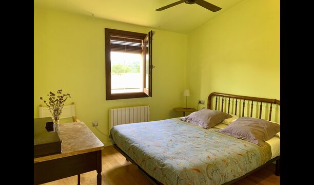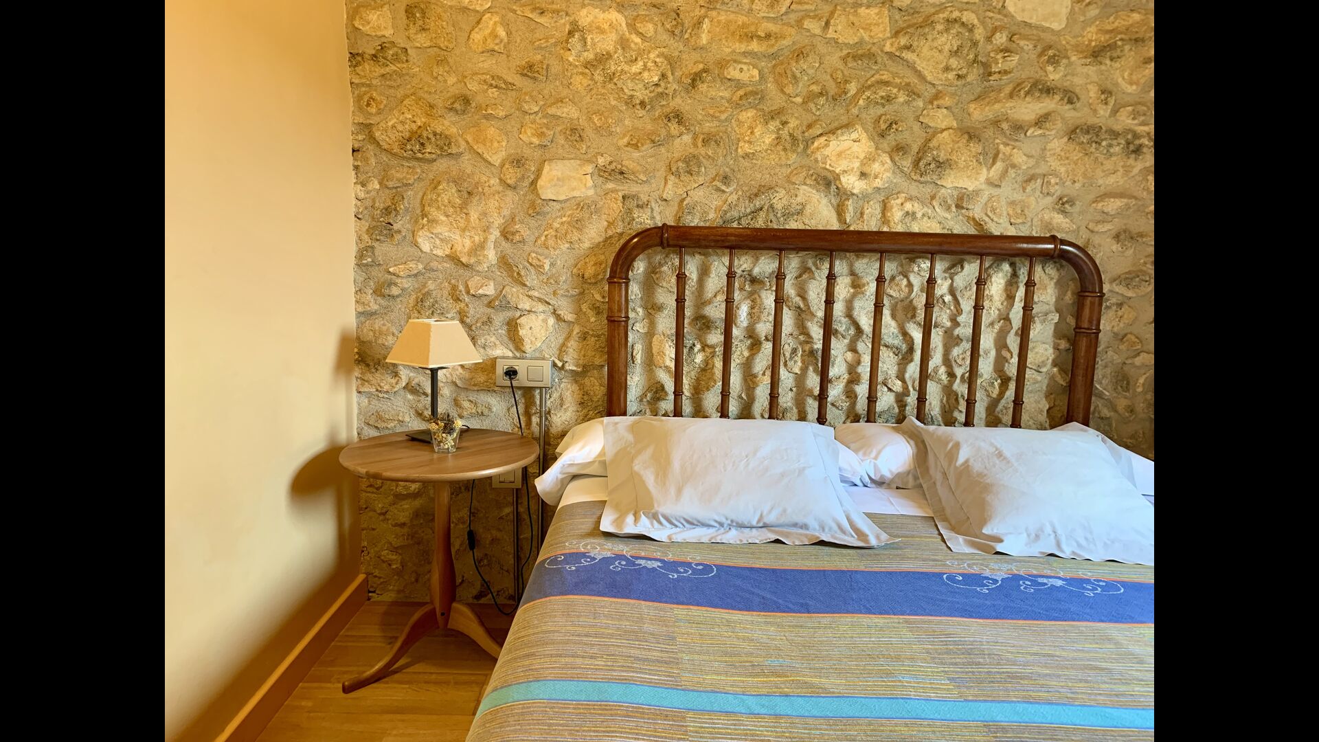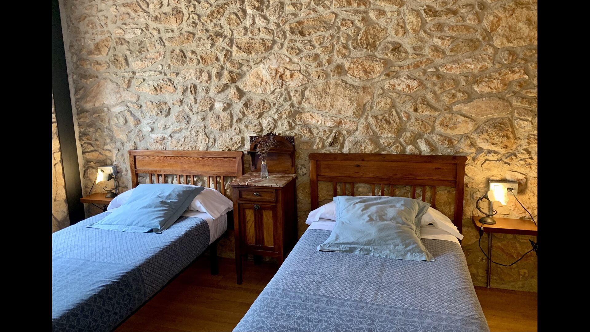 Dentro de Casa Hellas te recibe un ambiente acogedor, espacioso y funcional. La casa consta de dos plantas. La planta baja consta de un gran espacio común abierto que incluye una cocina grande y totalmente equipada, un comedor y una cómoda sala de estar. La casa tiene aire acondicionado para que siempre puedas refrescarte dentro. También hay un baño compartido en la planta baja, cerca de la terraza y la piscina. En el centro de la habitación hay una hermosa escalera abierta, que permite la entrada de luz desde ambos lados de la casa y desde los tragaluces en el techo. Arriba encontrará los cuatro dormitorios, todos con baño privado. Los dormitorios son de tamaño bastante similar, dos de ellos dan a la calle pequeña y los otros dos dan a la zona del jardín. Dos de los dormitorios tienen dos camas individuales, los otros dos camas dobles.