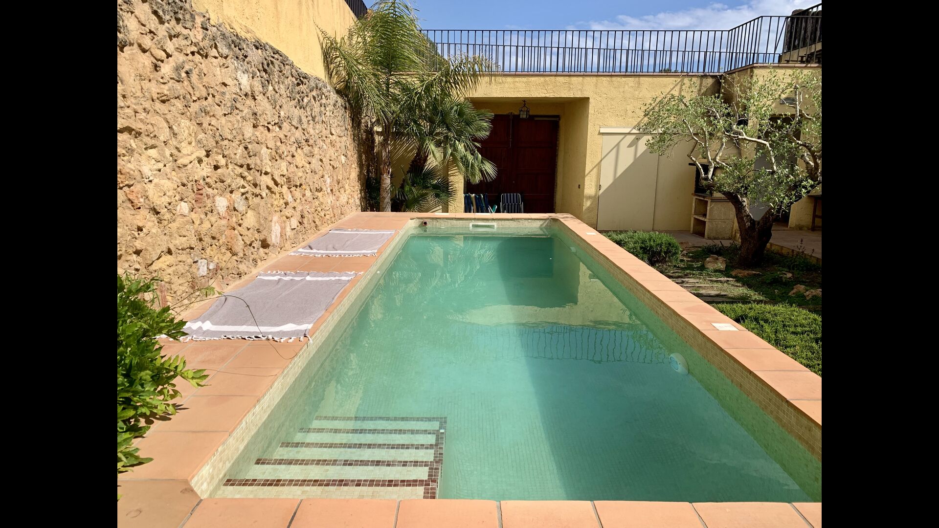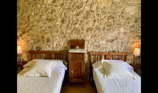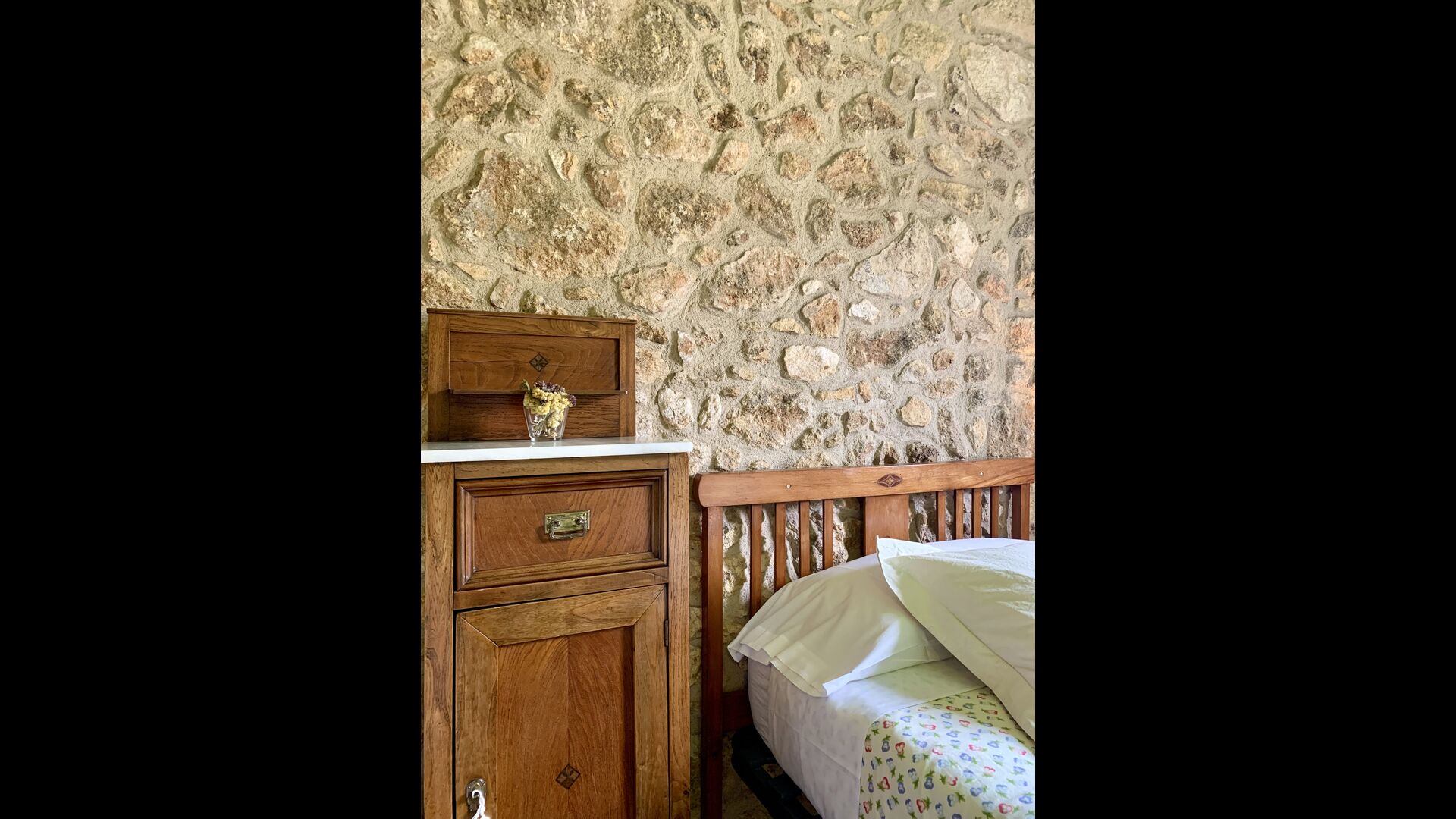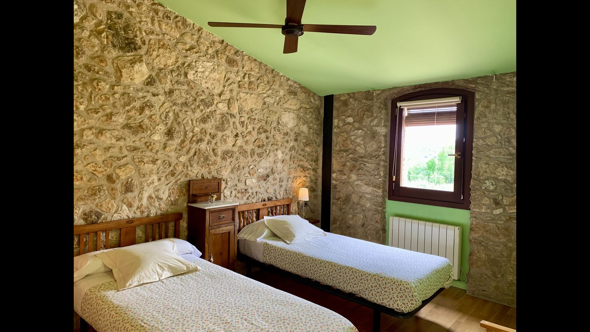 Dentro de Casa Hellas te recibe un ambiente acogedor, espacioso y funcional. La casa consta de dos plantas. La planta baja consta de un gran espacio común abierto que incluye una cocina grande y totalmente equipada, un comedor y una cómoda sala de estar. La casa tiene aire acondicionado para que siempre puedas refrescarte dentro. También hay un baño compartido en la planta baja, cerca de la terraza y la piscina. En el centro de la habitación hay una hermosa escalera abierta, que permite la entrada de luz desde ambos lados de la casa y desde los tragaluces en el techo. Arriba encontrará los cuatro dormitorios, todos con baño privado. Los dormitorios son de tamaño bastante similar, dos de ellos dan a la calle pequeña y los otros dos dan a la zona del jardín. Dos de los dormitorios tienen dos camas individuales, los otros dos camas dobles.