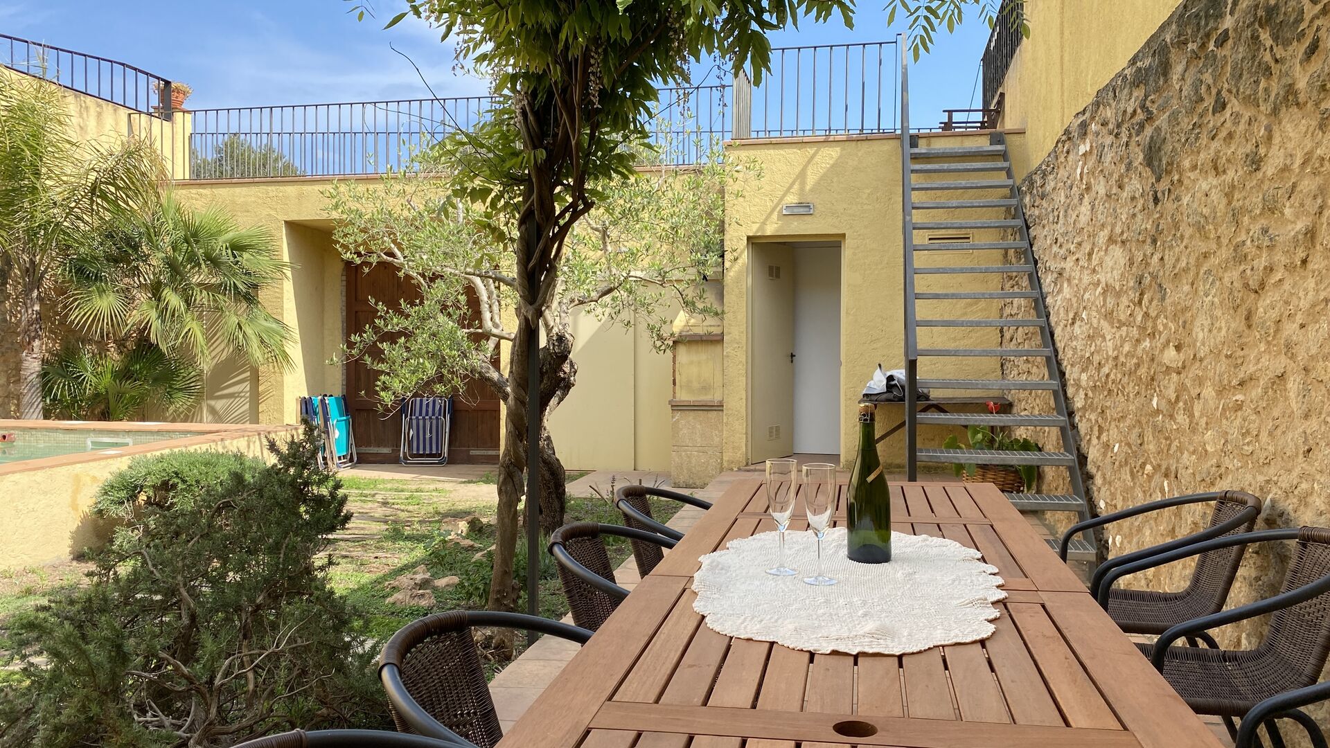 Casa Hellas dispone de una preciosa zona ajardinada con piscina donde poder refrescarse, jugar y nadar durante los cálidos días del verano catalán. También hay una zona de barbacoa y una hermosa terraza cubierta de enredaderas, perfecta para cenar al aire libre. Nos imaginamos pasar largas noches de verano aquí, abrazando la tranquilidad y disfrutando del tiempo con amigos o familiares.