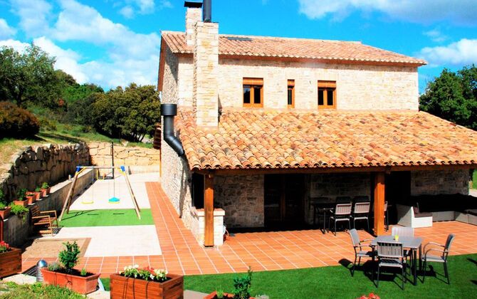 La casa de vacaciones Casa Joana Pou está completamente restaurada. La casa cuenta con 3 plantas, 5 dormitorios y 4 baños. Dos de las habitaciones comparten un baño en suite (con entrada desde ambas), ideal para los niños (una de ellas con 3 camas) y la habitación de los padres. Los otros 3 dormitorios tienen baño en suite. La planta superior es una pequeña sala para que los niños o adolescentes lean, escuchen música o simplemente dibujen y se relajen. El salón, la cocina y el comedor son amplios y cuentan con todo lo necesario. La casa cuenta con una pequeña sala independiente con espacio para conferencias o cenas grandes (capacidad para 20-30 personas). La casa cuenta con todo el equipo técnico necesario para conferencias y una cocina completamente nueva y moderna, diseñada para preparar comida a domicilio. En el exterior, hay mucho espacio y mucha privacidad, ya que no hay vecinos. La piscina está vallada, lo que resulta muy relajante si viajas con niños pequeños. La distancia a Barcelona es de solo 90 km, algo que cuesta creer una vez que estás allí, ya que las montañas circundantes (Prepirineos) te alejan del estrés de la vida en una metrópoli europea. Esta es realmente una base brillante para unas vacaciones.