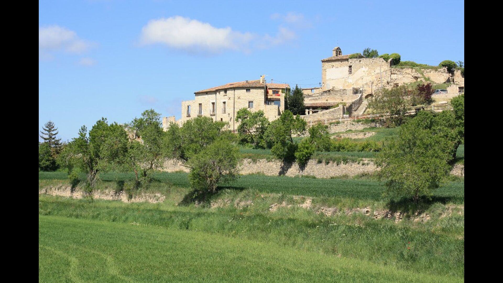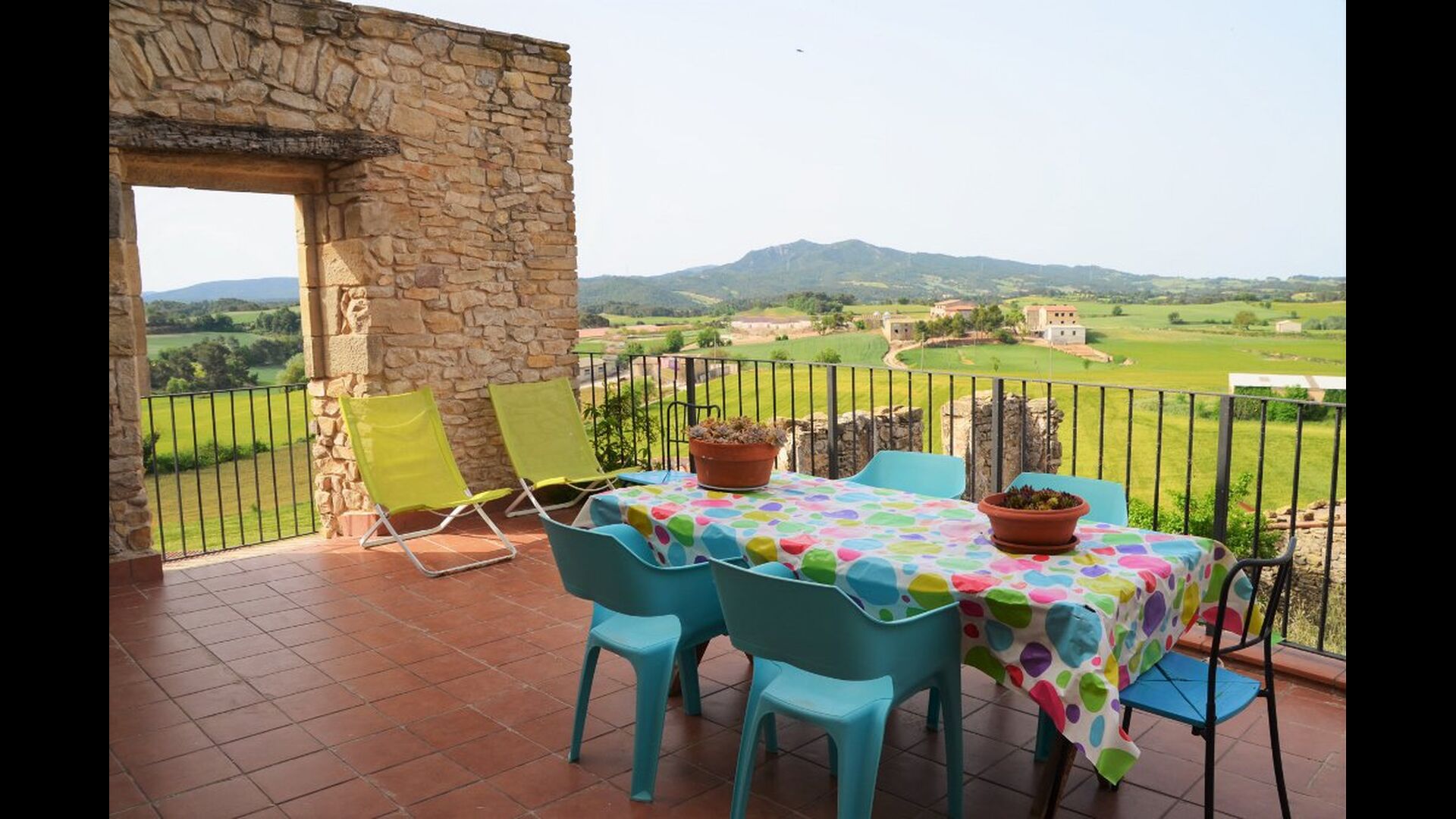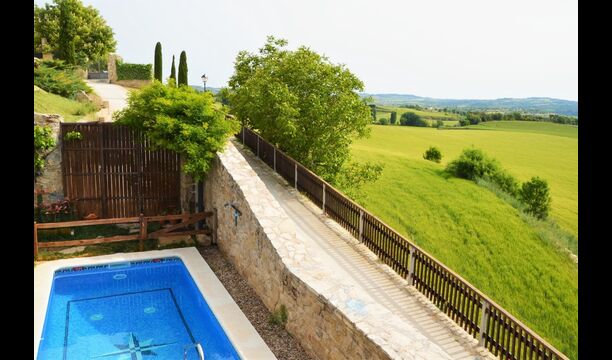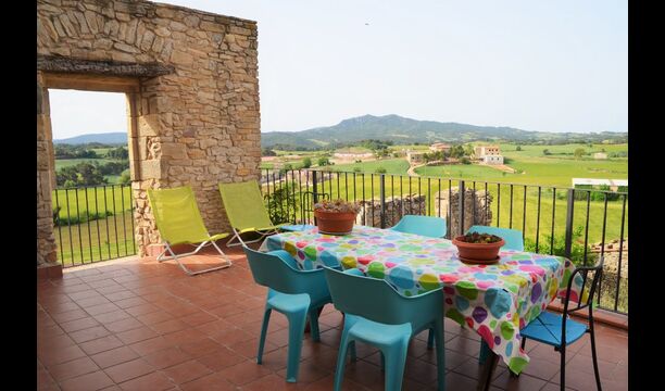 Nuestra casa La casa está situada en una colina en MONS, entre campos de cereales y con la serra de Queralt y del Montclar en el fondo. Es un espacio tranquilo y silencioso y aunque en verano hace calor, la subida de la ’marinada’, y el clima mas bien seco, hace que se pueda estar muy a gusto. Desde casa vemos desde Aguiló a Santa Coloma de Queralt, el antiguo Castell dels Queralt del que se conservan sus ruinas y girando a ponente vemos S. Miquel y el pueblo de Les Piles. En ese espacio de ponente podemos admirar los hermosos cielos que se dan en la Conca.