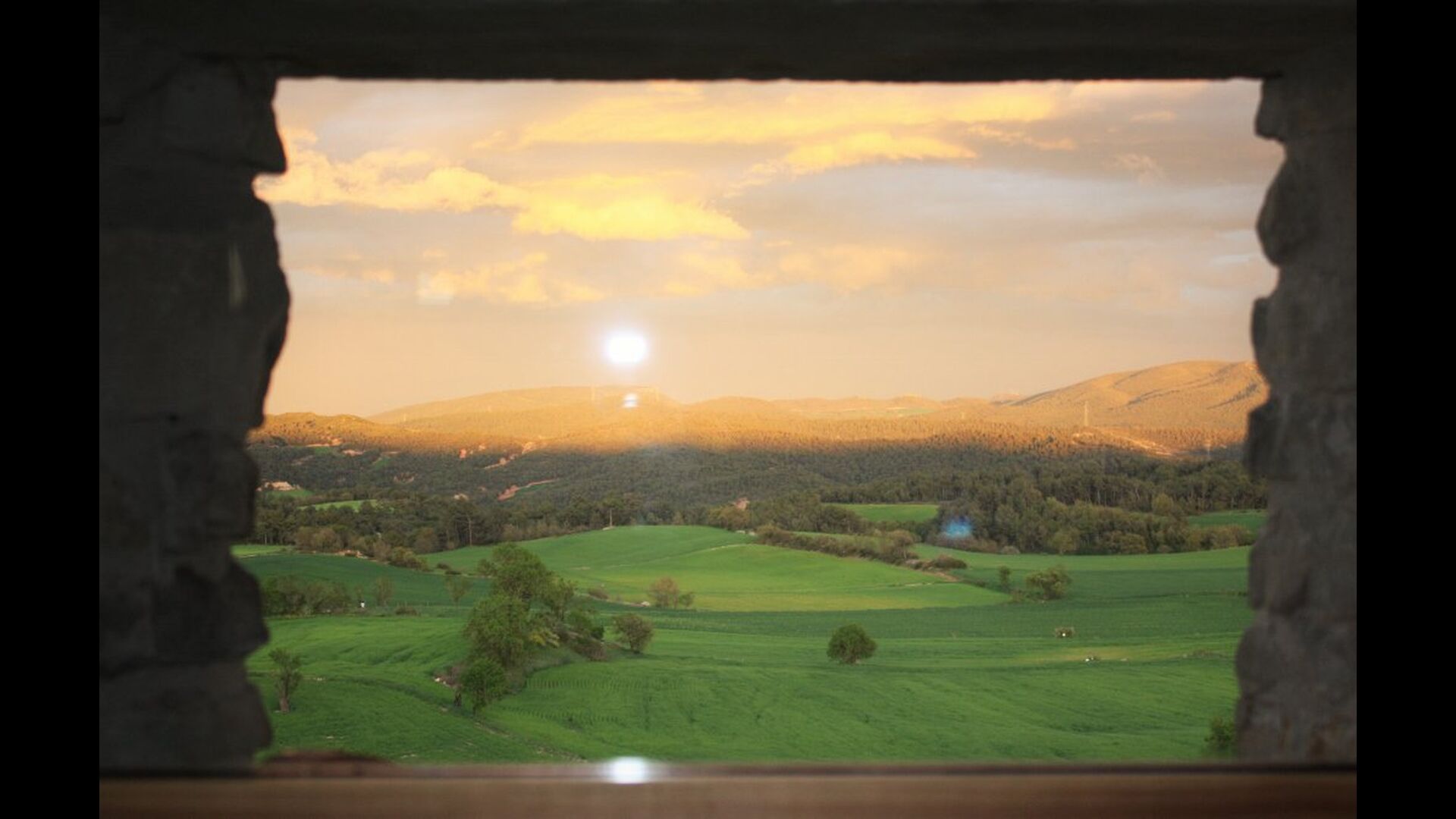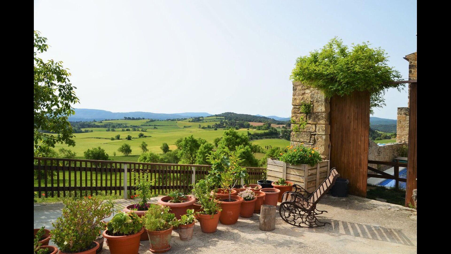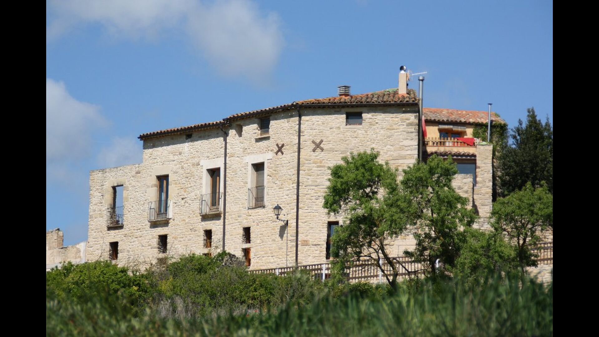 Nuestra casa La casa está situada en una colina en MONS, entre campos de cereales y con la serra de Queralt y del Montclar en el fondo. Es un espacio tranquilo y silencioso y aunque en verano hace calor, la subida de la ’marinada’, y el clima mas bien seco, hace que se pueda estar muy a gusto. Desde casa vemos desde Aguiló a Santa Coloma de Queralt, el antiguo Castell dels Queralt del que se conservan sus ruinas y girando a ponente vemos S. Miquel y el pueblo de Les Piles. En ese espacio de ponente podemos admirar los hermosos cielos que se dan en la Conca.