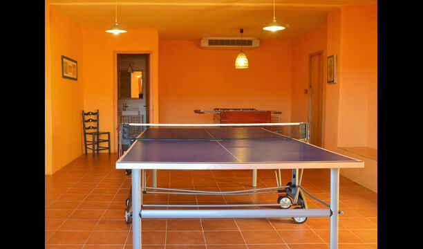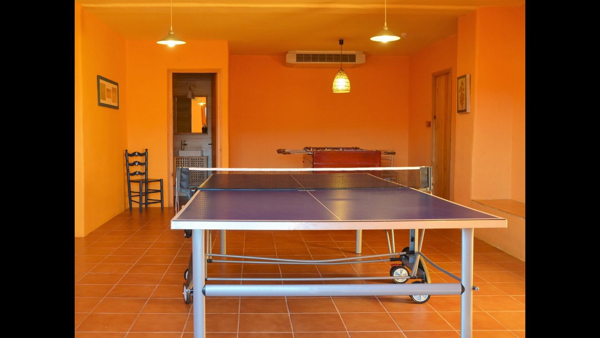 El apartamento tiene una sala de actividades con ping-pong, futbolín y juegos.