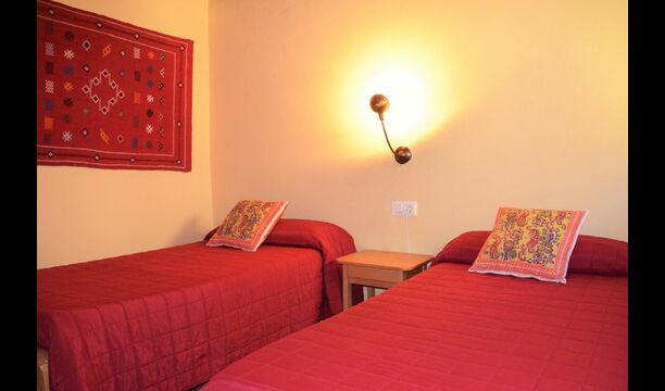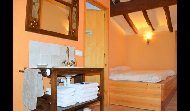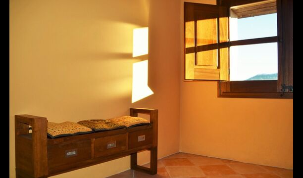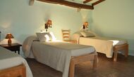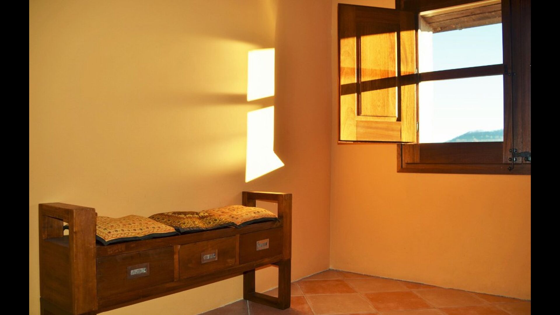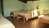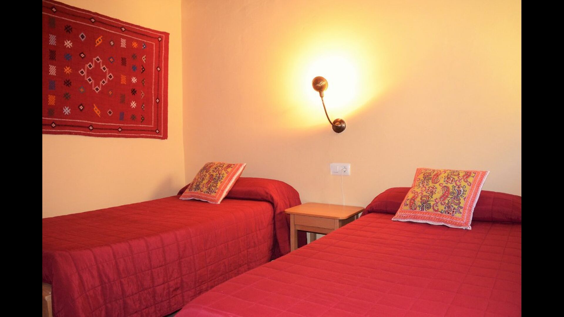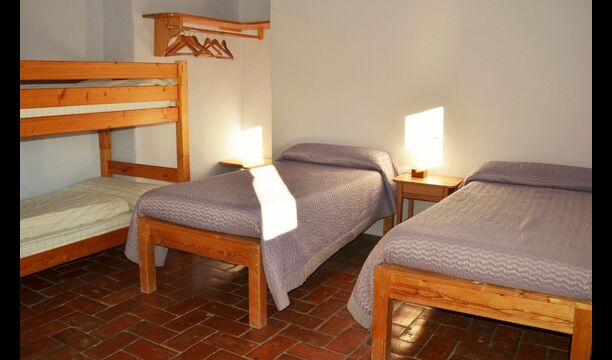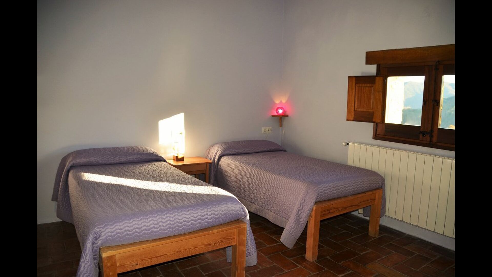 En el primer piso, se encuentran las habitaciones. En primer lugar, hay un dormitorio con dos camas individuales (que se pueden mover juntas) y una litera. A continuación, hay una habitación con cuatro camas individuales, que es perfecta para los niños en un grupo de vacaciones, y finalmente una habitación doble (con posibilidad de camas adicionales) con baño privado y acceso directo a una terraza. Las dos habitaciones dobles restantes están conectadas y ubicadas en una pequeña casa separada en el jardín. Aquí hay, por supuesto, también un baño con ducha.