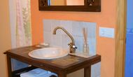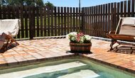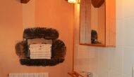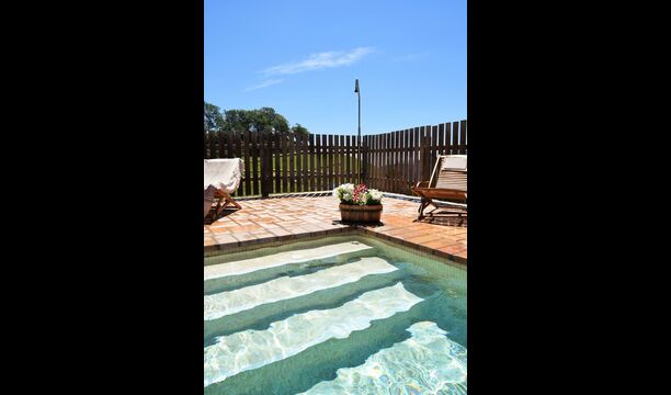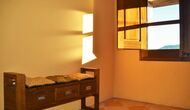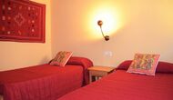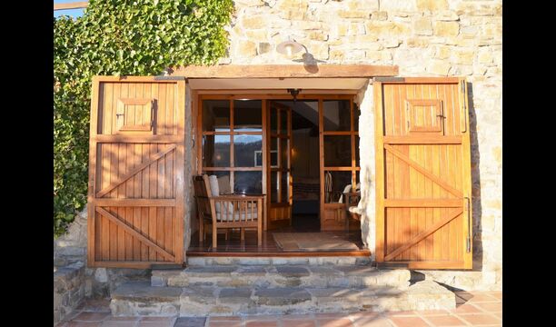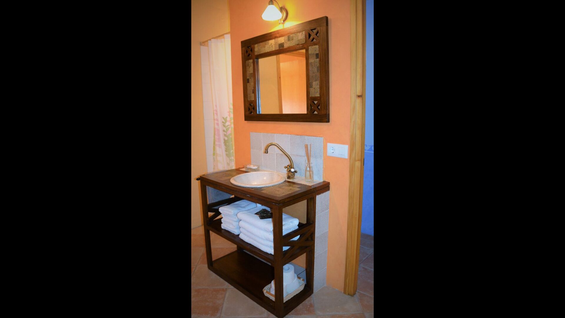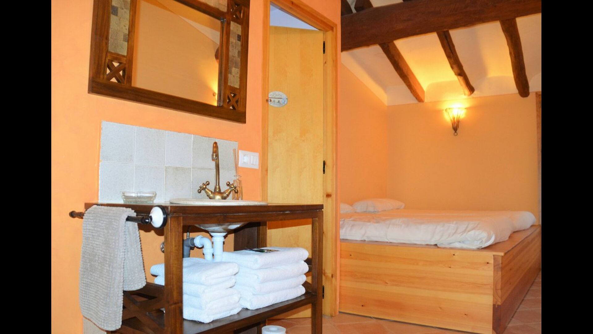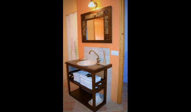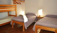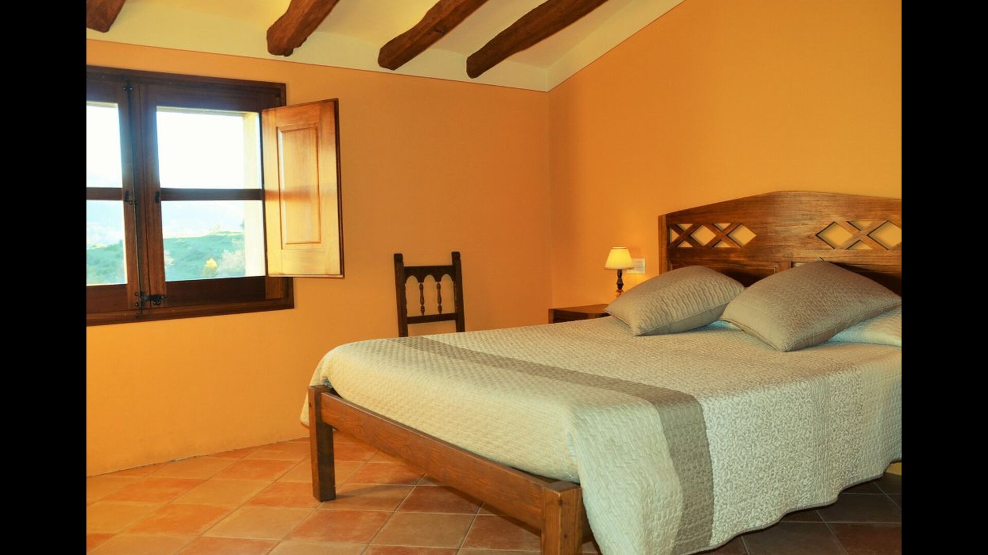 En el primer piso, se encuentran las habitaciones. En primer lugar, hay un dormitorio con dos camas individuales (que se pueden mover juntas) y una litera. A continuación, hay una habitación con cuatro camas individuales, que es perfecta para los niños en un grupo de vacaciones, y finalmente una habitación doble (con posibilidad de camas adicionales) con baño privado y acceso directo a una terraza. Las dos habitaciones dobles restantes están conectadas y ubicadas en una pequeña casa separada en el jardín. Aquí hay, por supuesto, también un baño con ducha.