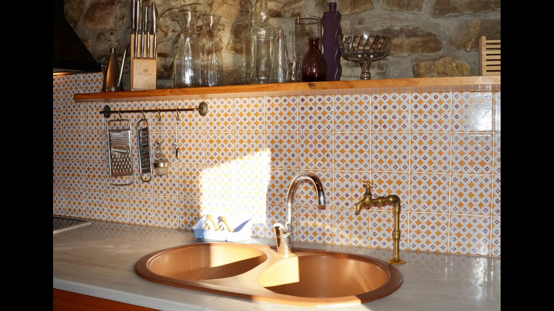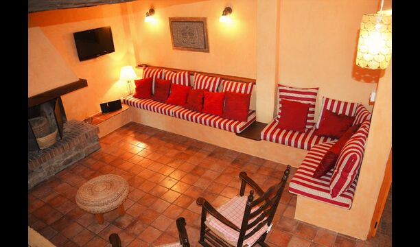 La planta baja de la casa de vacaciones consta de cocina, comedor y zona de sofás. La cocina es agradable y está bien equipada con todas las instalaciones y herramientas necesarias. Además, hay acceso directo a un comedor exterior cubierto, por lo que es fácil cocinar la comida, sacarla y disfrutarla con el sol de la tarde en el fondo. Es una cocina abierta con asientos en la misma habitación. El área del sofá rodea una chimenea grande y acogedora, y junto a esto, hay un comedor para disfrutar de las comidas en el interior. También hay un baño y una lavadora en la planta baja.