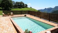 La ubicación de esta casa de vacaciones es única. Debes conducir 20-25 minutos para llegar a la casa, lo que significa que vives en paz en el hermoso paisaje alpino. Las laderas circundantes están cubiertas de hierba y árboles, y como la casa de vacaciones se encuentra en la cima de una colina, hay una vista espectacular sobre el valle. Puede disfrutar de esto desde la gran terraza, donde hay dos áreas cubiertas. Uno se encuentra con impresionantes vistas de la pendiente, mientras que el otro está en el jardín con mesa de comedor y parrilla de barbacoa. También hay una piscina, con maravillosas vistas también. ¡Esta combinación no es algo de lo que todos los hogares puedan presumir! La piscina está vallada por razones de seguridad.