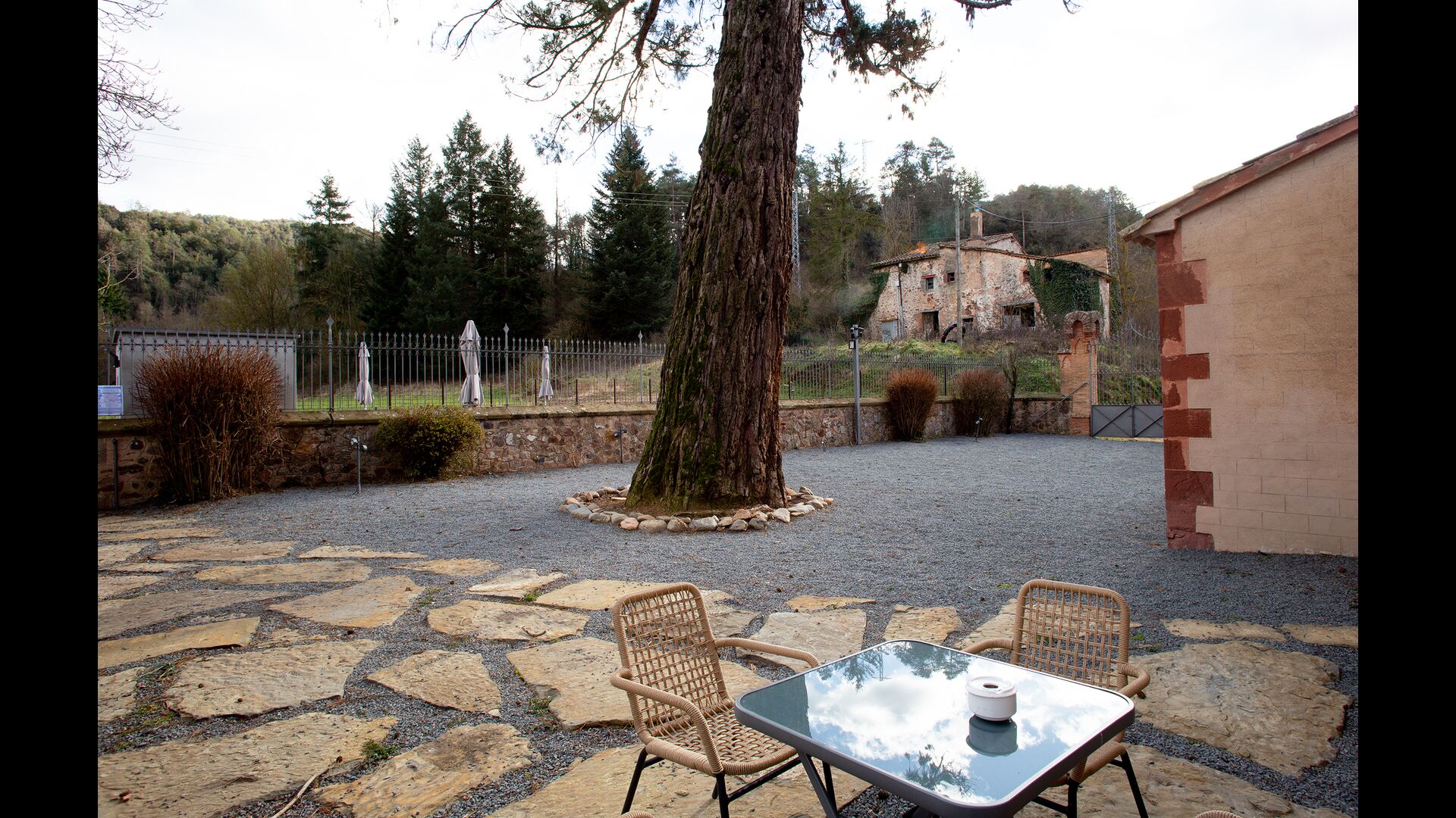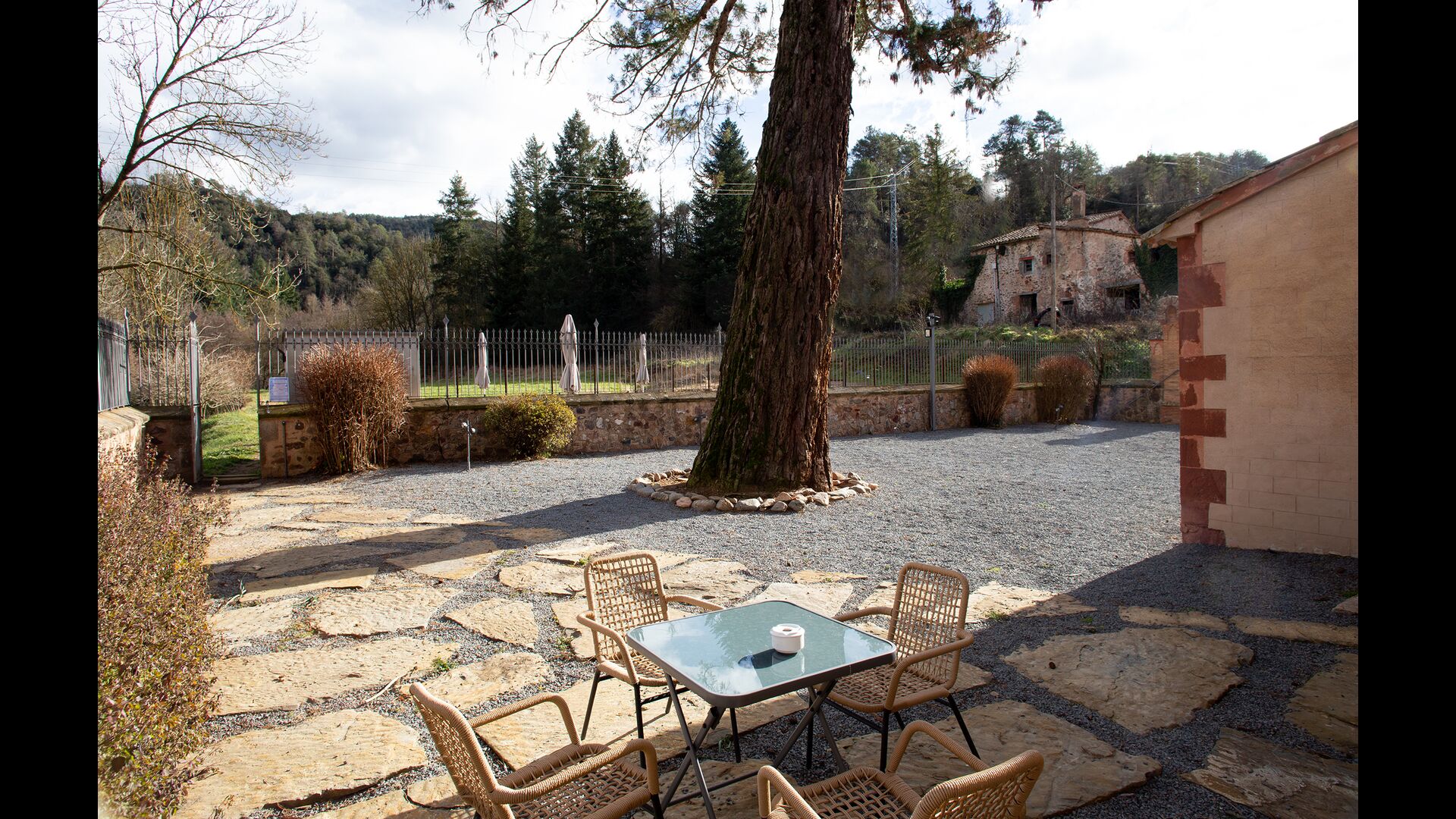 Casa Fábregas’ El jardín es un área espaciosa y hermosa, adecuada para muchas actividades diferentes (actividades de coaching, formación de equipos, otras dinámicas de empresa, etc.). Subrayar la gracia natural del jardín es la gran secuoya del jardín, cuya elegancia centenaria se manifiesta en todas las épocas del año.