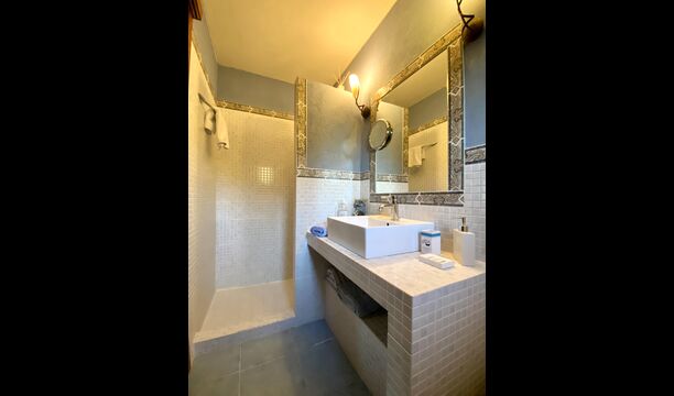 La villa está decorada con mucho amor y tiene 5 habitaciones, todas decoradas con materiales extraordinarios y realmente han hecho un esfuerzo adicional para hacer que las habitaciones sean acogedoras. Las 5 habitaciones tienen TV y, como hay 5 baños, cada habitación tiene la suya. Una de las habitaciones es una suite muy bonita con un área de salón correspondiente más pequeña. Cada habitación está decorada en un color único, lo que hace que cada habitación sea muy personal y cada habitación tiene su propio encanto.