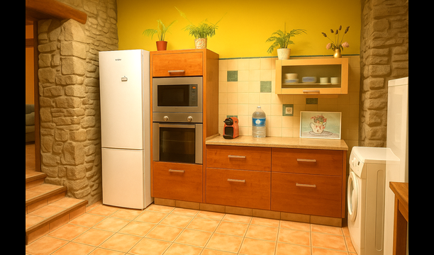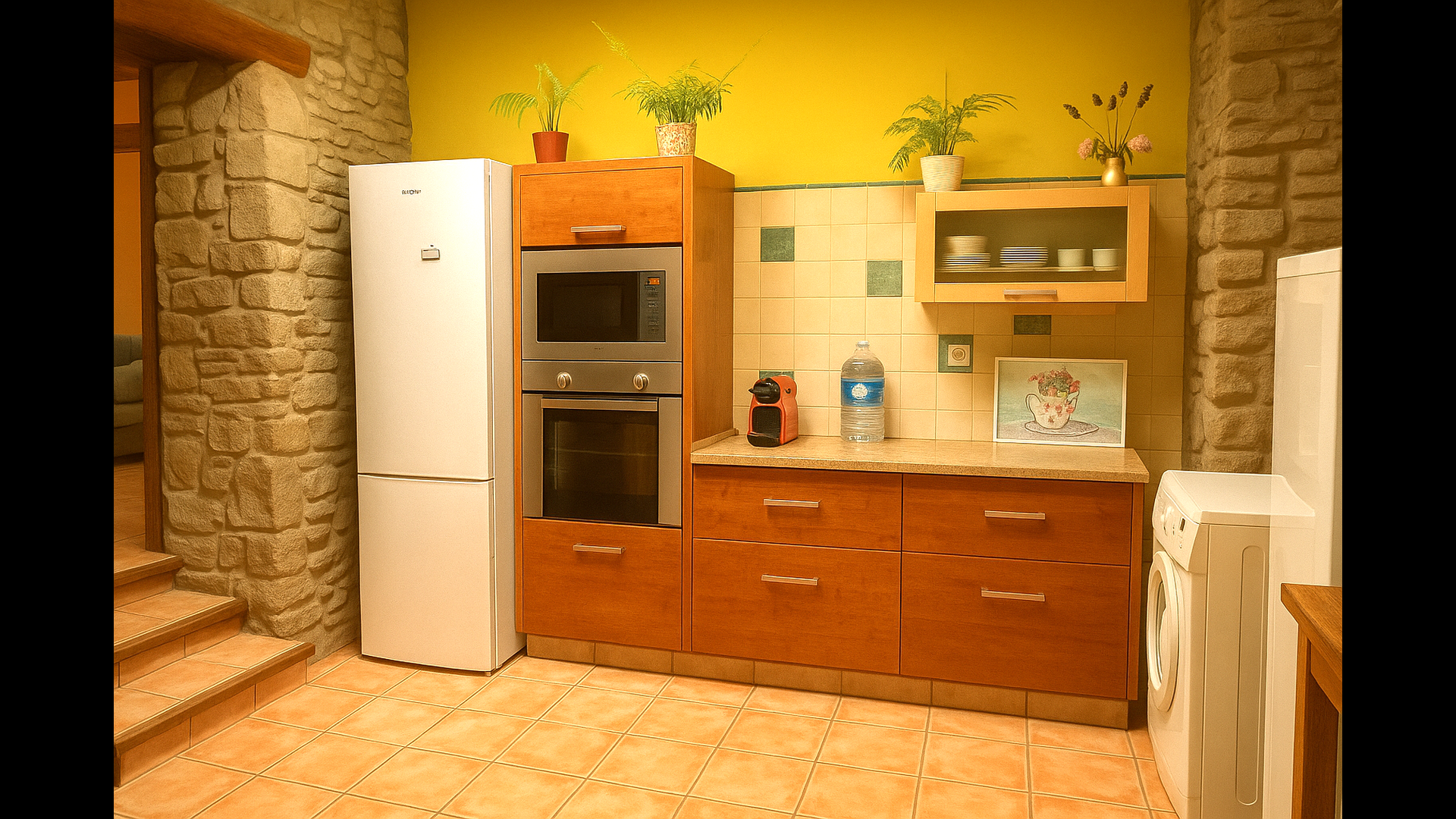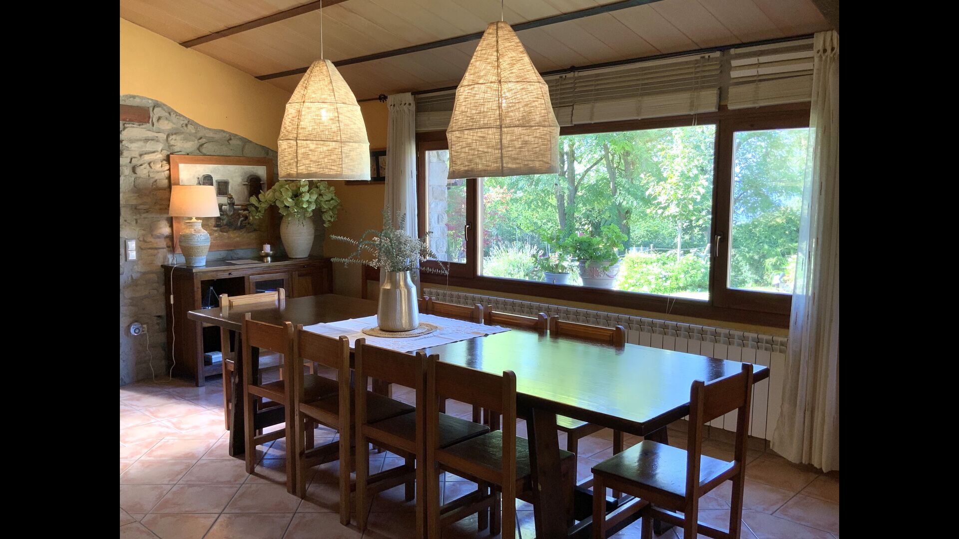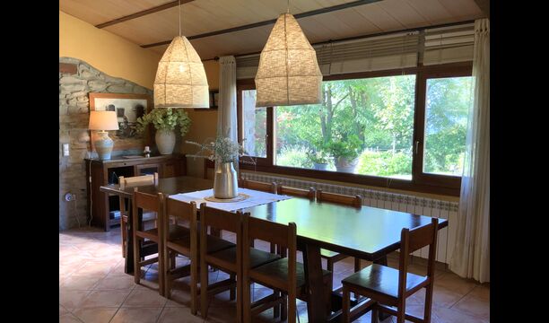 La hermosa sala de estar con sofás y chimenea es una extensión del área de comedor de la casa que está decorada con la buena mesa de comedor tradicional española. La cocina es grande y tiene mucho espacio para el gran grupo de vacaciones. La cocina cuenta con todas las comodidades modernas. Estos incluyen refrigerador, congelador, buen horno grande, microondas, lavavajillas, espresso y cocina a gas. La casa cuenta con WI-FI rápido, DVD y sistema de música.