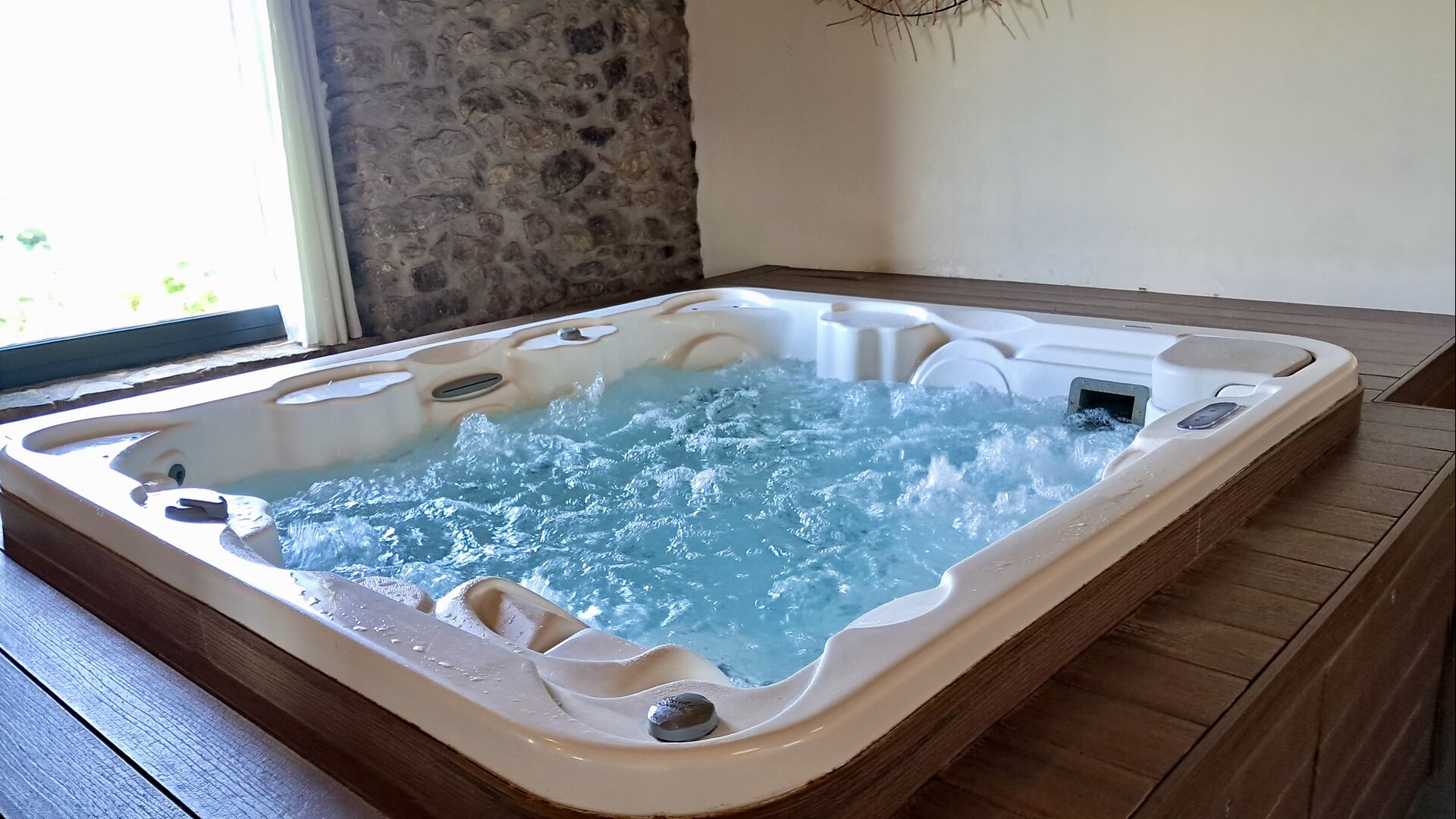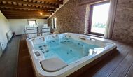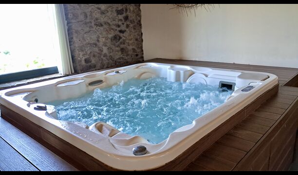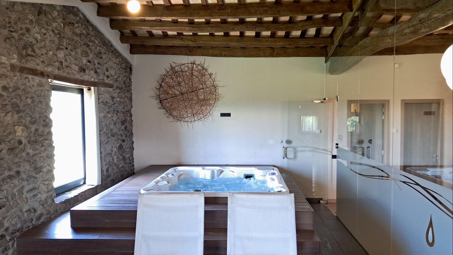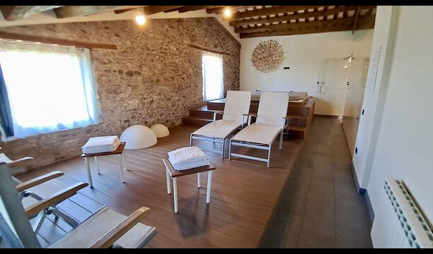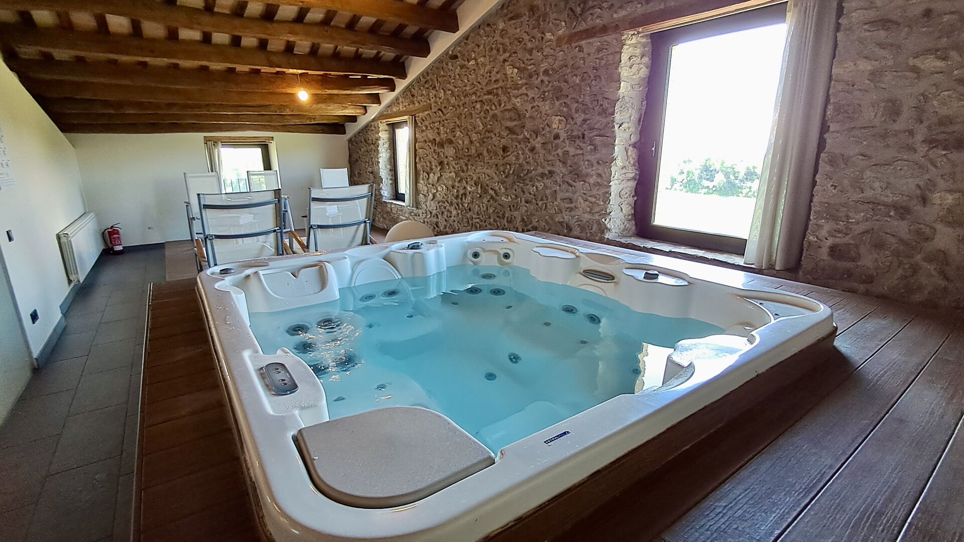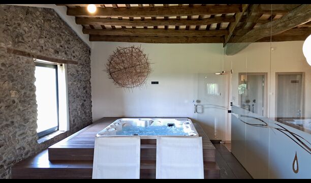 Zona de spa con jacuzzi y tumbonas.