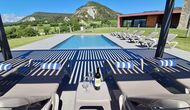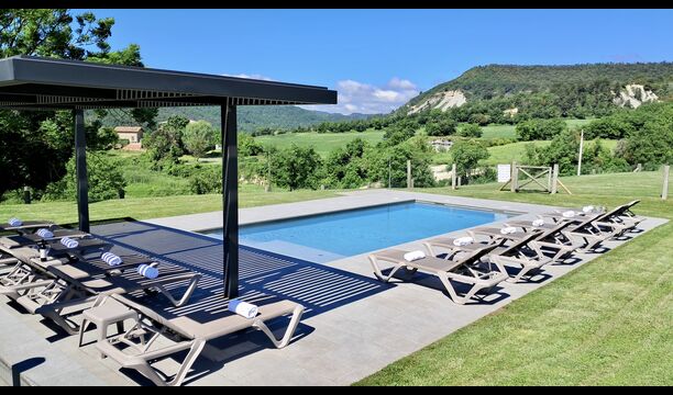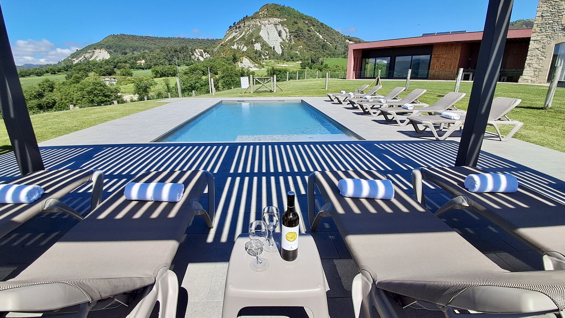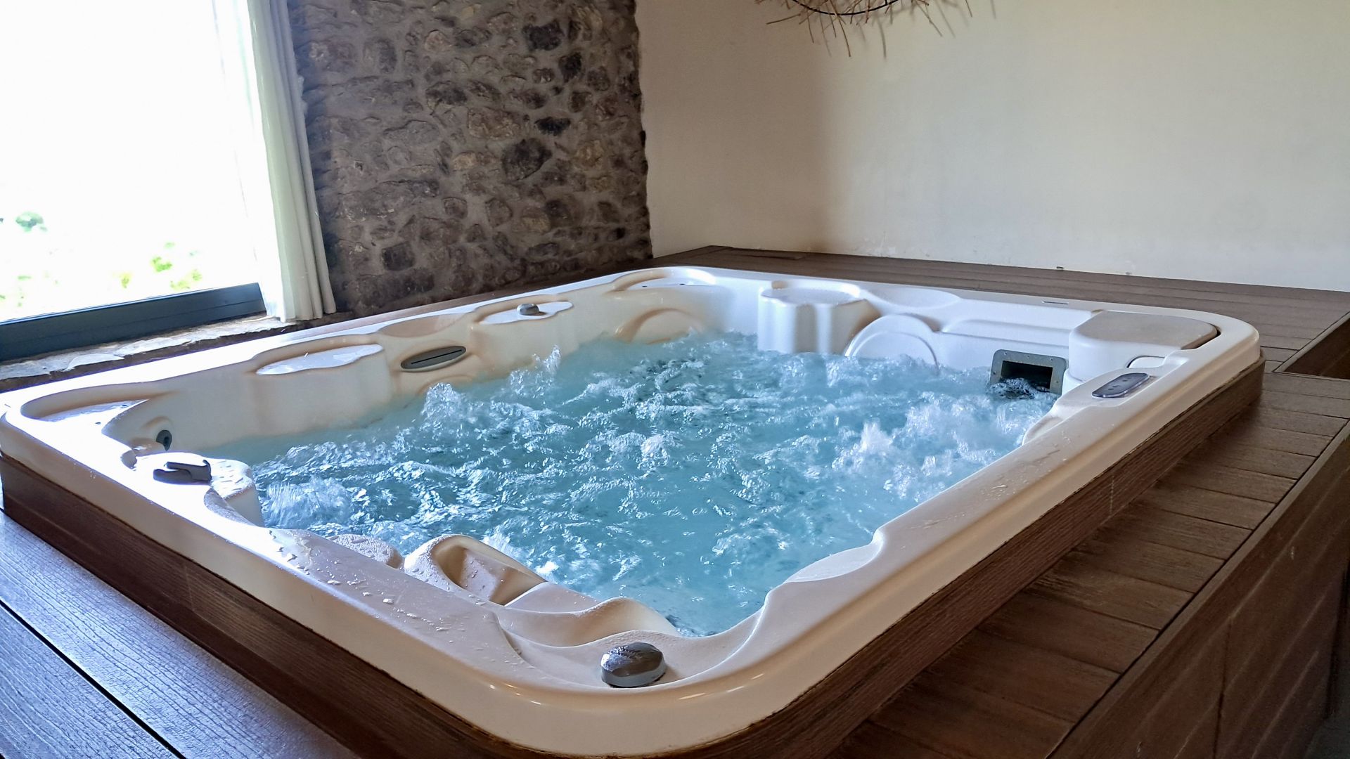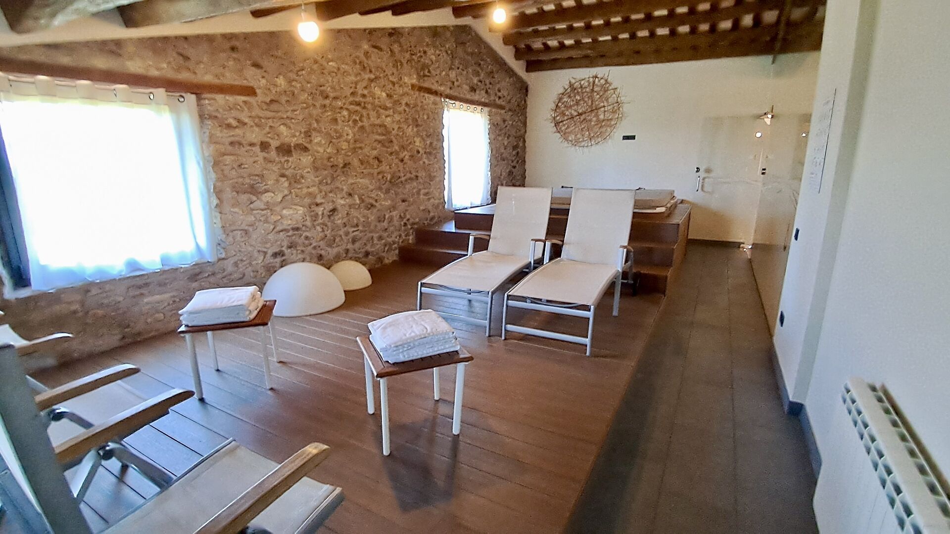 Zona de spa con jacuzzi y tumbonas.