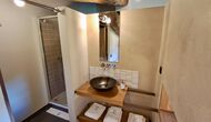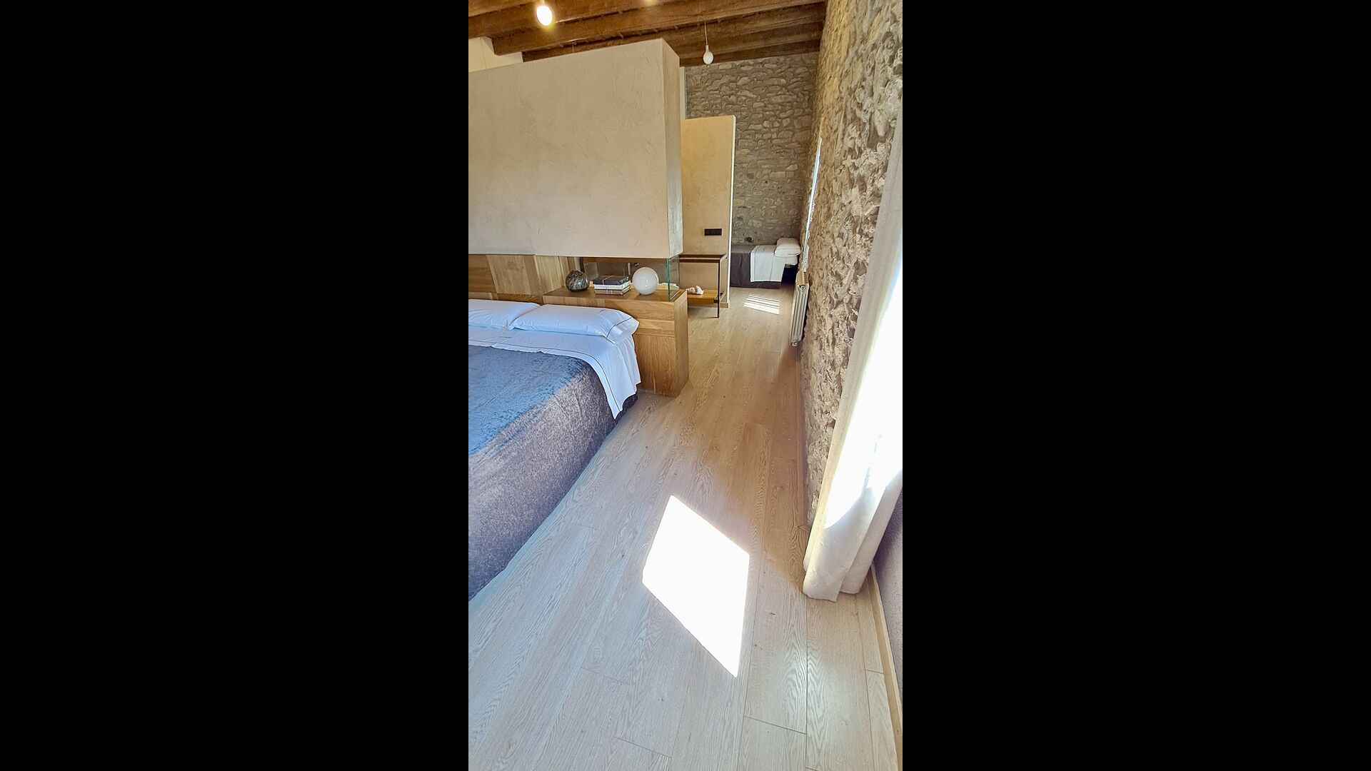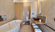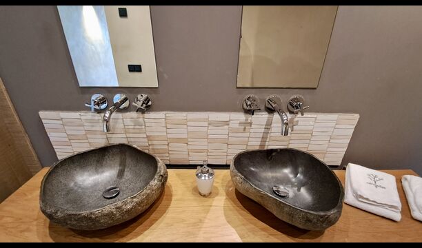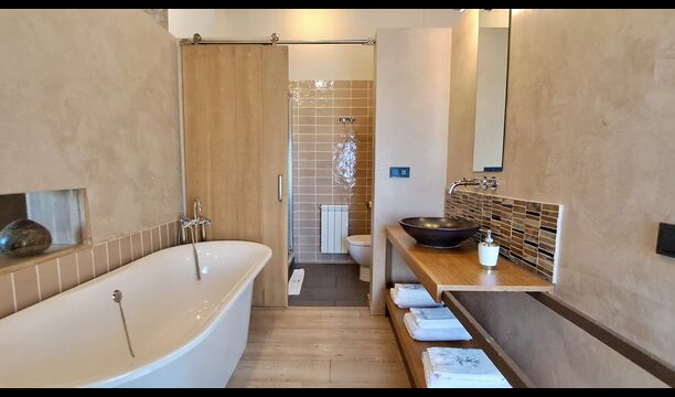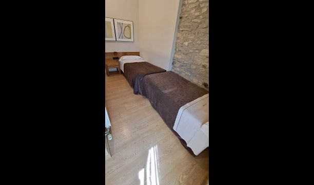 En el tercer y último piso hay otros 4 dormitorios, como todos los demás, hay un baño para cada uno. Además, encontrará una zona de spa extremadamente deliciosa con un jacuzzi y tumbonas. Esta es la zona perfecta para relajarse. De las 9 habitaciones hay 4 habitaciones dobles (con camas dobles), 3 habitaciones triples (con camas individuales) y 2 habitaciones muy grandes con 4 camas individuales, lo que es perfecto para los niños o adolescentes.