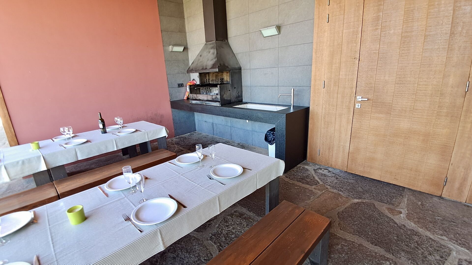 Terraza cubierta con barbacoa