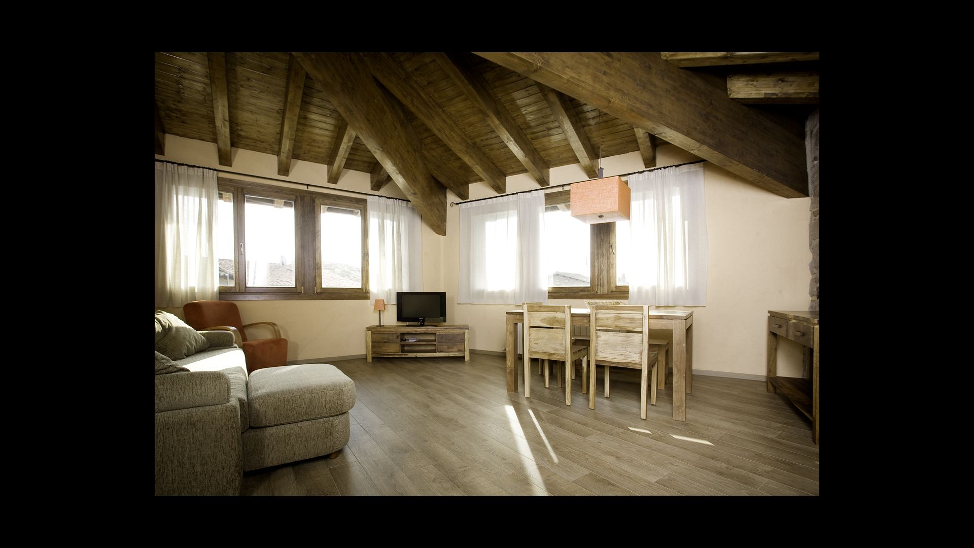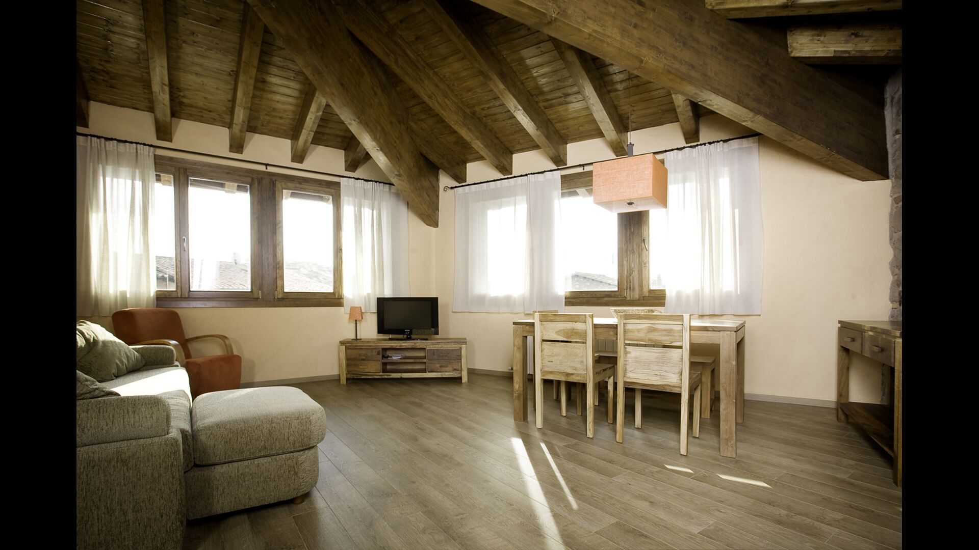 Llucanes es el apartamento gemelo del Apartamento Margarita, por lo que tienen más o menos la misma distribución. Este apartamento del segundo piso es una base acogedora con vista a la calle del pueblo.