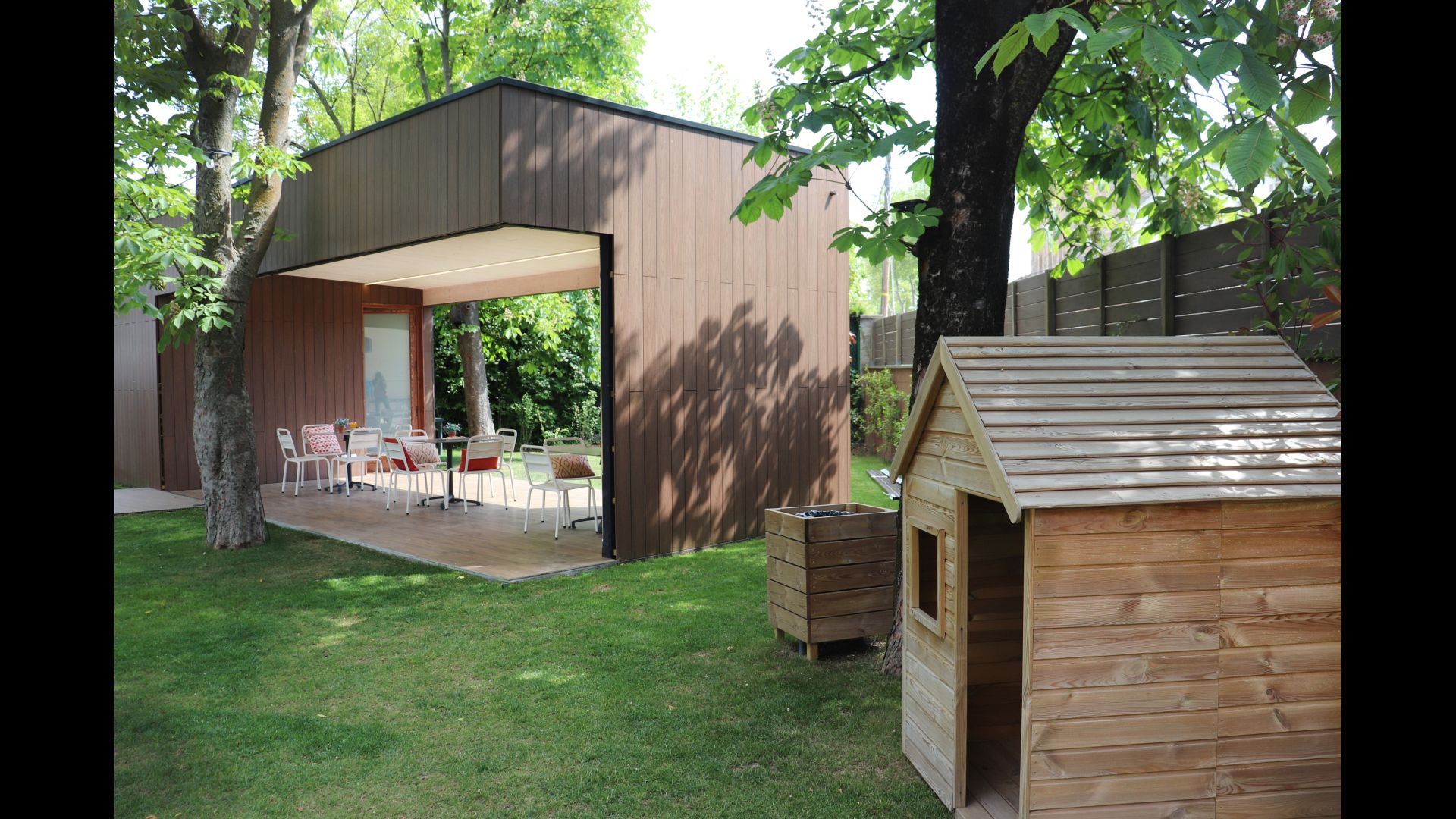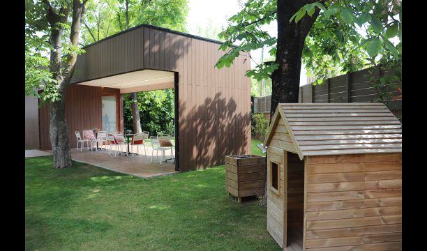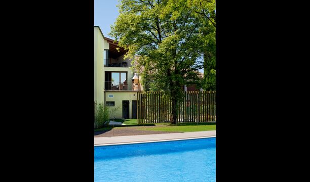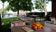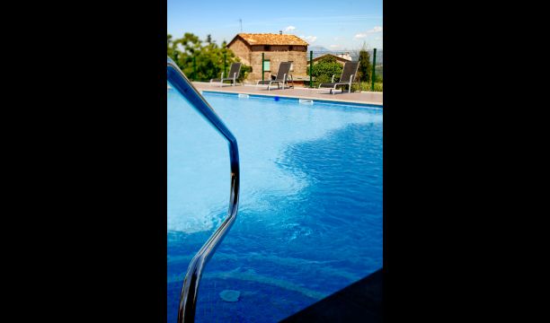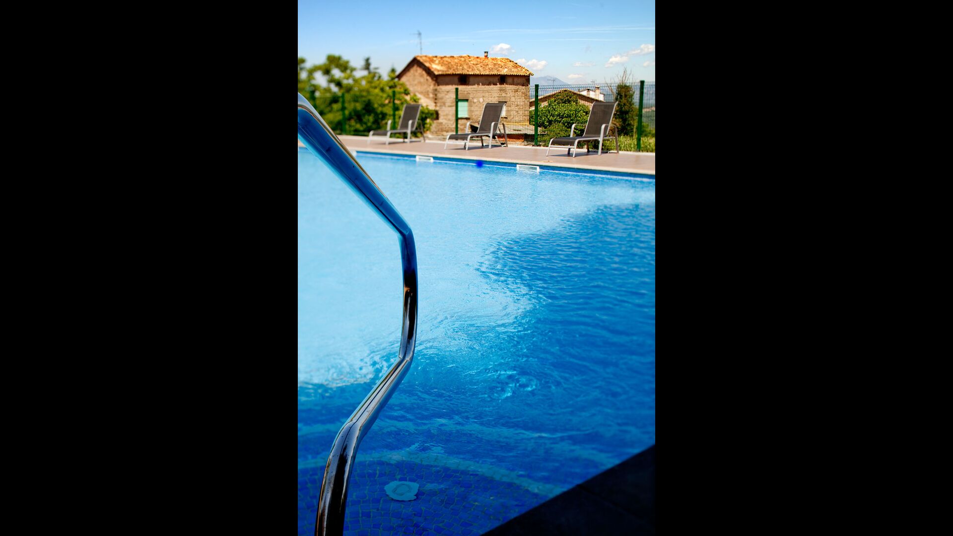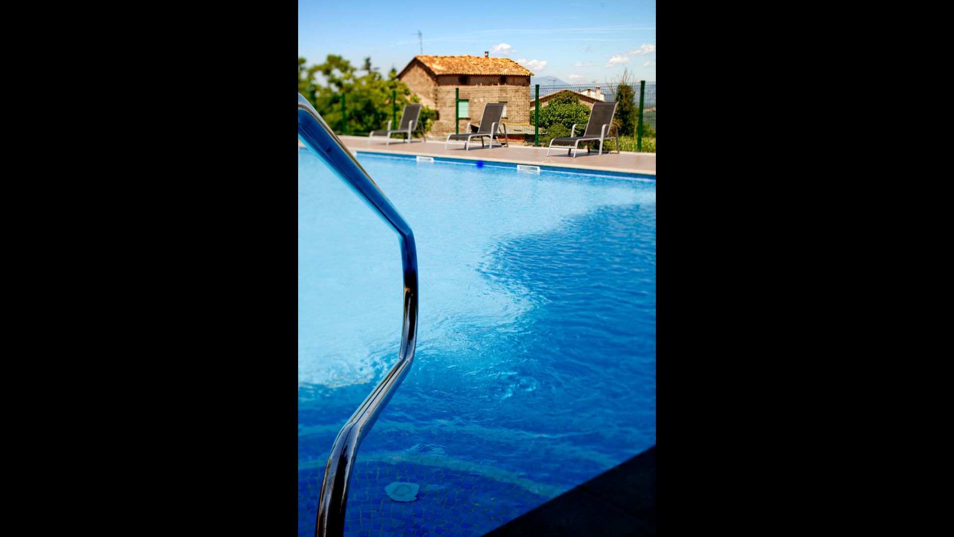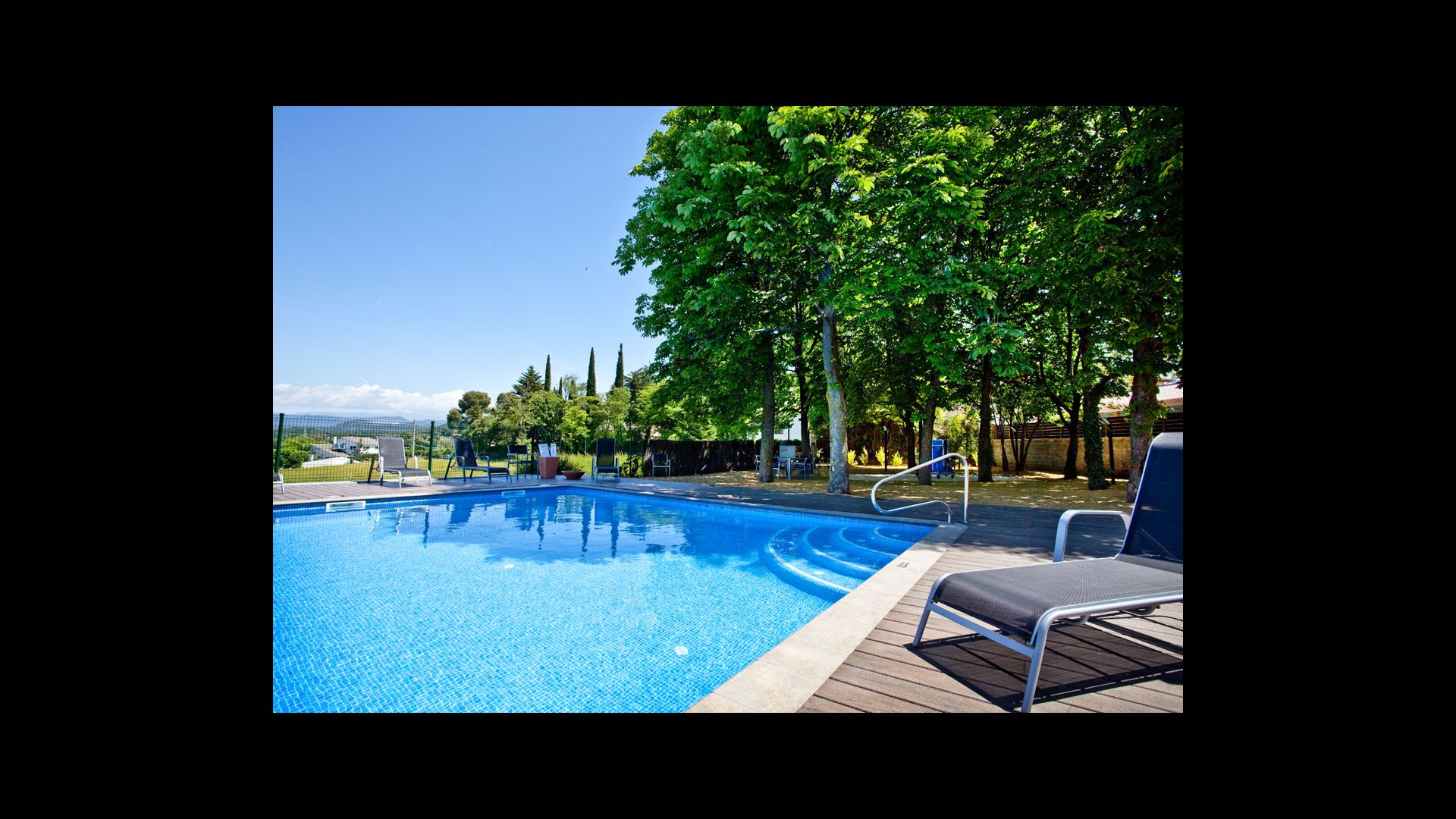 Además, la parte trasera de la casa se convirtió en la fantástica zona de piscina con una gran piscina (17 x 5 metros), cafetería y salón compartido. mesas, aseos y vestuarios, y rincones con sombra y lugares soleados. La vista es impresionante, directamente a los Pirineos. Al reservar todos los apartamentos, esta área, por supuesto, será sólo para su uso privado.
