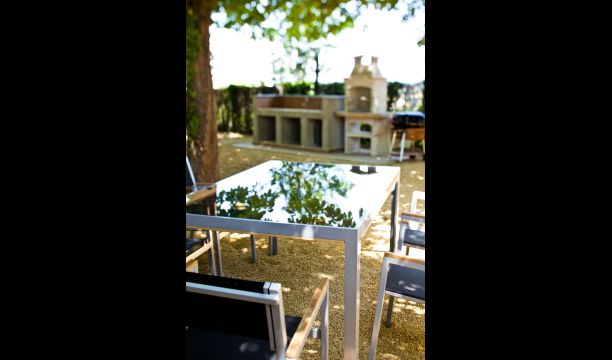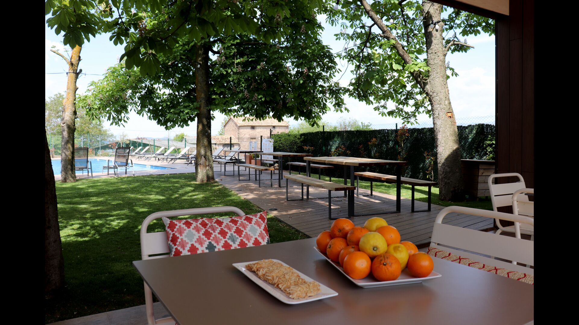 Cada apartamento tiene su propia cocina y comedor, etc. (puede ver más detalles siguiendo los enlaces a continuación). Para grupos grandes, sin embargo, Casas Estamener ahora ofrece "La Coberta". Se trata de una terraza cubierta en el jardín, que incluye espacio de terraza para comer todos juntos y una cocina totalmente equipada, para que podáis cocinar allí. mientras los niños juegan en el jardín o se bañan.