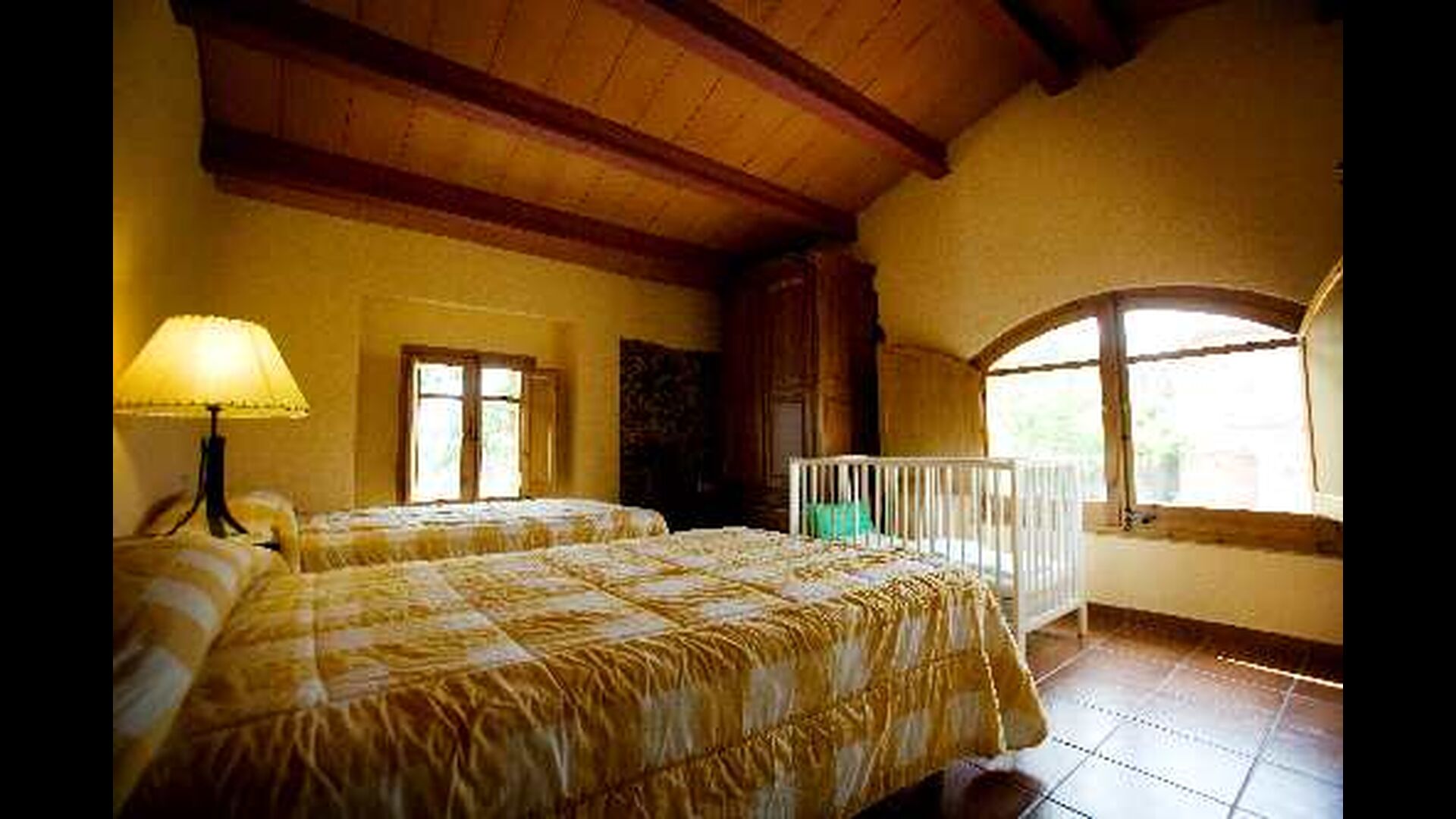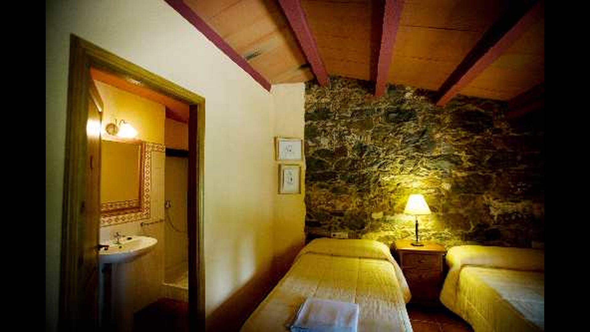 • 3 habitaciones: una en la planta baja (con 1 cama doble y 1 cama individual) y dos en el primer piso (cada habitación con 2 camas individuales), todas con baño privado