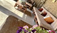 Zona de relajación al aire libre con cómodos sofás y sillones en la terraza