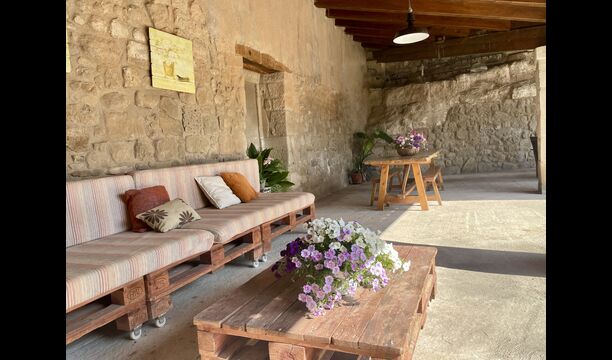 Con los campos en flor y los Pirineos a lo lejos como único vecino, te sientes tan relajado, y quieto, a solo 750 metros, en el otro extremo del pequeño pueblo, encuentras un < strong>animado restaurante catalán de estilo rural, donde agricultores, trabajadores y gente de paso disfrutan de un menú de mediodía económico con una selección de platos típicos catalanes, que no dejan a nadie con hambre.