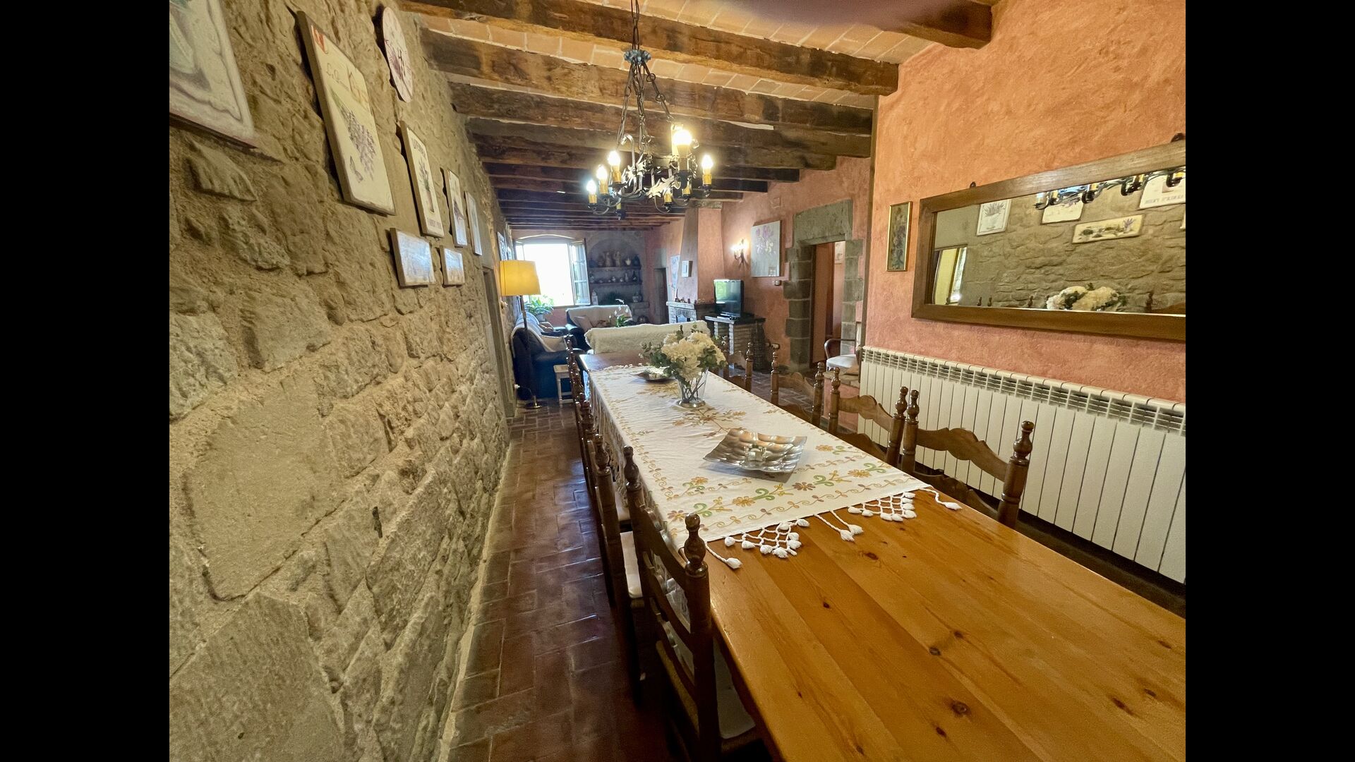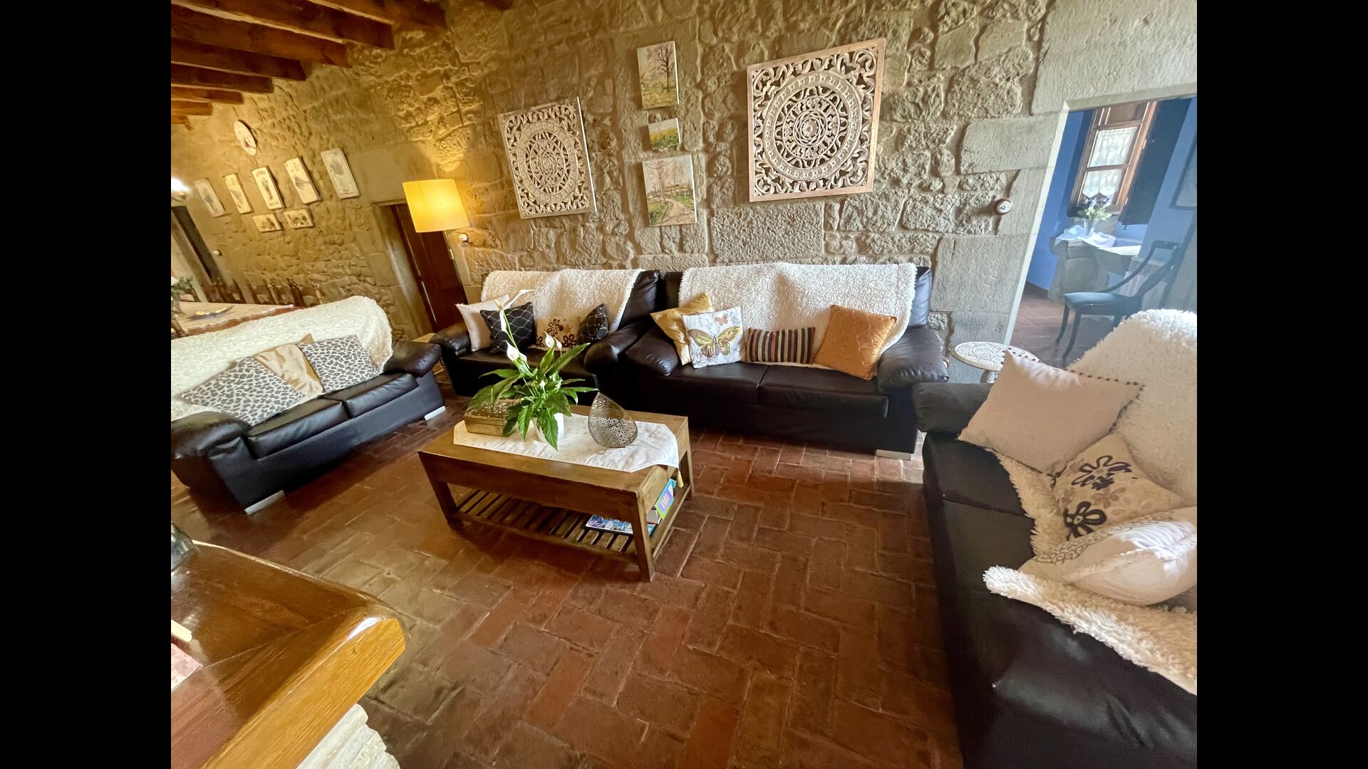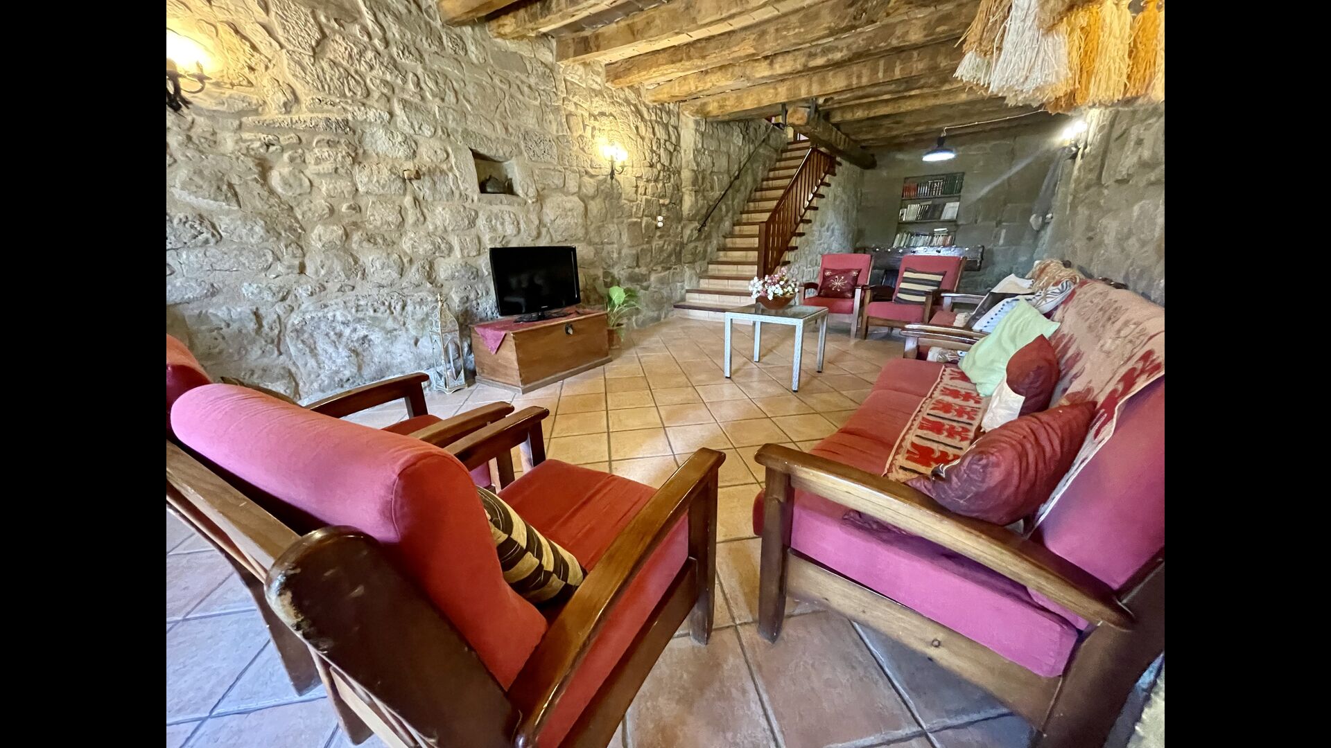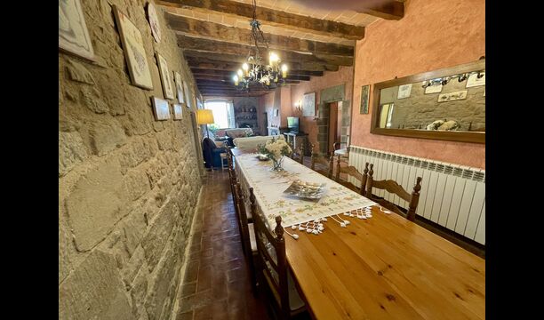 Hoy en día la casa ha sido completamente restaurada conservando su estructura original. Construido sobre una roca deslizante, la entrada desde el estacionamiento lo llevará directamente al primer piso. Aquí, hay una cocina con todas las comodidades (estufa, microondas, lavavajillas, utensilios de cocina, etc.), una sala comedor muy grande con una enorme mesa de comedor de madera y que también sirve como sala de distribución para todos. los dormitorios. La casa tiene en total 6 dormitorios, siendo 2 de ellos triples. Cada uno de los dormitorios tiene su propio baño. Además, hay un baño en la planta baja, útil cuando se está al aire libre. La casa dispone además de TV, DVD y WIFI-internet.