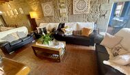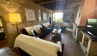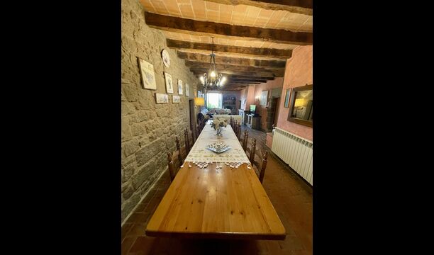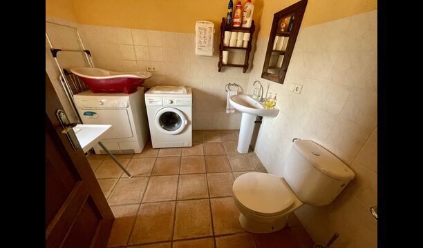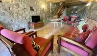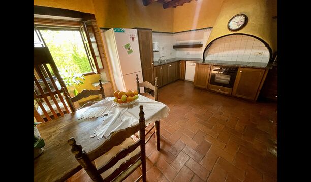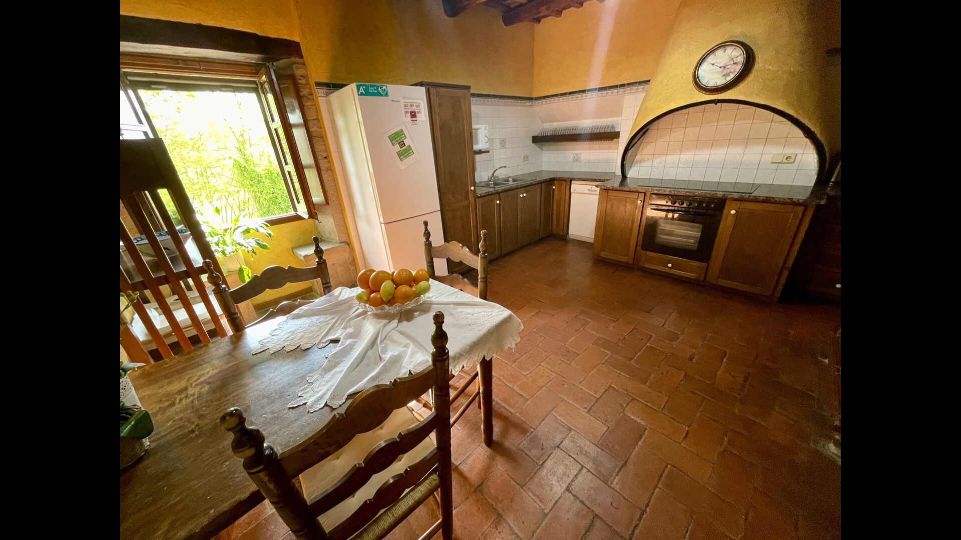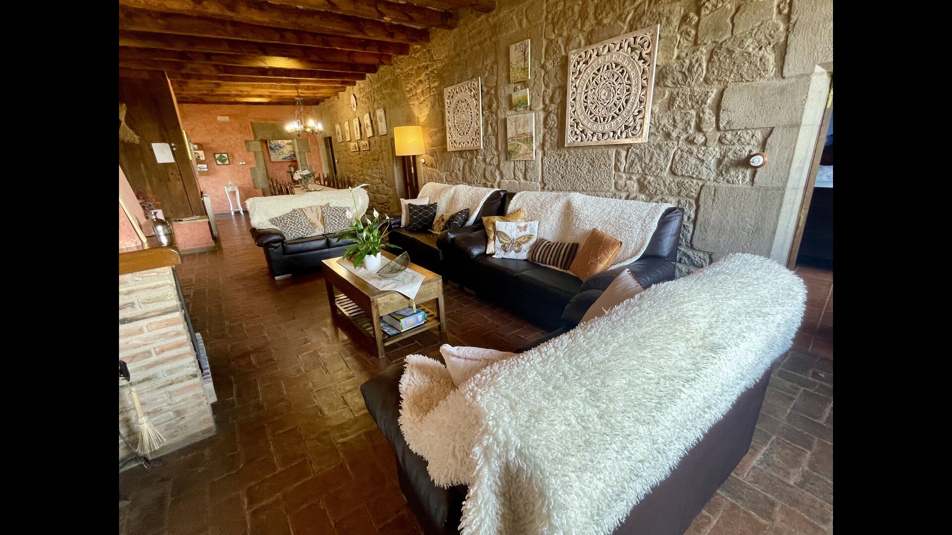 Hoy en día la casa ha sido completamente restaurada conservando su estructura original. Construido sobre una roca deslizante, la entrada desde el estacionamiento lo llevará directamente al primer piso. Aquí, hay una cocina con todas las comodidades (estufa, microondas, lavavajillas, utensilios de cocina, etc.), una sala comedor muy grande con una enorme mesa de comedor de madera y que también sirve como sala de distribución para todos. los dormitorios. La casa tiene en total 6 dormitorios, siendo 2 de ellos triples. Cada uno de los dormitorios tiene su propio baño. Además, hay un baño en la planta baja, útil cuando se está al aire libre. La casa dispone además de TV, DVD y WIFI-internet.