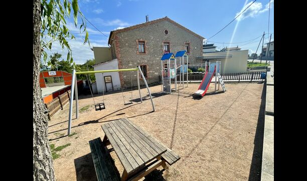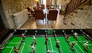 Conectada por una escalera, la planta baja, a la altura del patio cerrado y el jardín, dispone también de una sala de juegos con ping-pong y futbolín. Afuera, ingresa directamente al gran patio cerrado, con mucho espacio para que los niños jueguen o jueguen a la pelota. Además, hay un porche cubierto con barbacoa y mesas al aire libre para todos y una sala de estar en estilo cool chill-out.