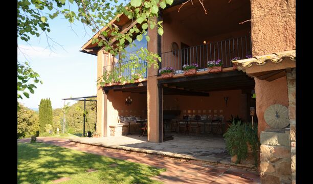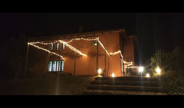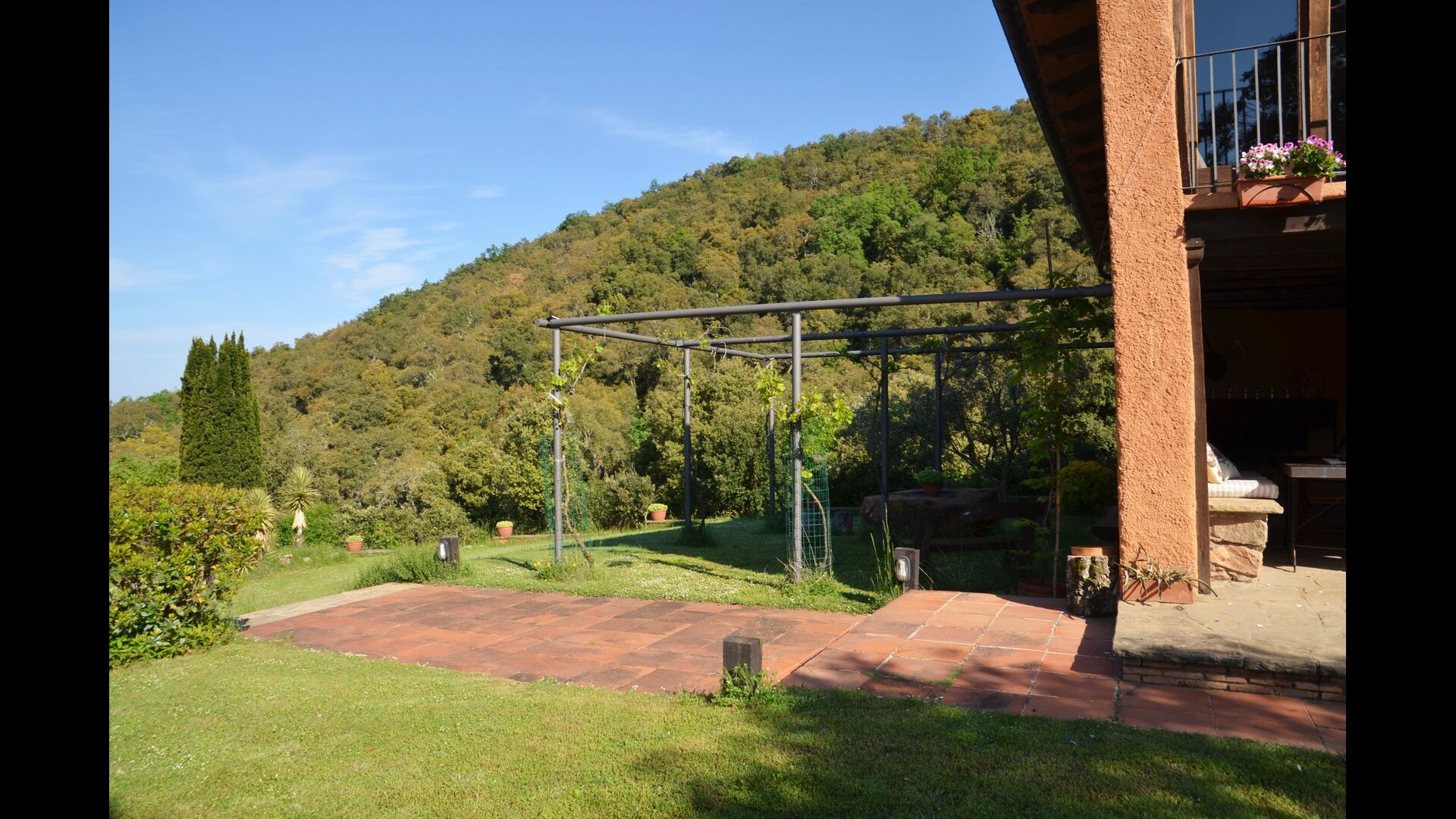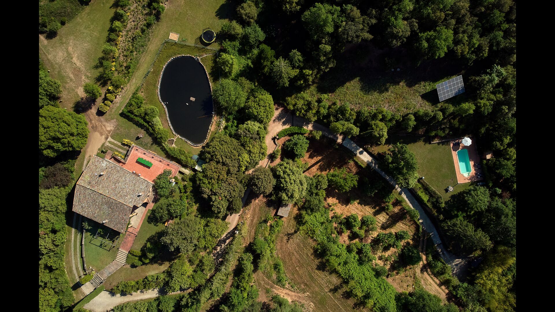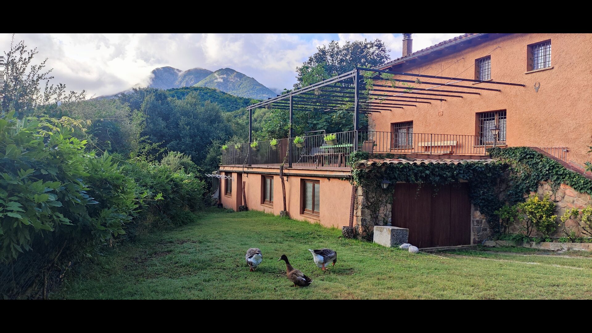 A la izquierda de la casa, tienes un gran césped y un estanque cercado con patos y otras aves. Al otro lado de la casa, se encuentra la entrada. A la derecha de la entrada tiene una terraza cubierta al aire libre para cenar al aire libre. También hay otra zona de terraza al sol. Además, hay un césped con muchos árboles, que proporciona sombra en los cálidos días de verano catalanes. También hay una mesa de ping pong.