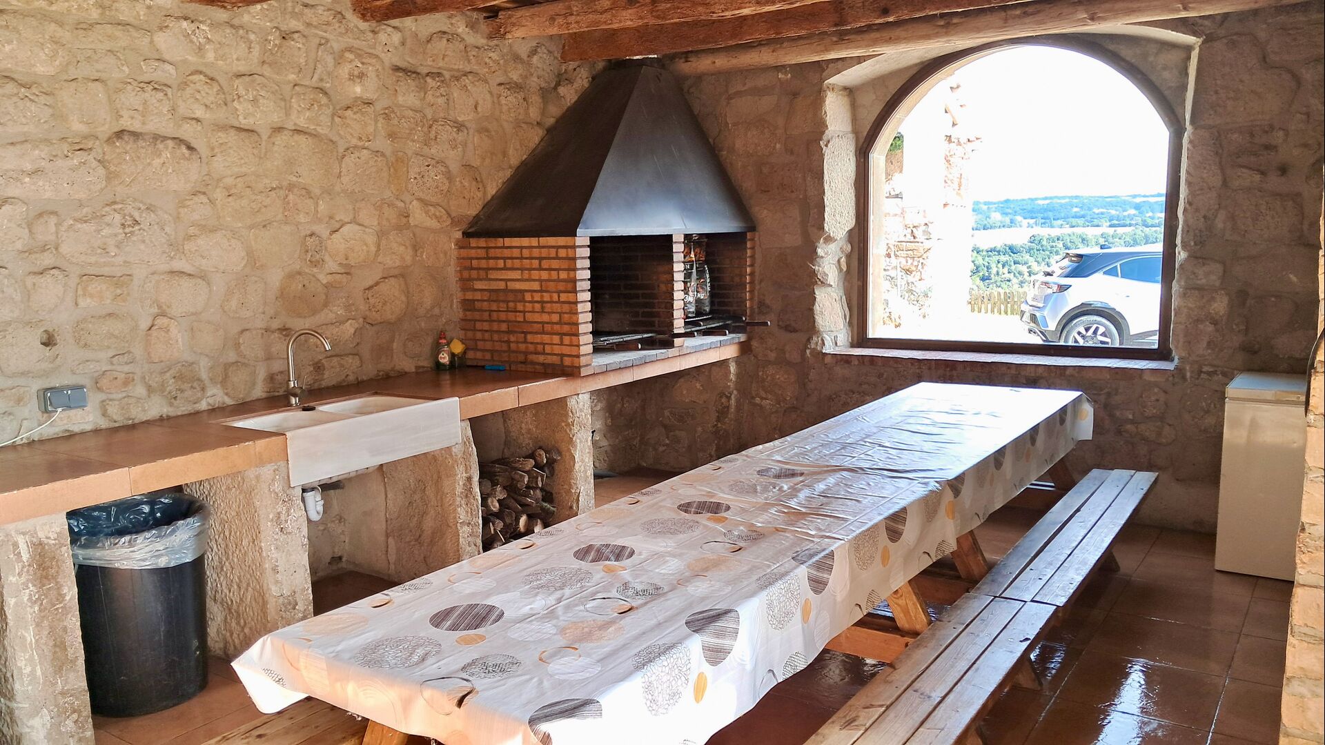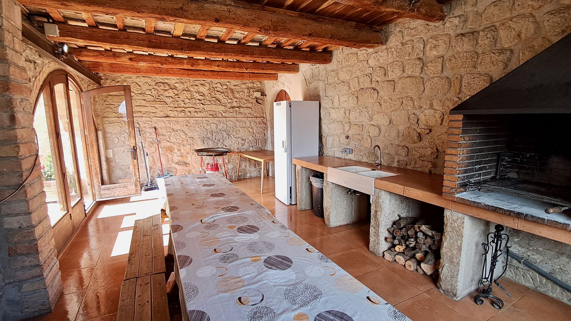 • Patio cubierto con parrilla, pileta y paella.