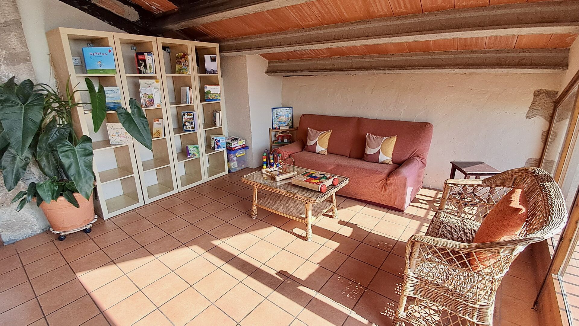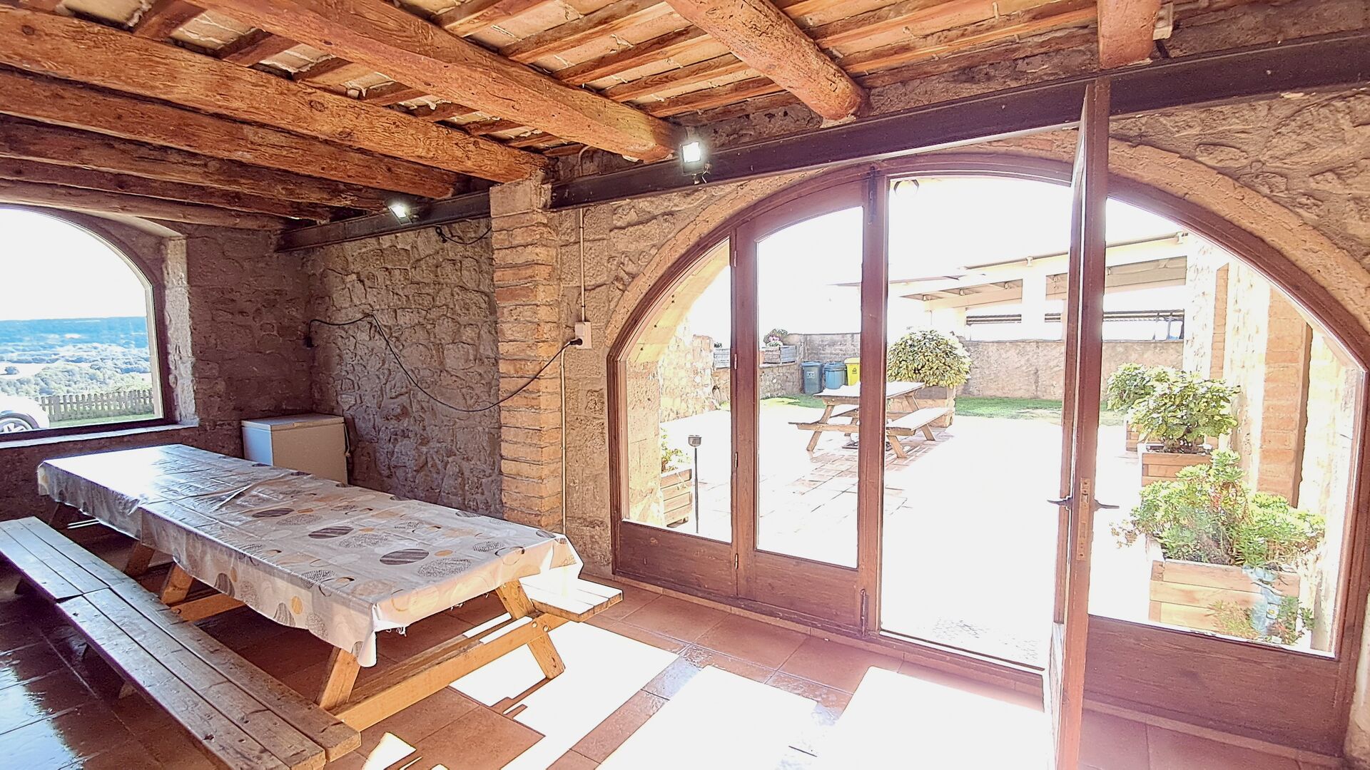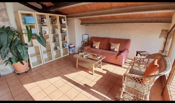 La casa tiene un patio acogedor con oportunidades para sentarse. Aquí, también hay una entrada a una pequeña sala de juegos con futbolín y tenis de mesa. En el otro lado de la casa, hay una terraza cubierta con parrilla, fregadero, congelador y una gran mesa de comedor. Aquí, ambos pueden prepararse y disfrutar de una cena en el cálido sol de la tarde. Como hay una paellera, puedes probar las especialidades locales.