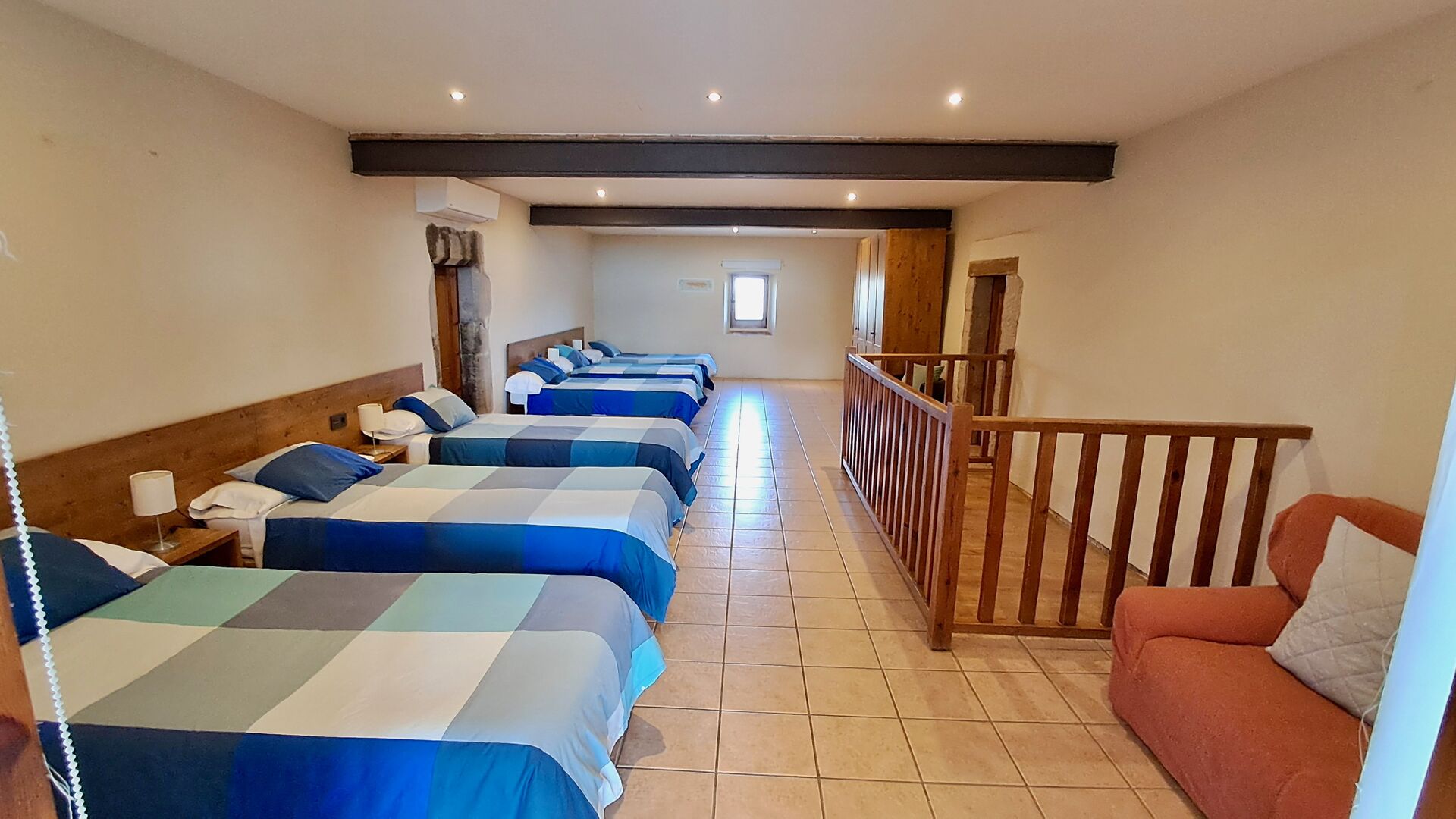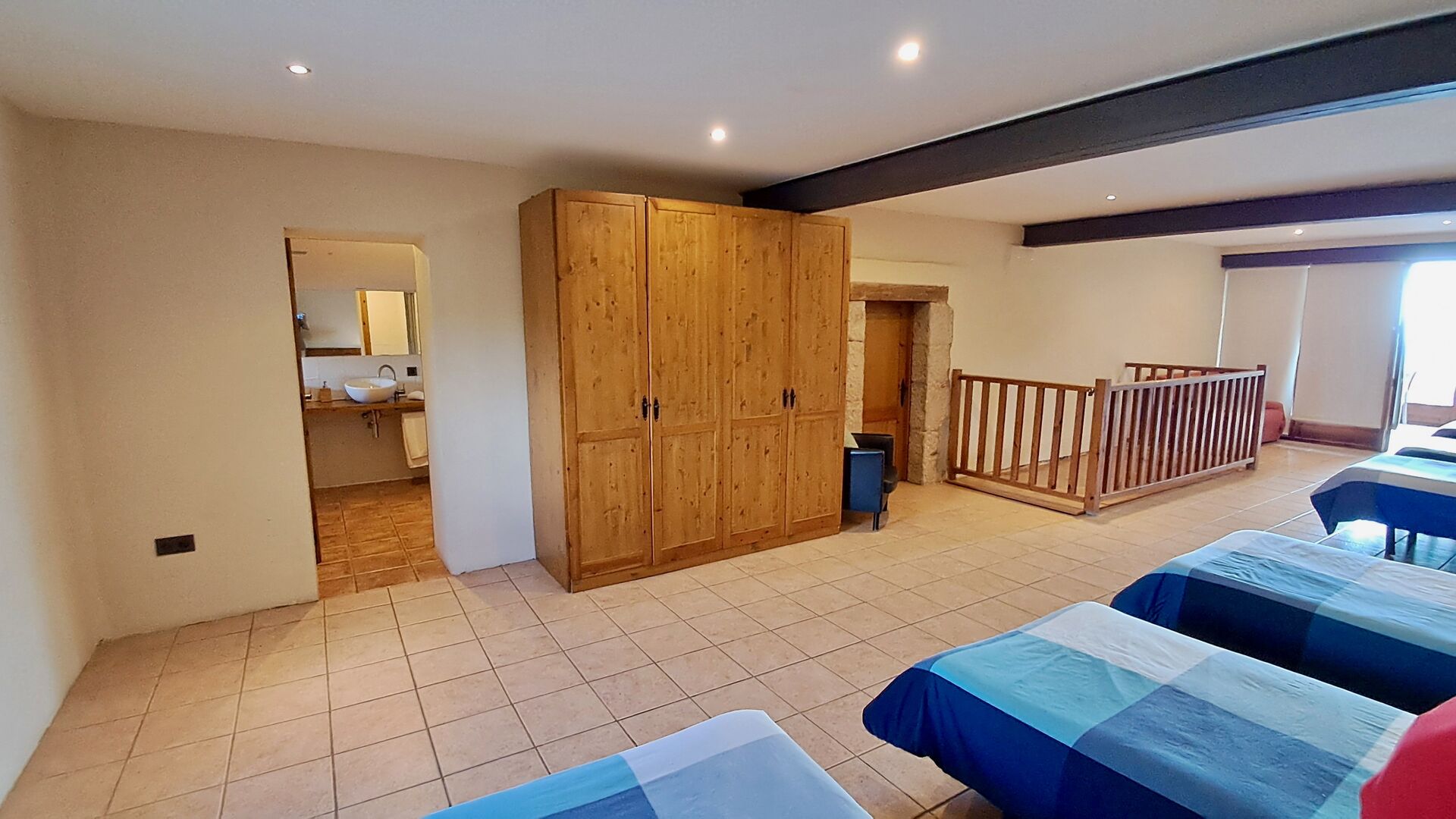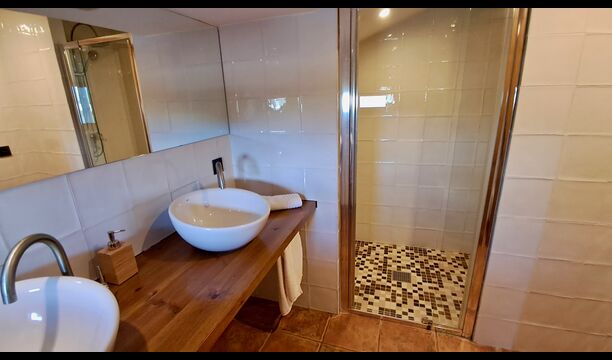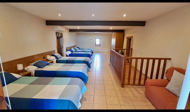 En la casa de vacaciones, hay siete habitaciones espaciosas y bien equipadas: seis habitaciones dobles, donde cuatro de ellas tienen dos camas individuales y dos tienen camas dobles, y una habitación triple. Esta habitación triple es perfecta para niños en el grupo de vacaciones, y también es posible instalar camas adicionales (con un suplemento). Hay seis cuartos de baño modernos, donde cuatro de ellos son en suite.